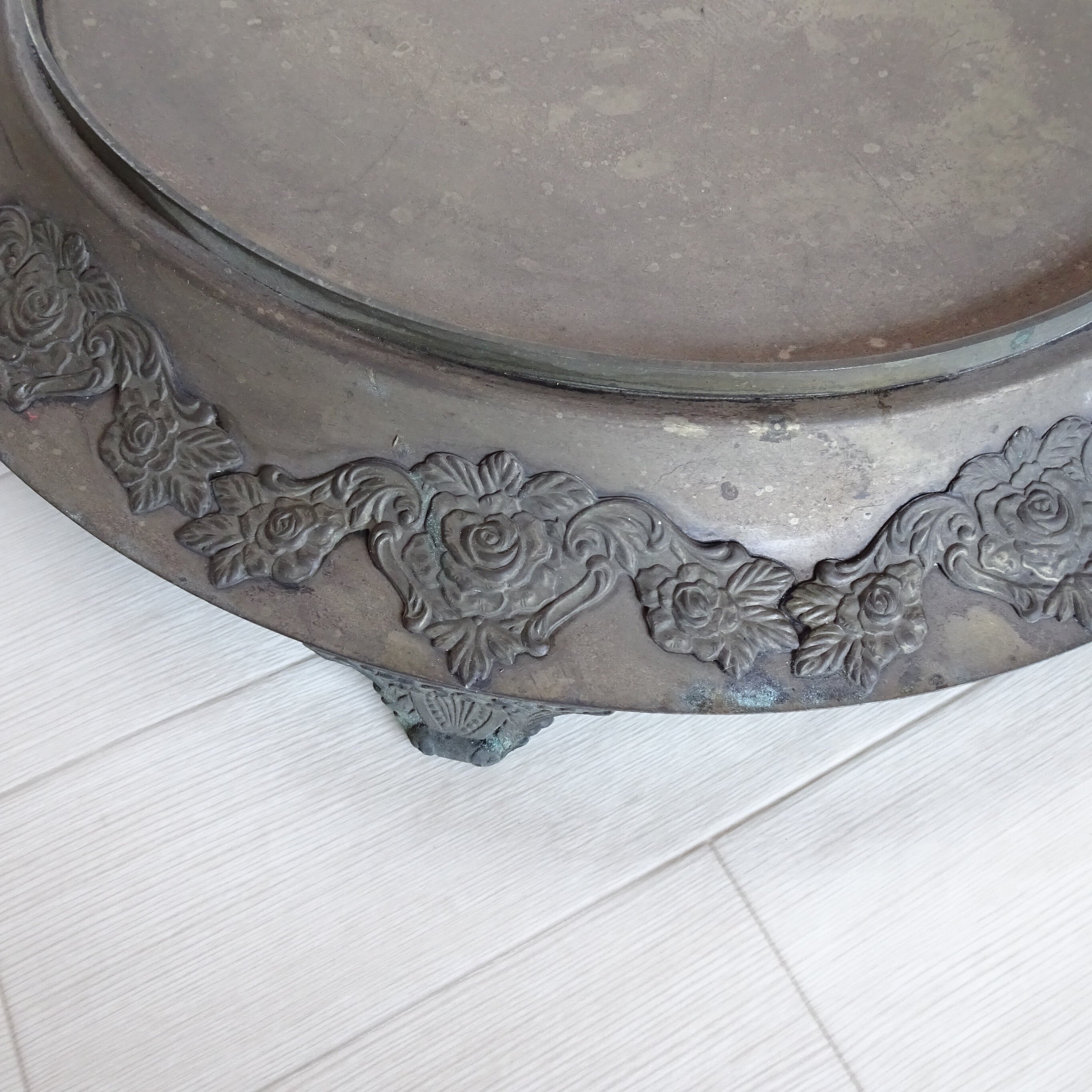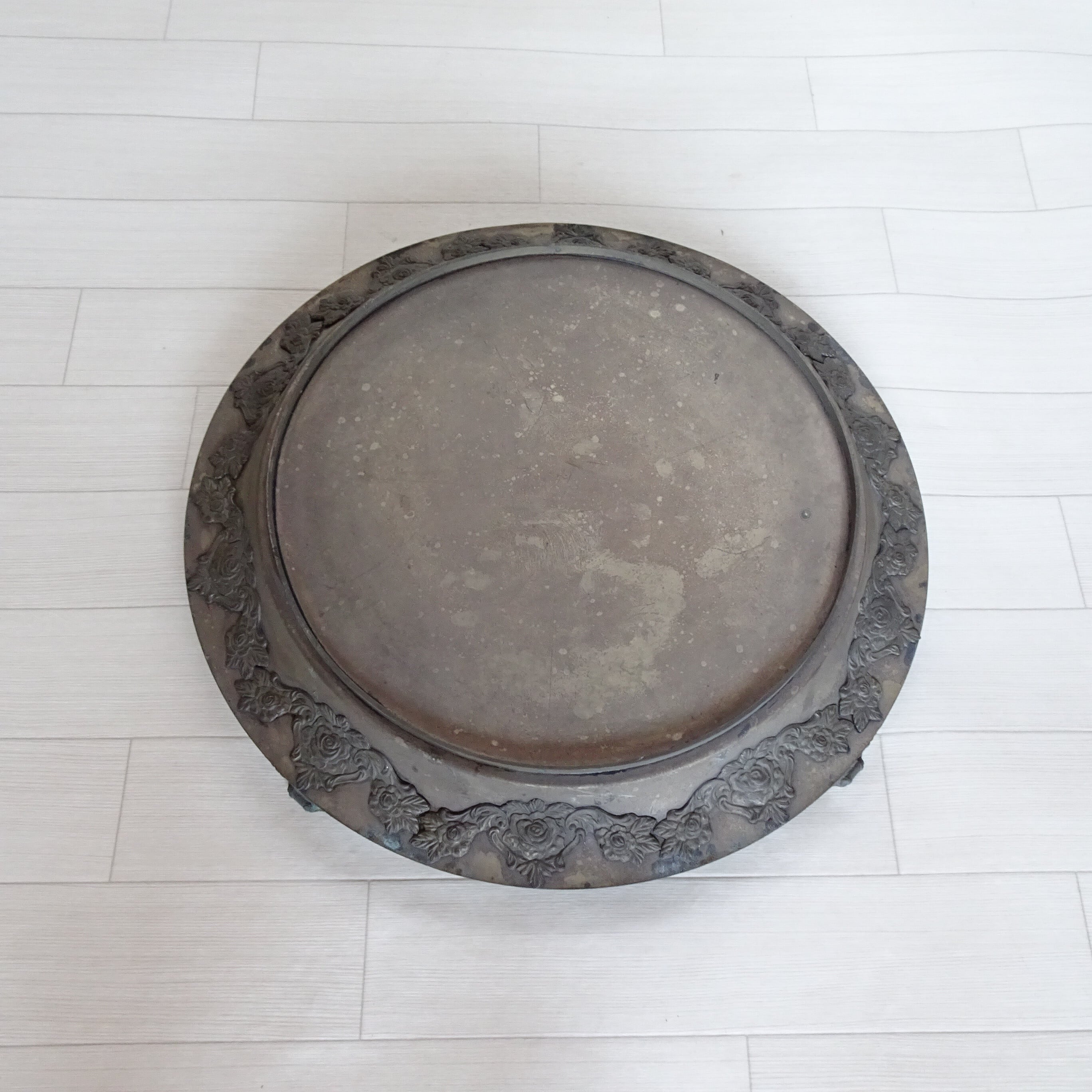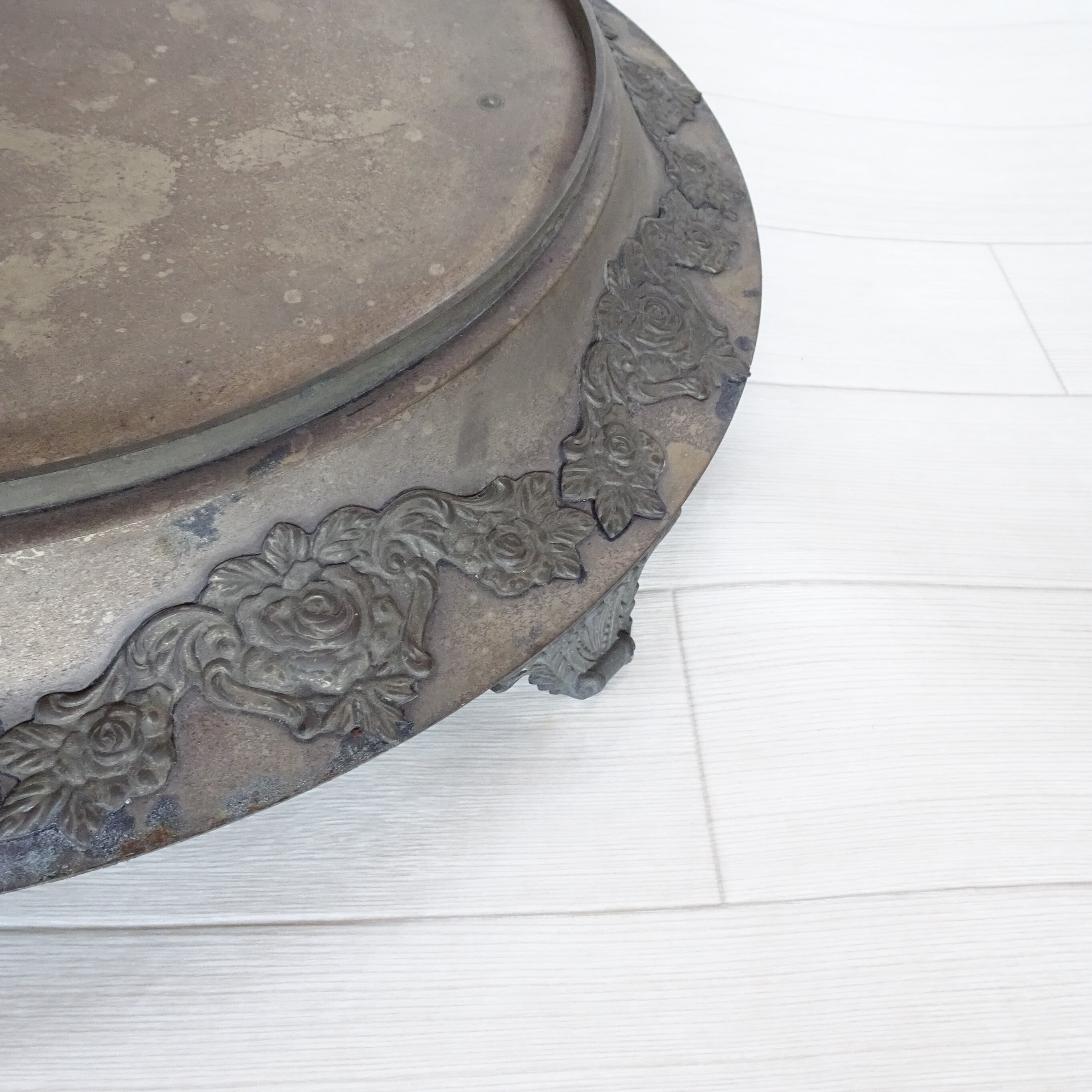 金属製で、まわりにバラのレリーフの装飾があります。