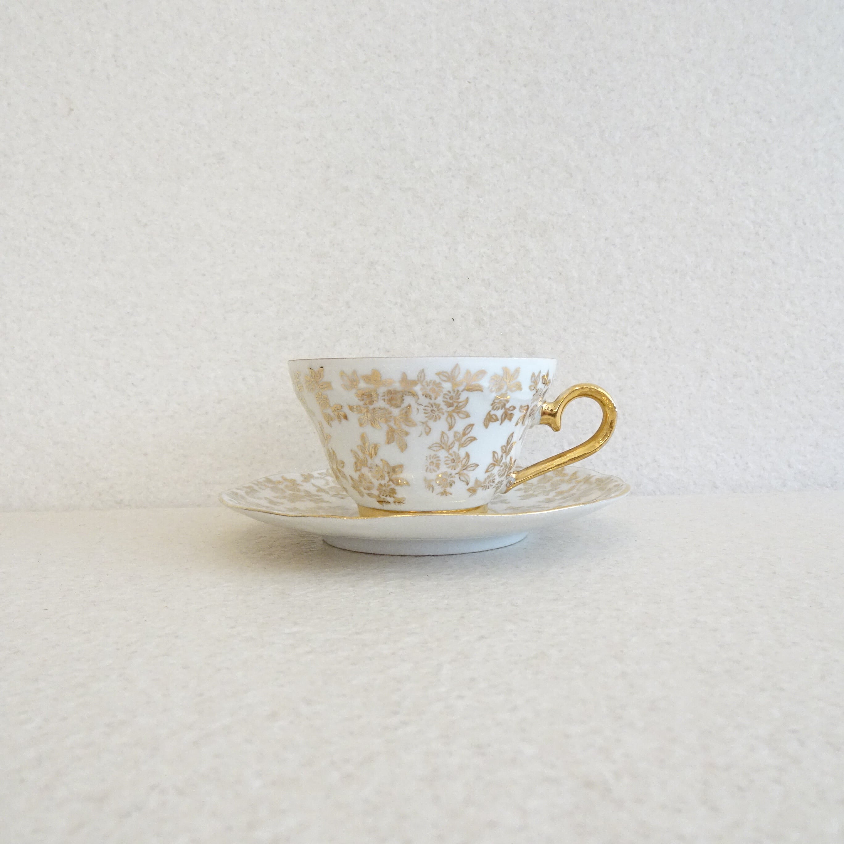 金地小花の総柄プリントで控えめでありながらも華やかさもあるカップです。