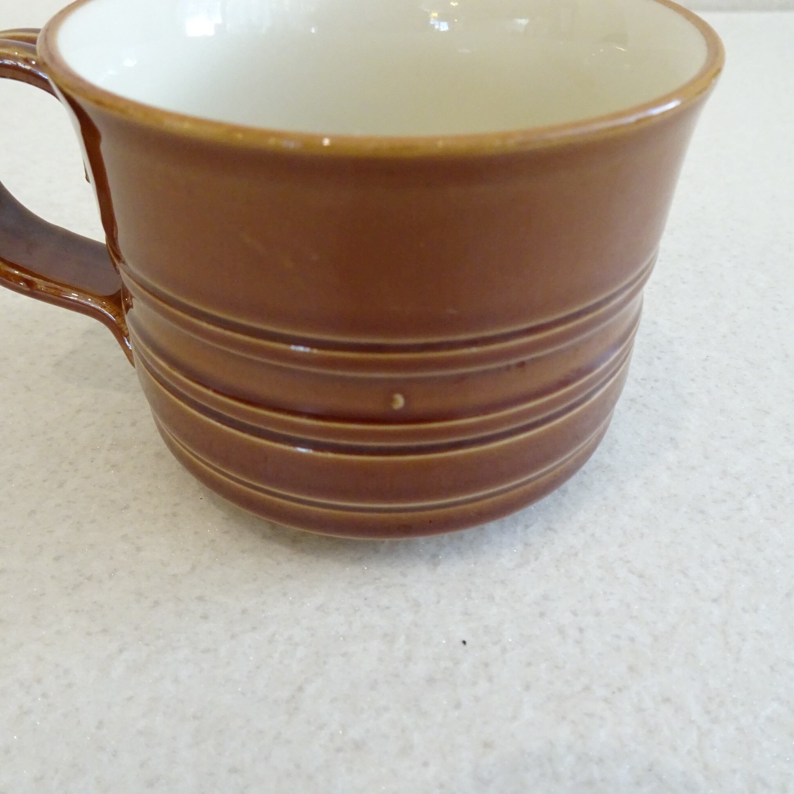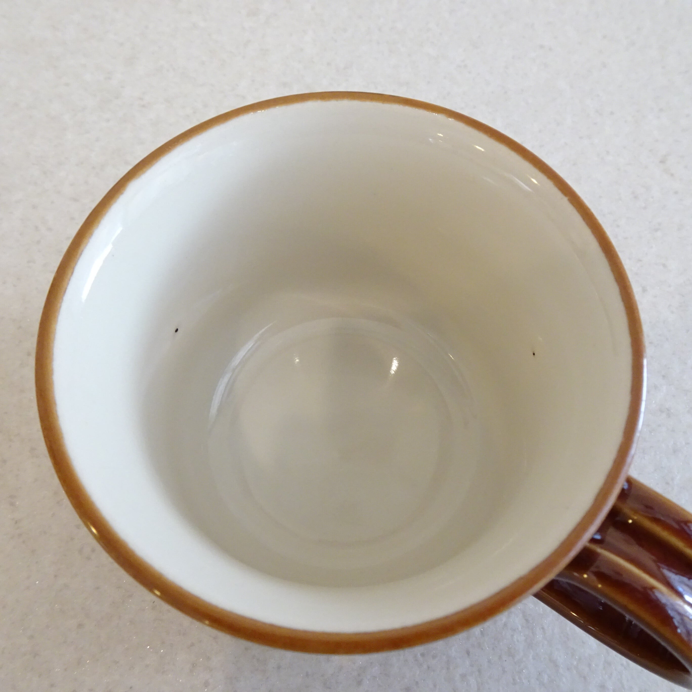 カップ、ソーサーともにキズがすこしありますが大きく目立つわけではありません。カップ内外には黒点のほかブツがあります。