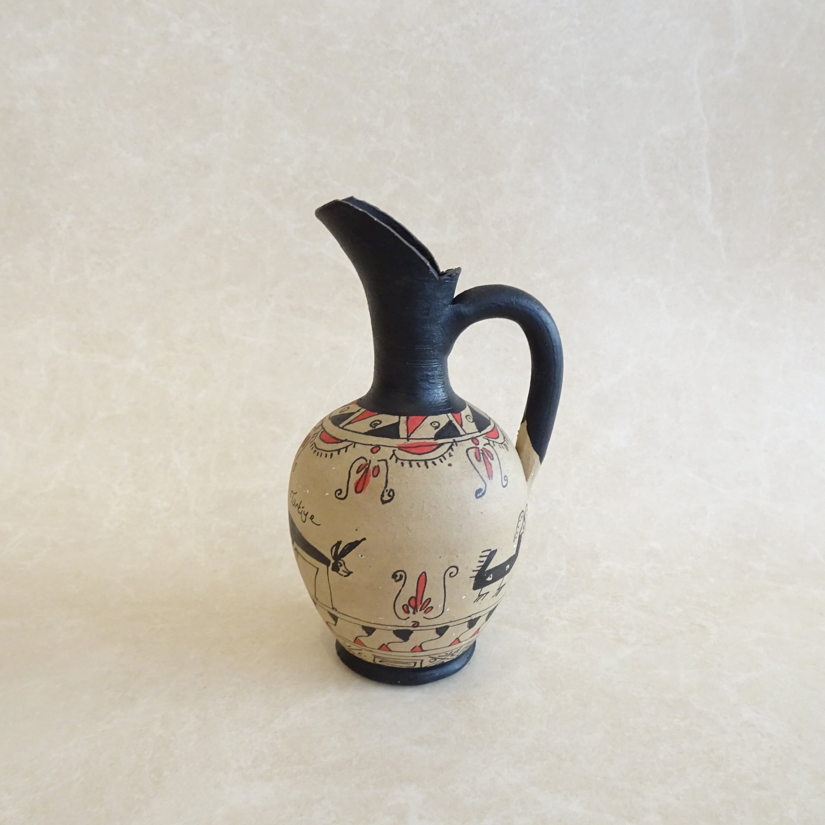 3匹の動物が描かれたハンドペイントのピッチャーです。