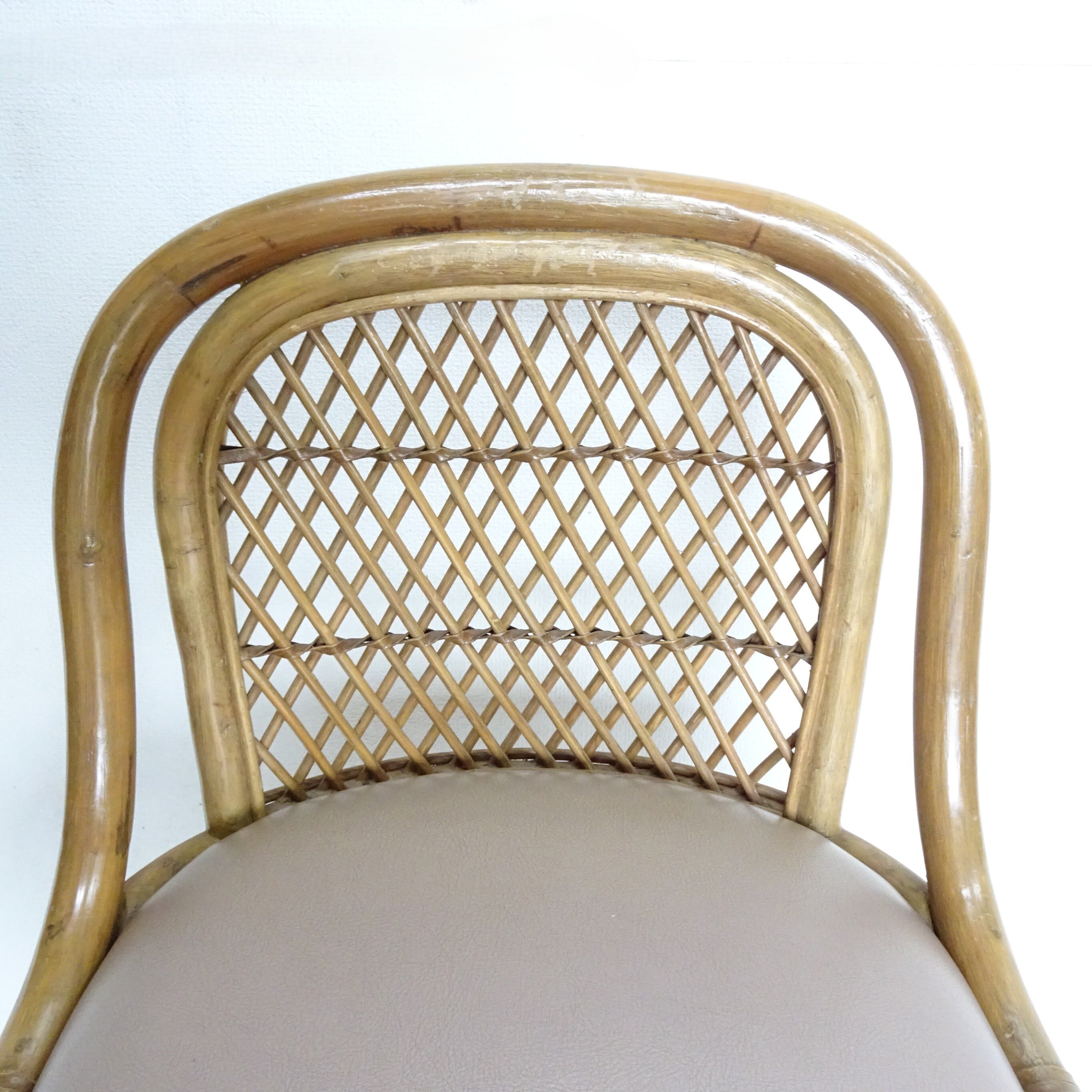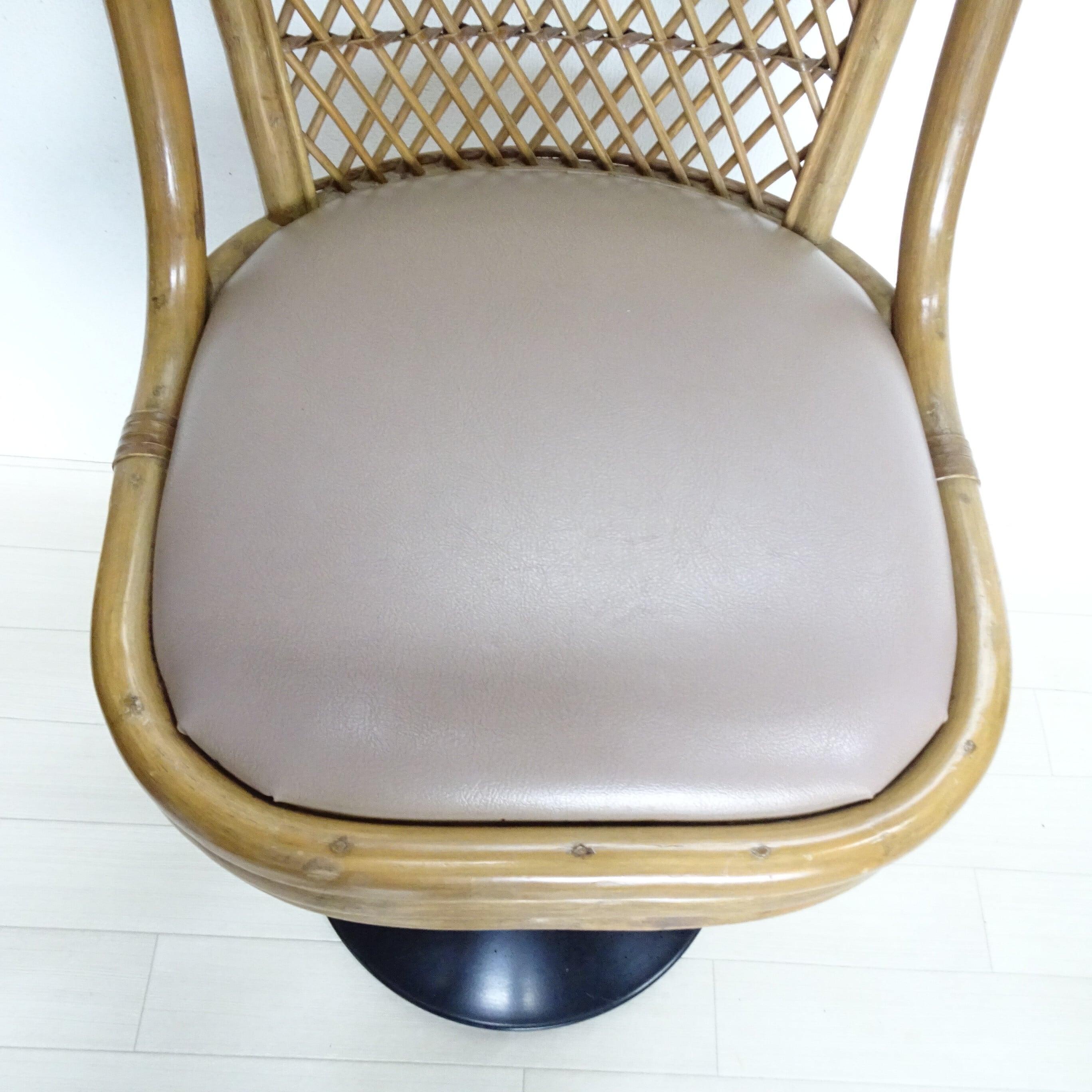 座面は淡い色のビニールレザーで、クッションが入っています。