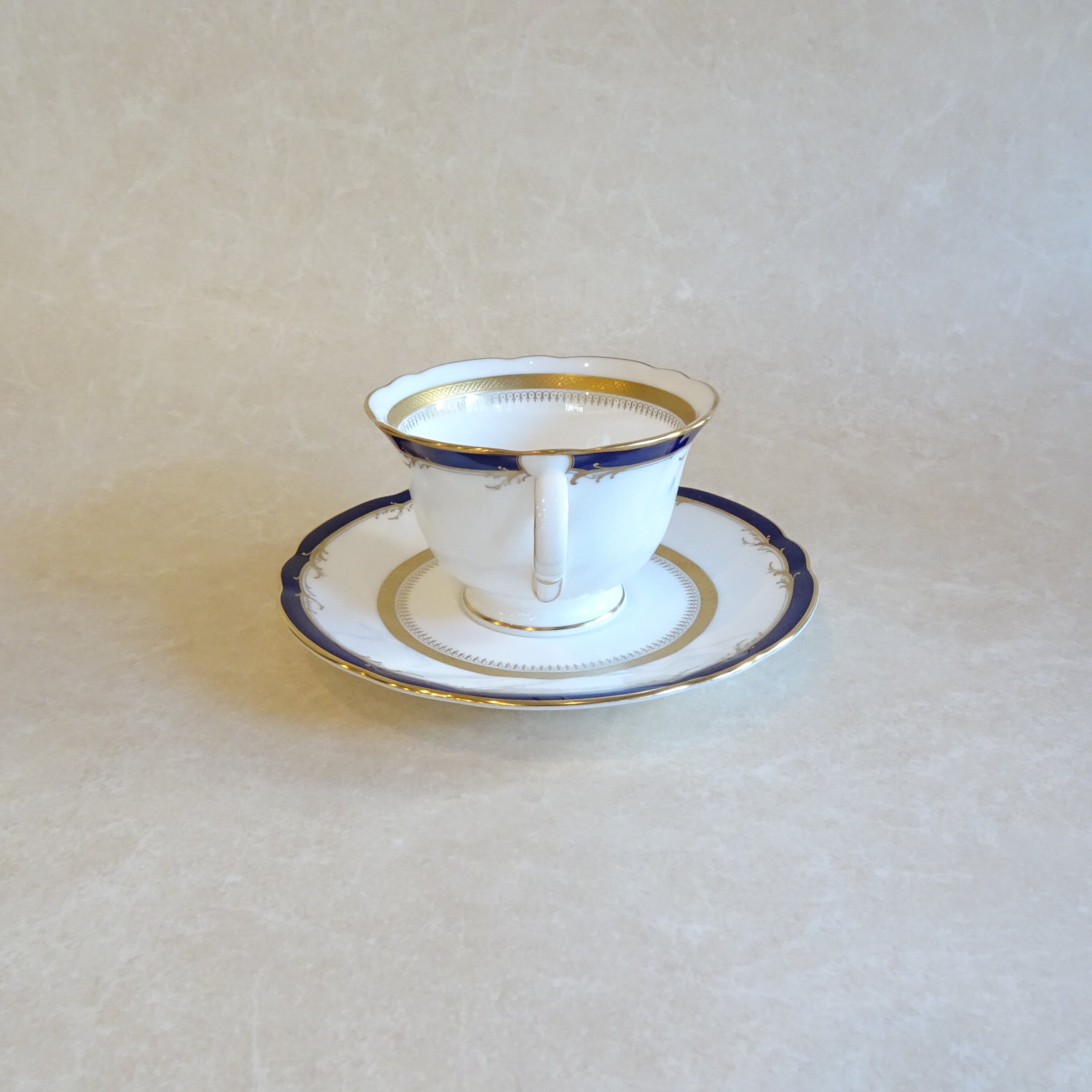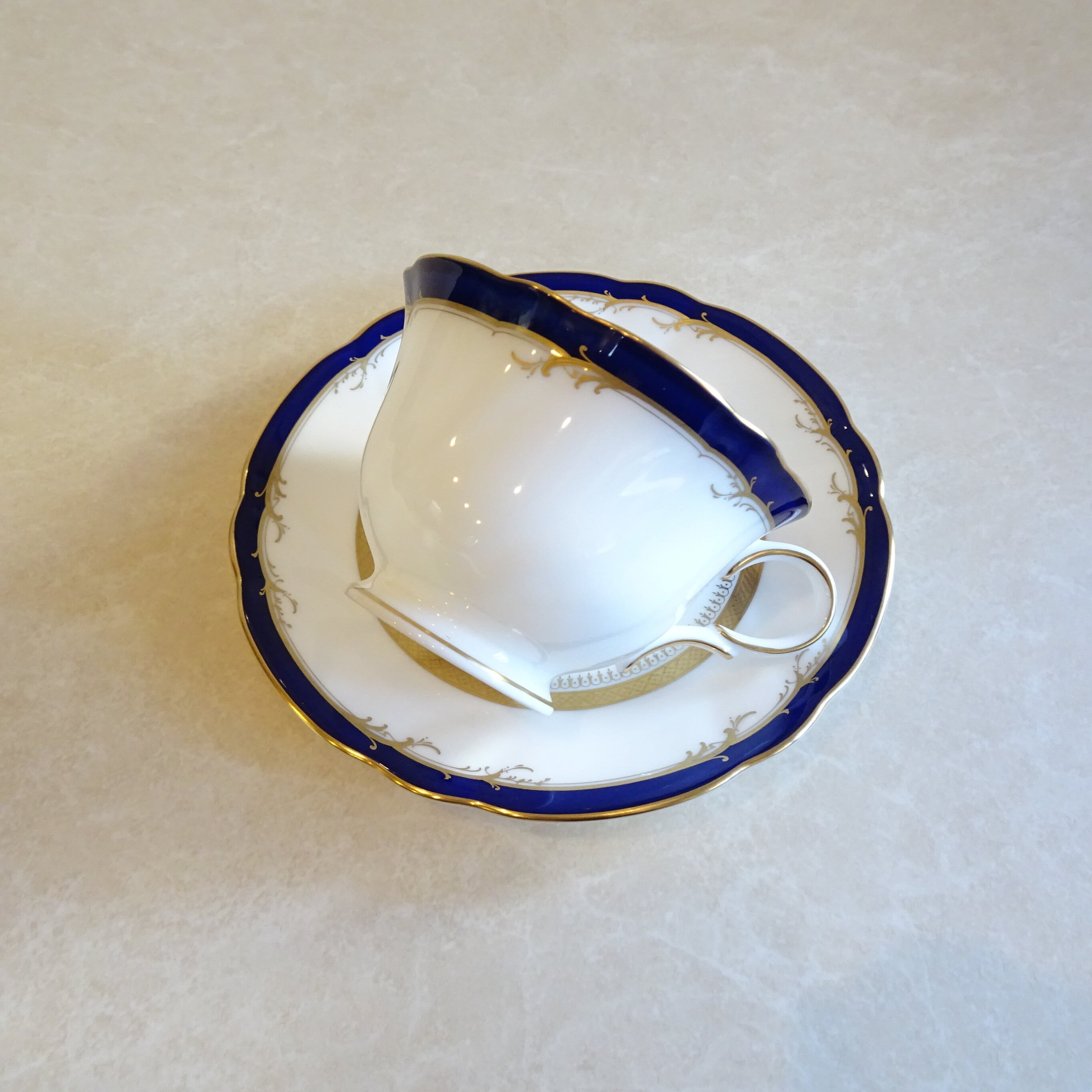 群青とゴールドの縁取りがあるニッコーのカップ&ソーサーです。