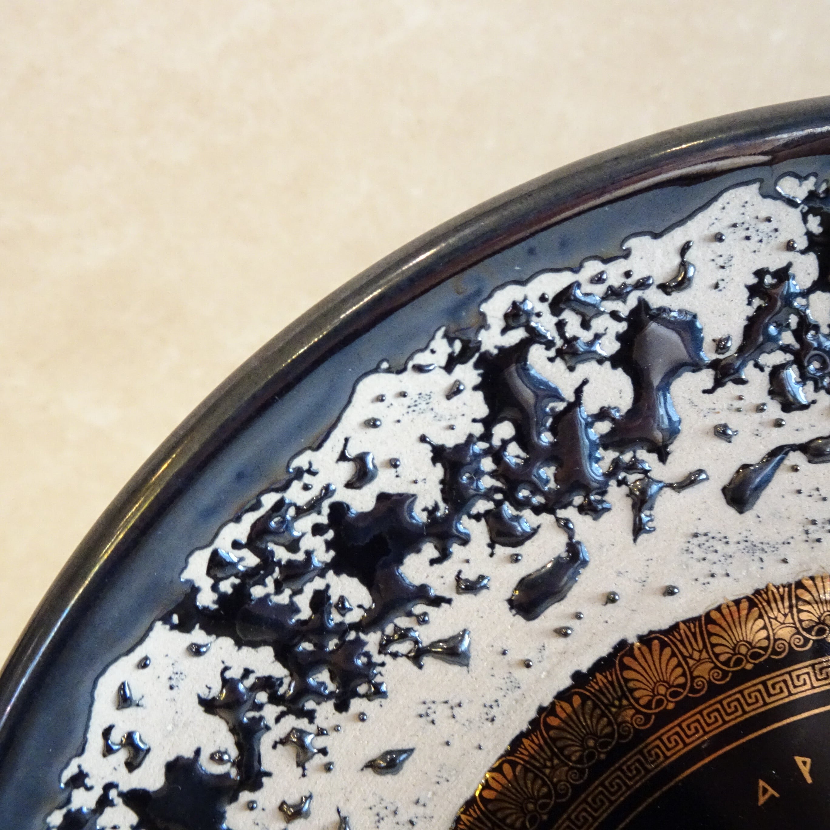 ギリシャ特有の文様で縁取られており、、リブ部分には立体的に盛り上がった吹付けのような加工がされているなかなか見ないデザインのように思います。