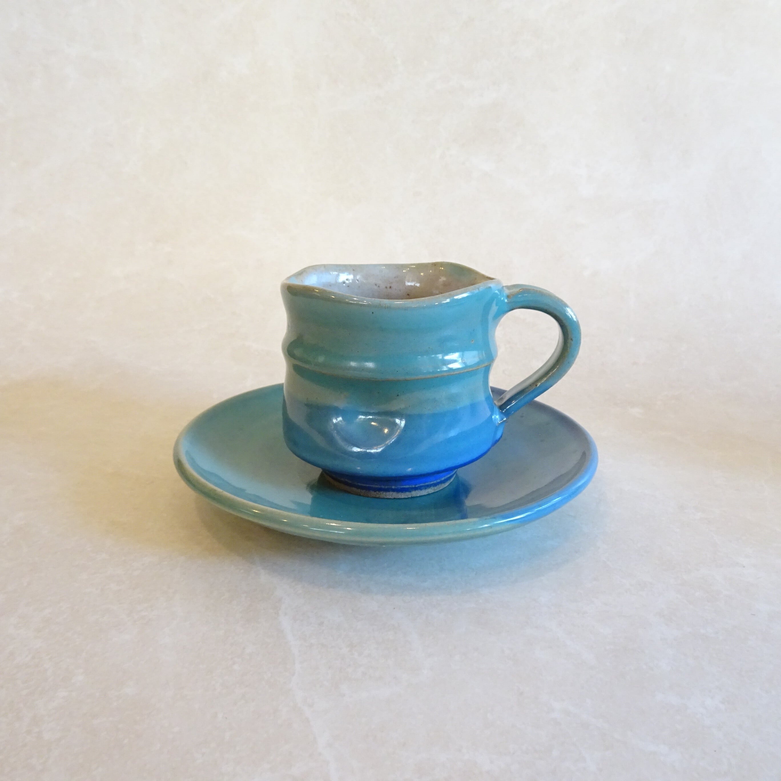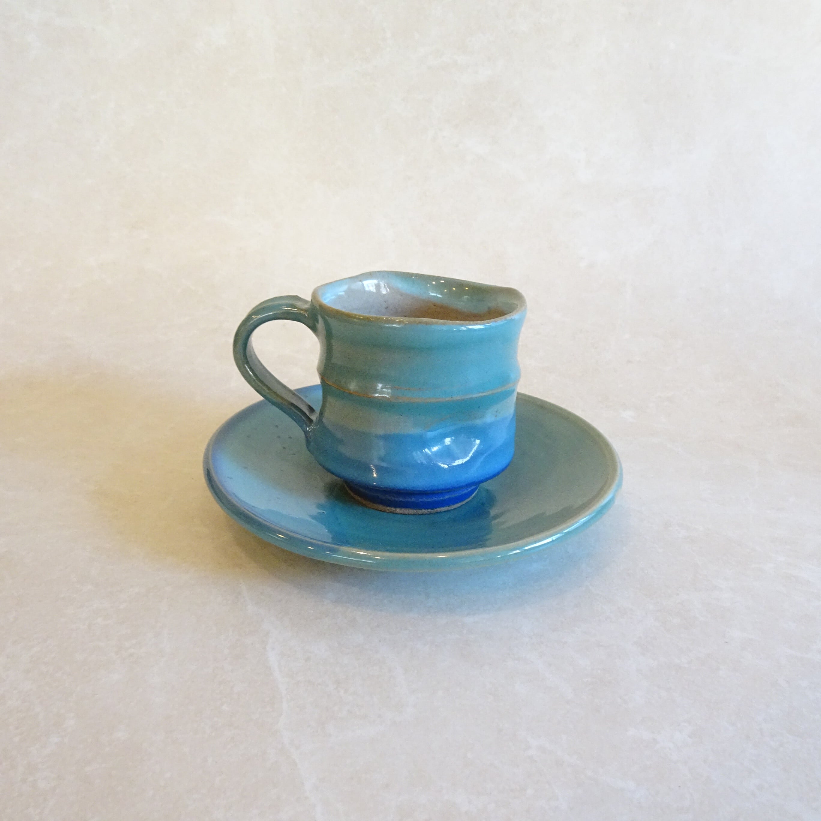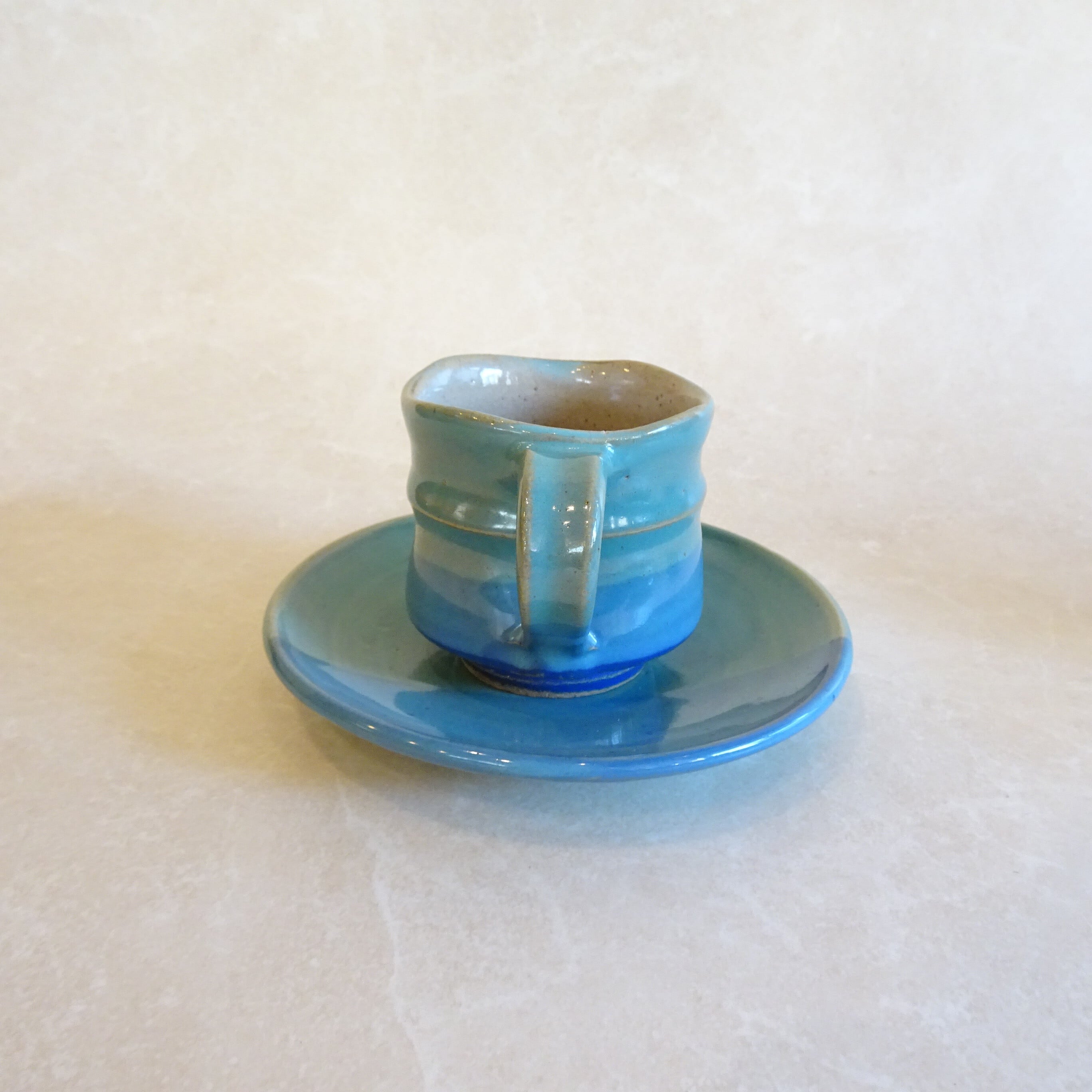 水色やブルーのグラデーションが特徴的なカップ&ソーサーです。