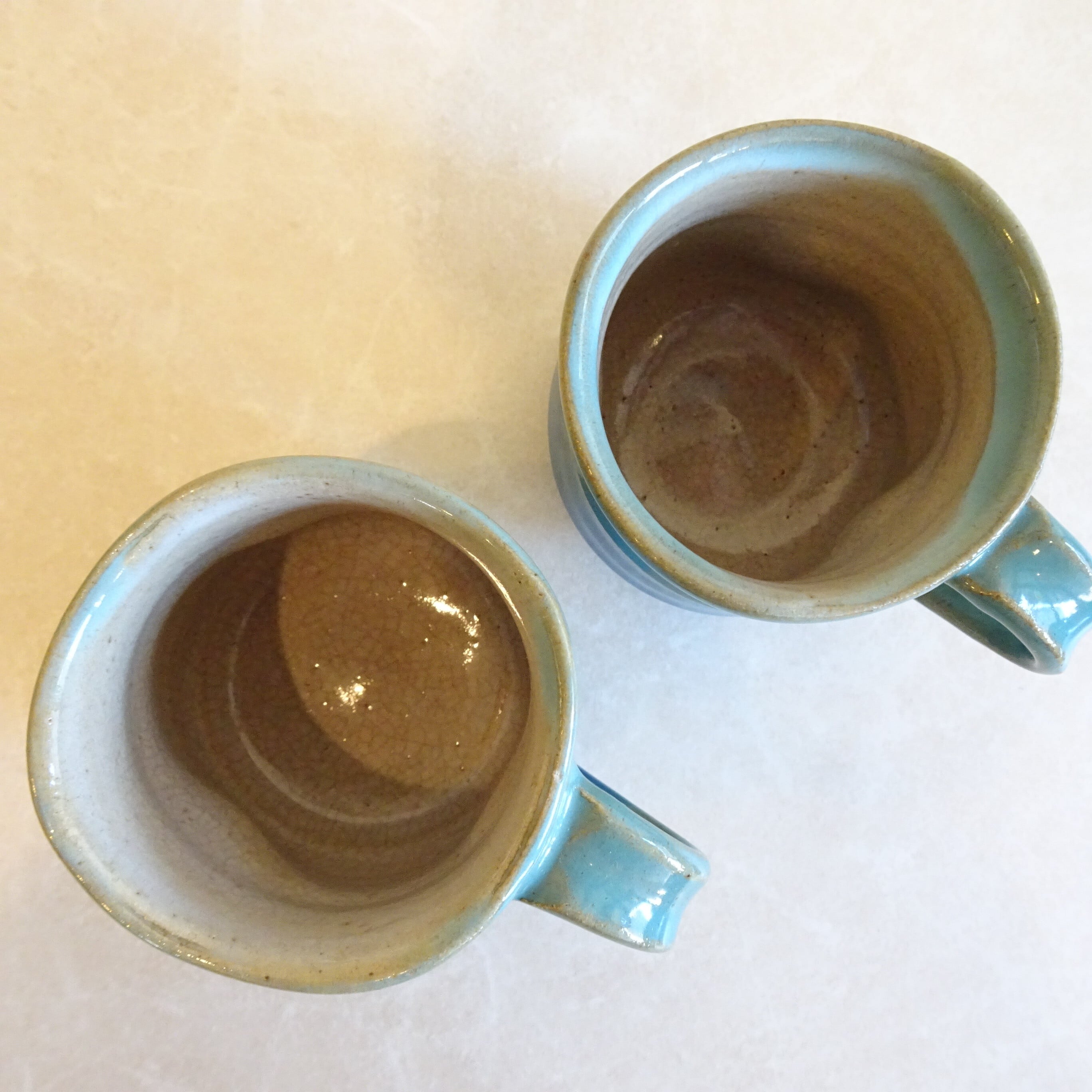 ソーサーにはスレが目で確認できる程度にあります。カップはもともとの特徴として貫入がありますが、貫入にすこししみがあります。