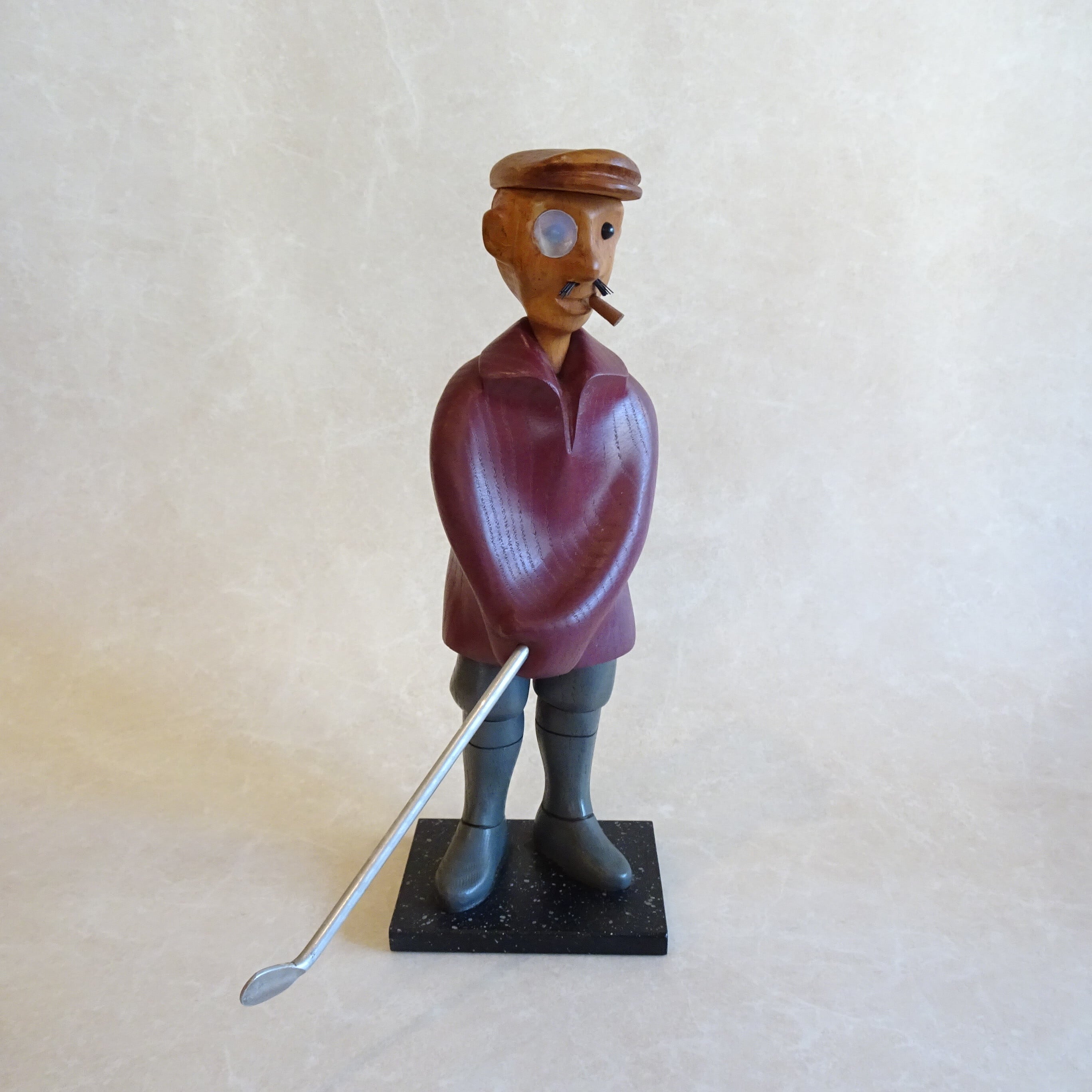 イタリア ゴルフする葉巻の人の木製オブジェ