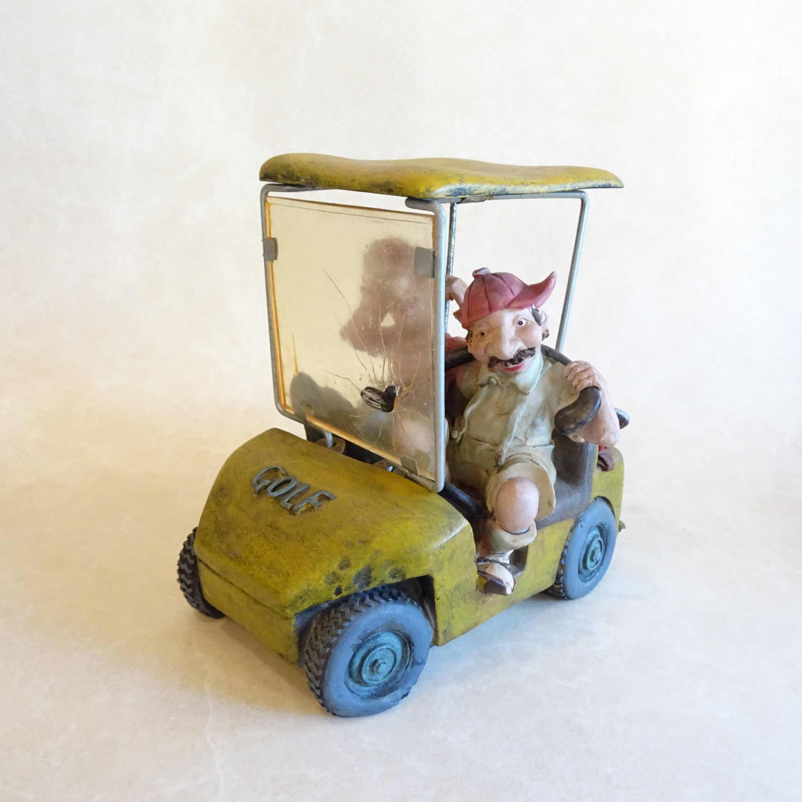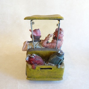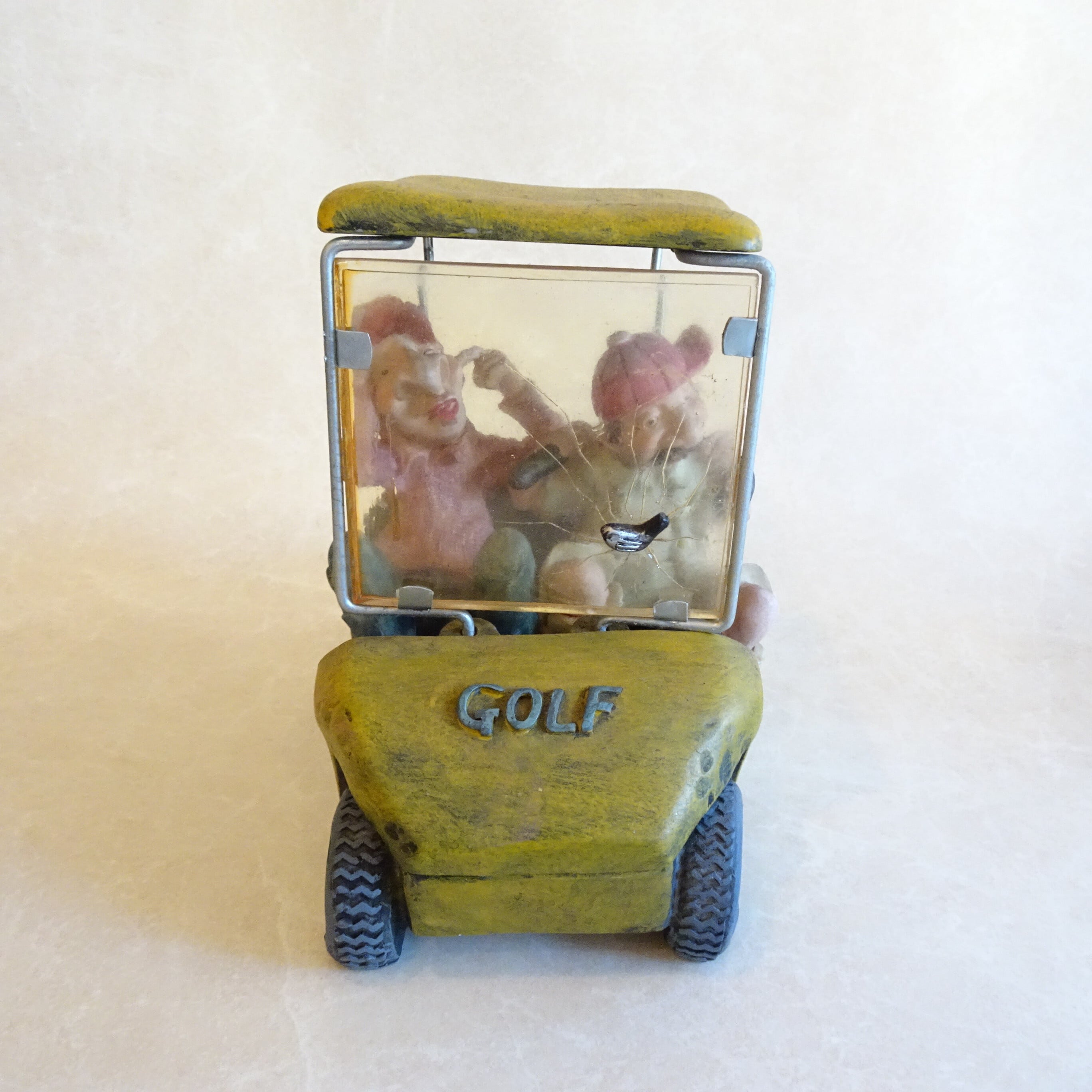 ゴルフカートに乗る人たちのハプニングシーンのオブジェ
