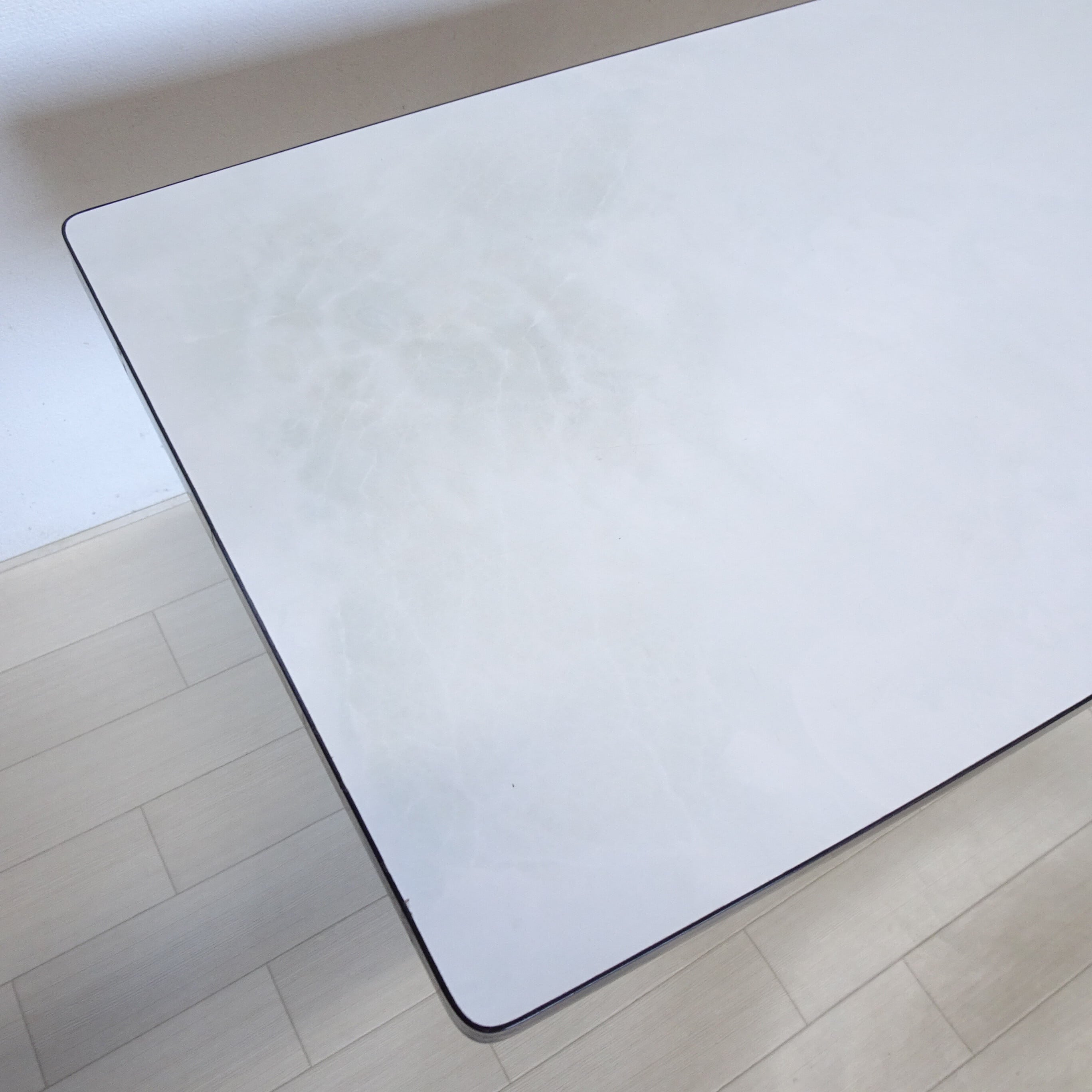 アーモンド形の天板に、大理石柄のプリントが施されています。おそらく以前はもっと柄がはっきり出ていたと思われるのですが、長年の使用により、うっすら薄くなっています。