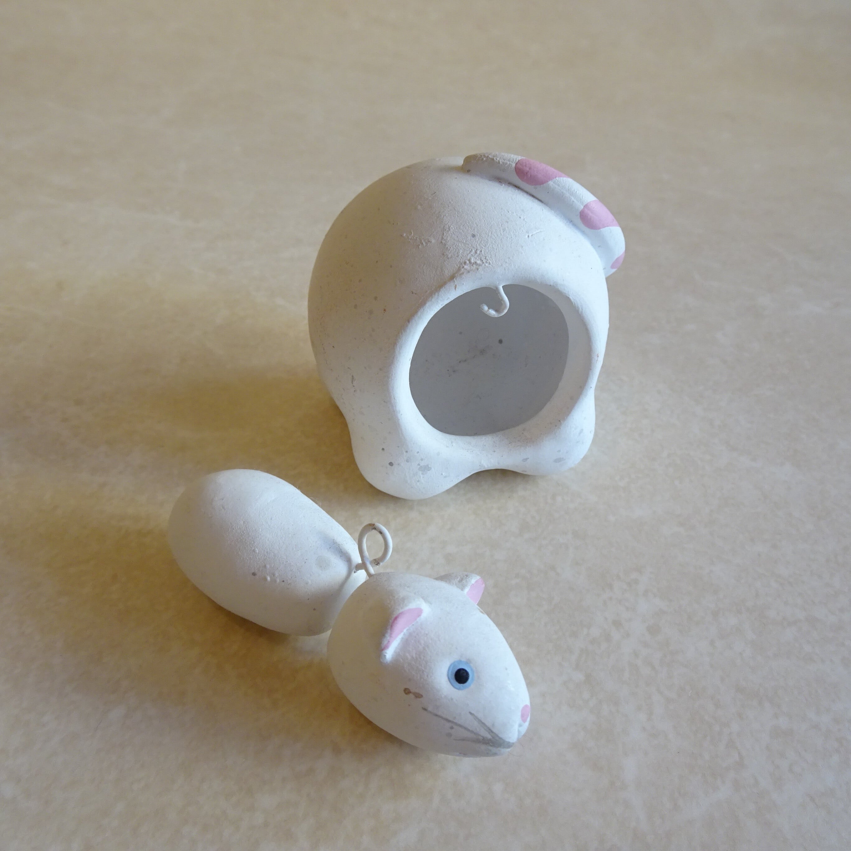 ねずみとひつじの首振り土人形です。