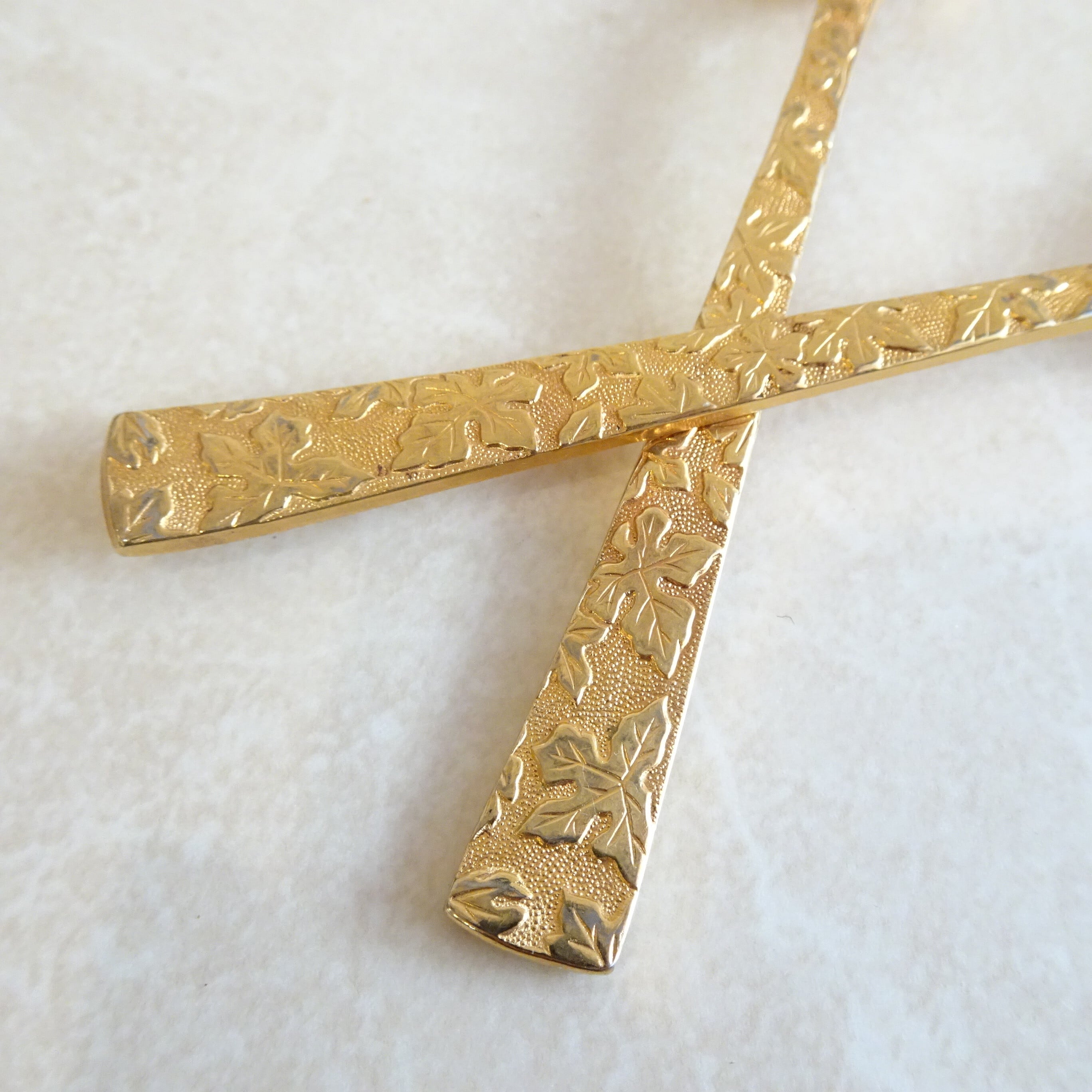 取っ手部分と鉤部分に葉っぱ模様があります。