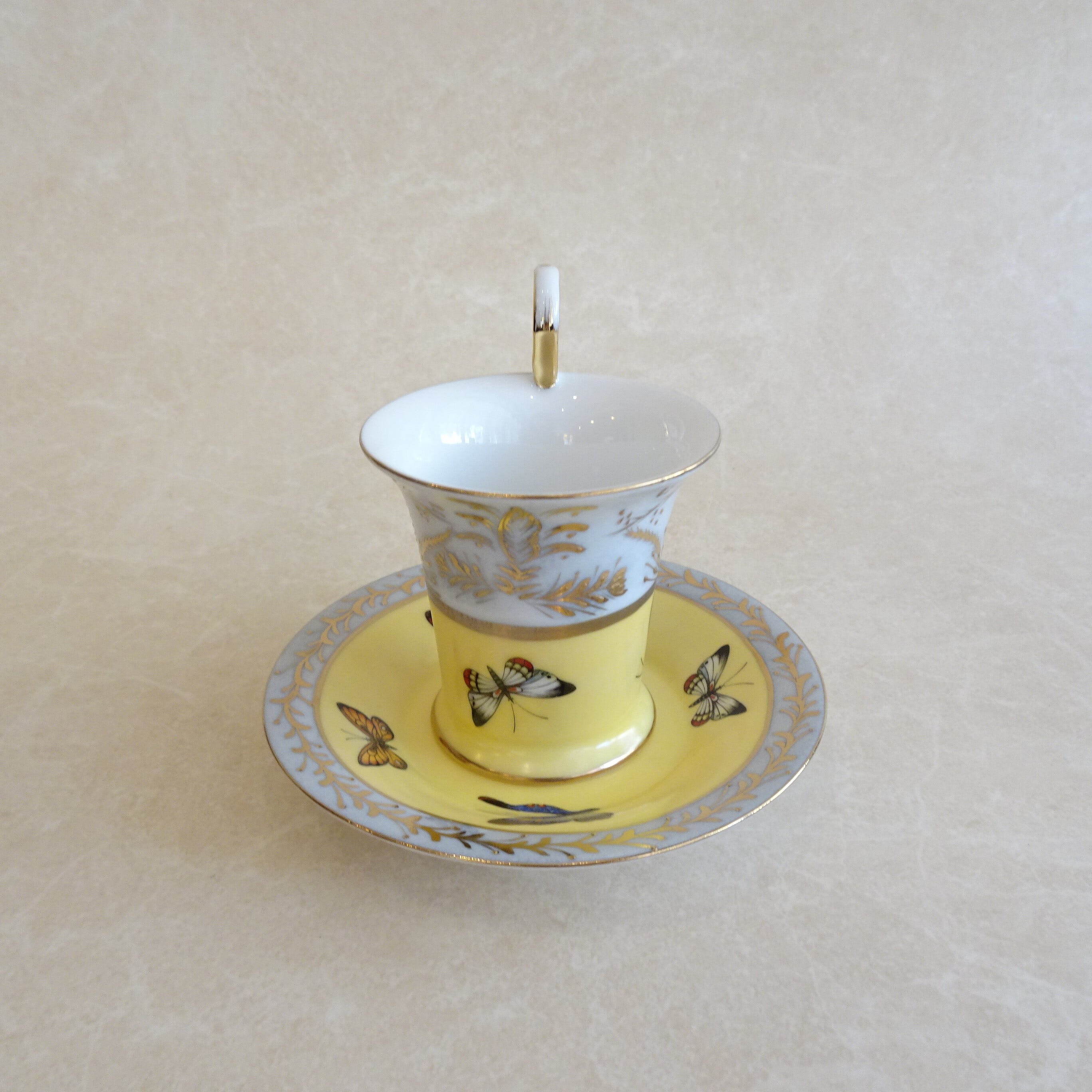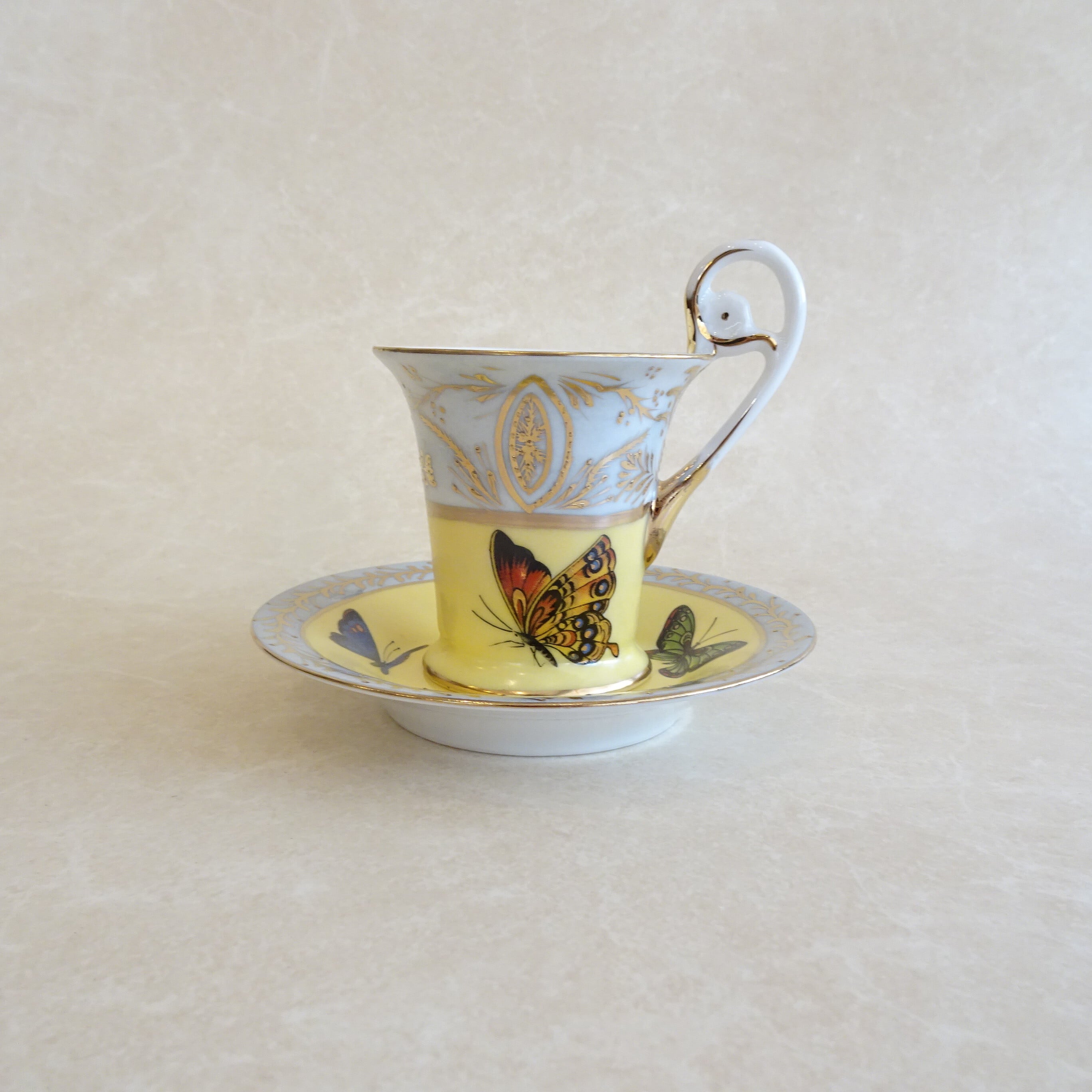 レモンイエローのバタフライカップ&ソーサー
