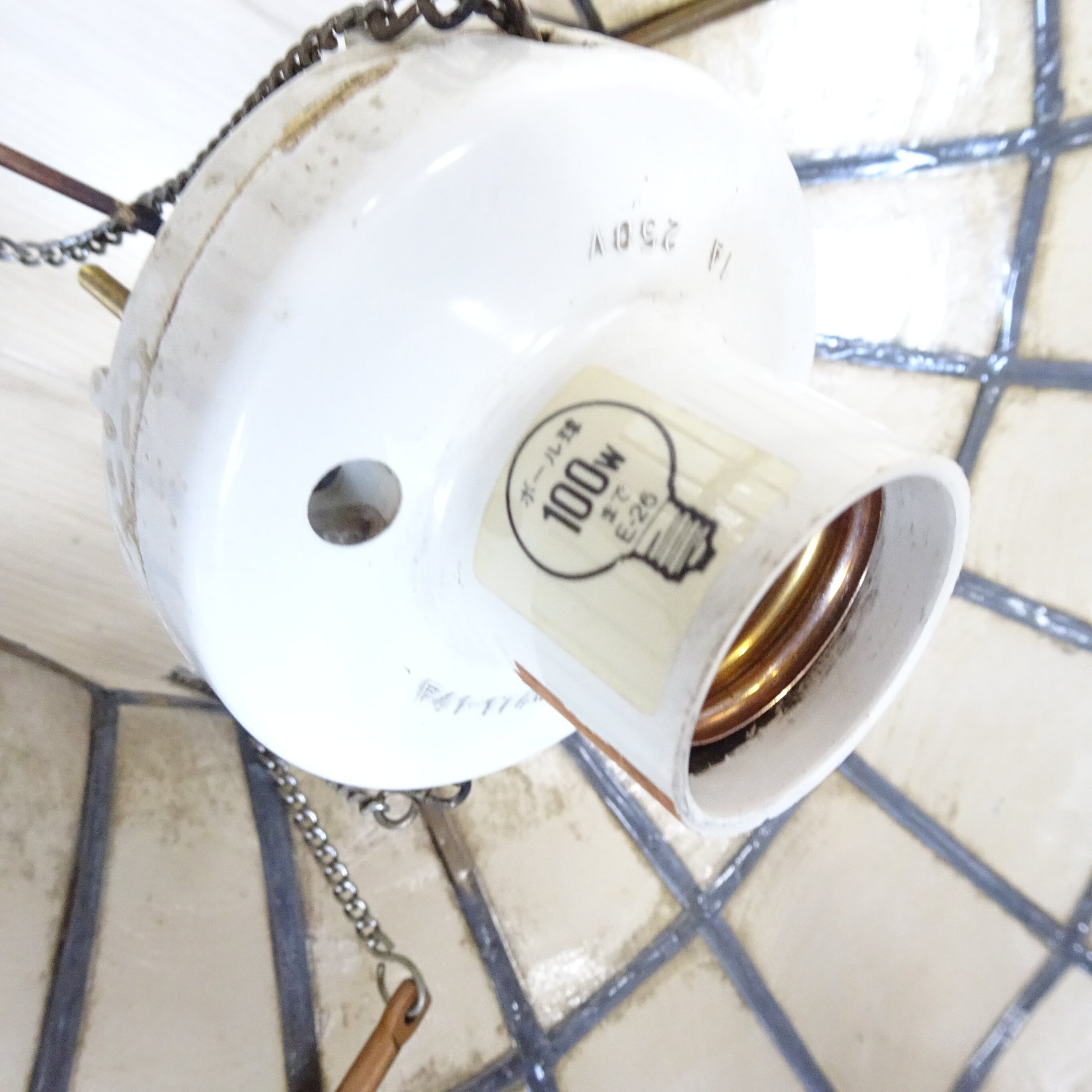 天井のシーリングに取り付けできます。中央に下がっているスイッチを引くと点灯/消灯します。