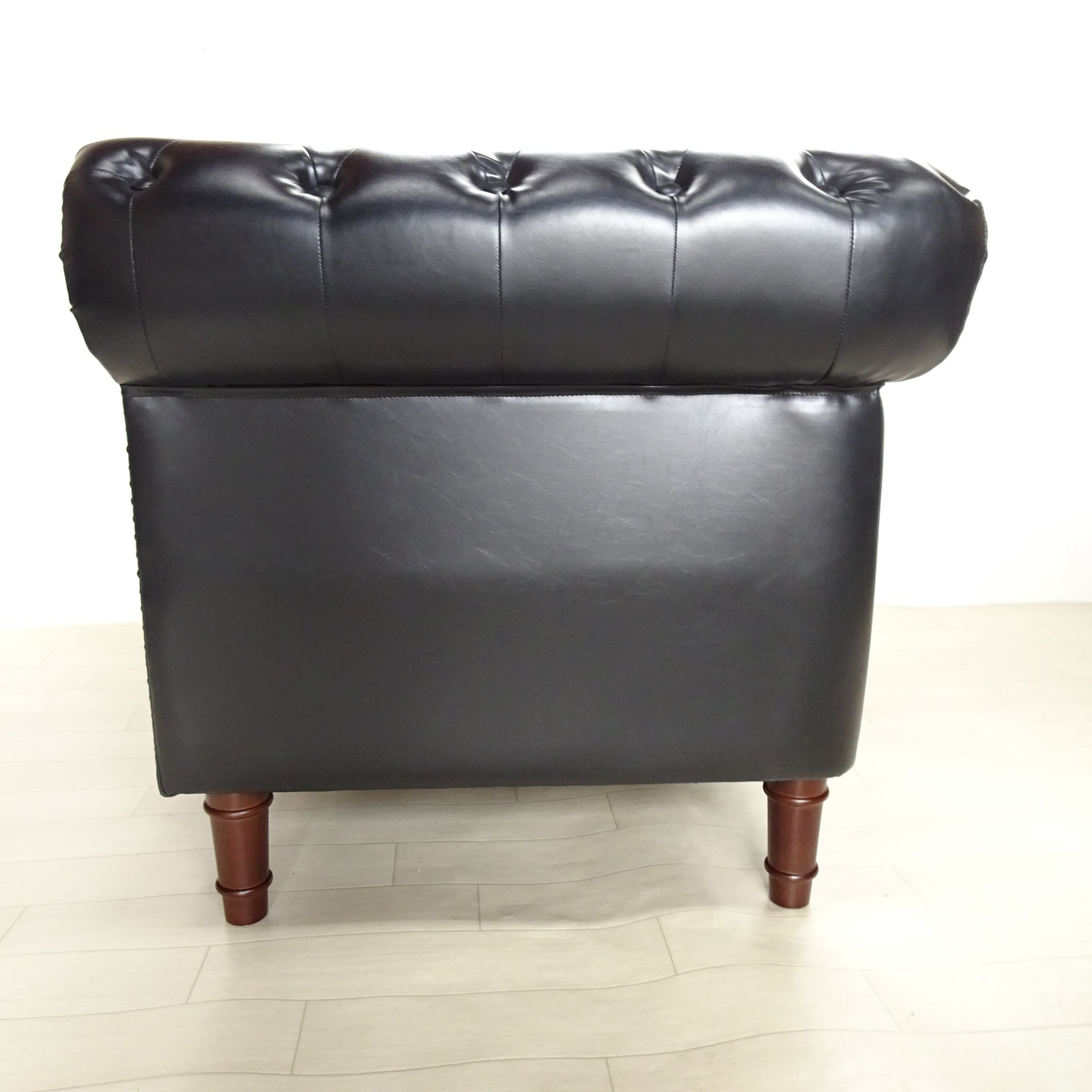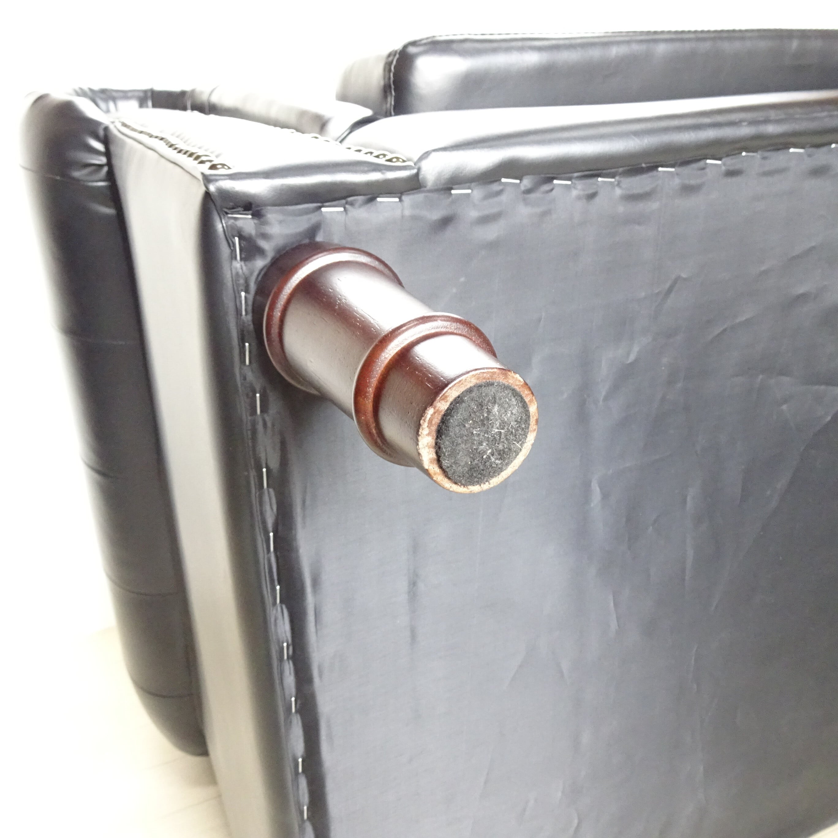脚は木製、座面・背もたれは光沢のあるビニールレザーです。