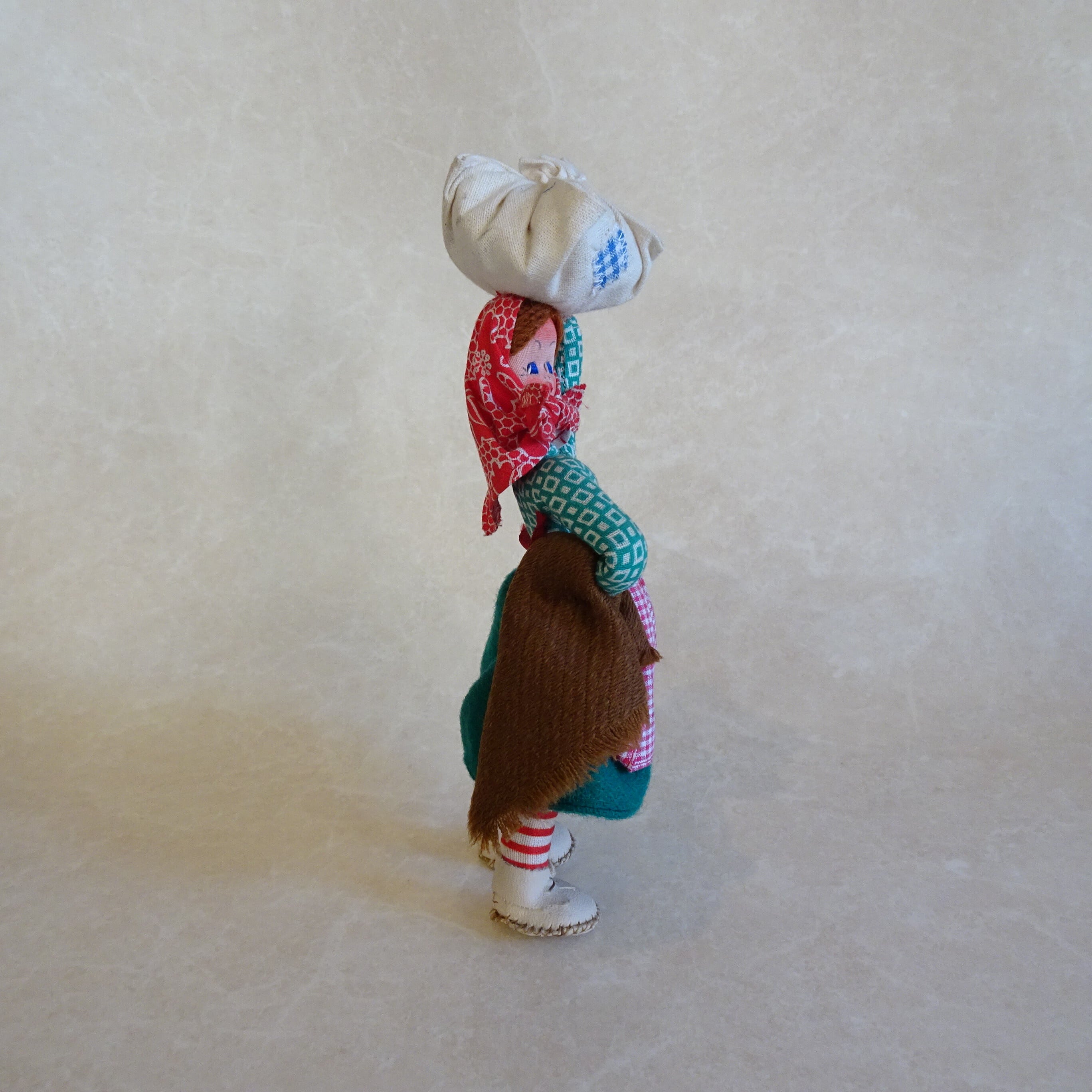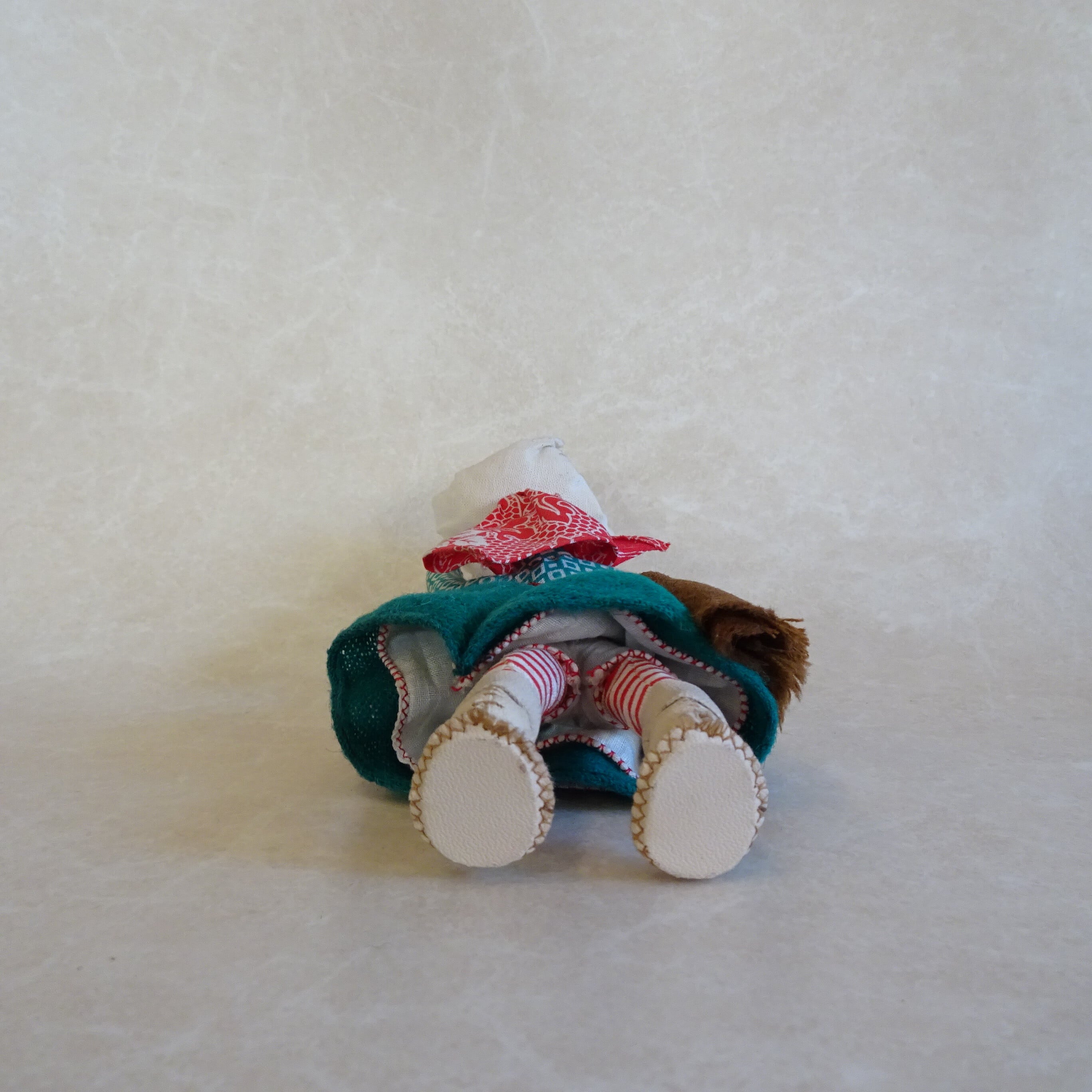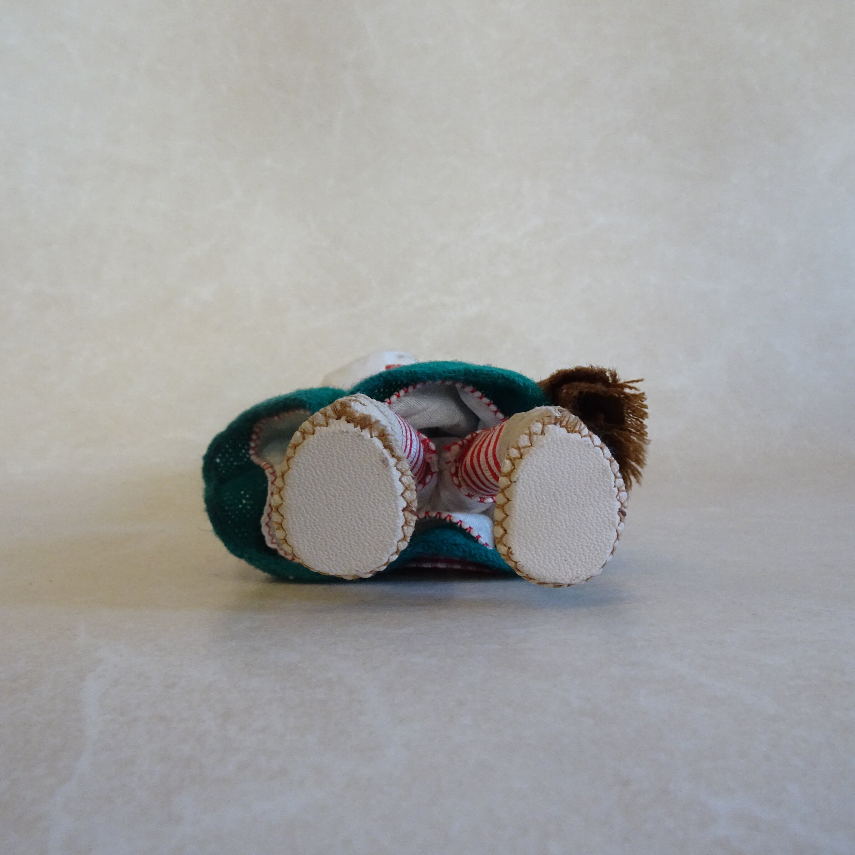 目と口は刺繍、靴は柔らかな革のような素材に思われます。