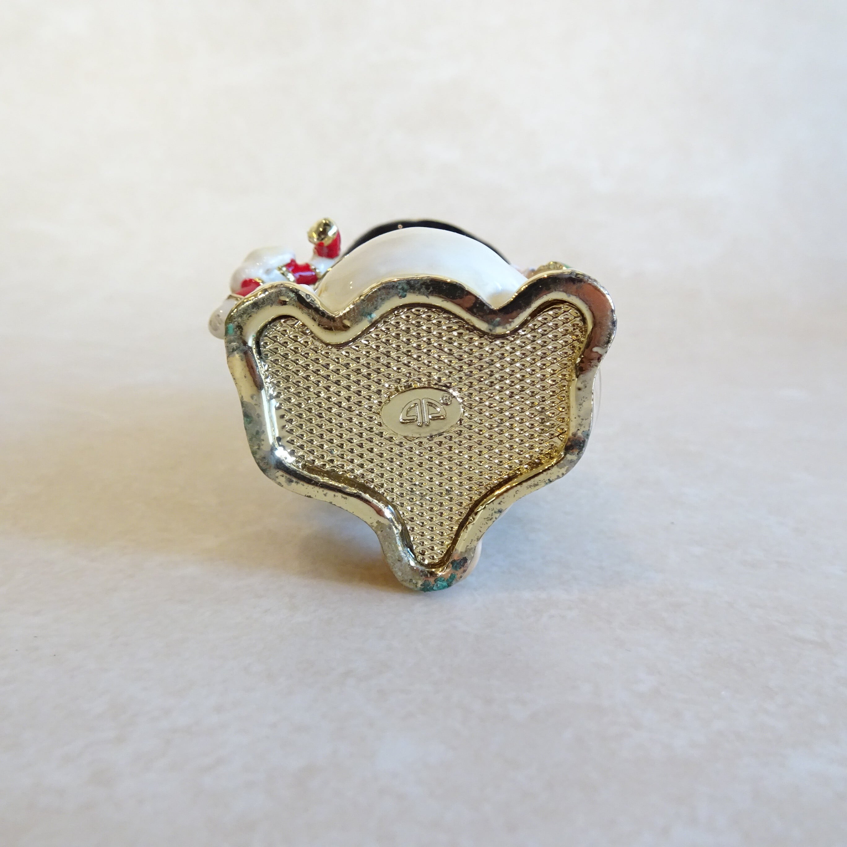 底部分、フチには部分的にすこし緑青が出ています。