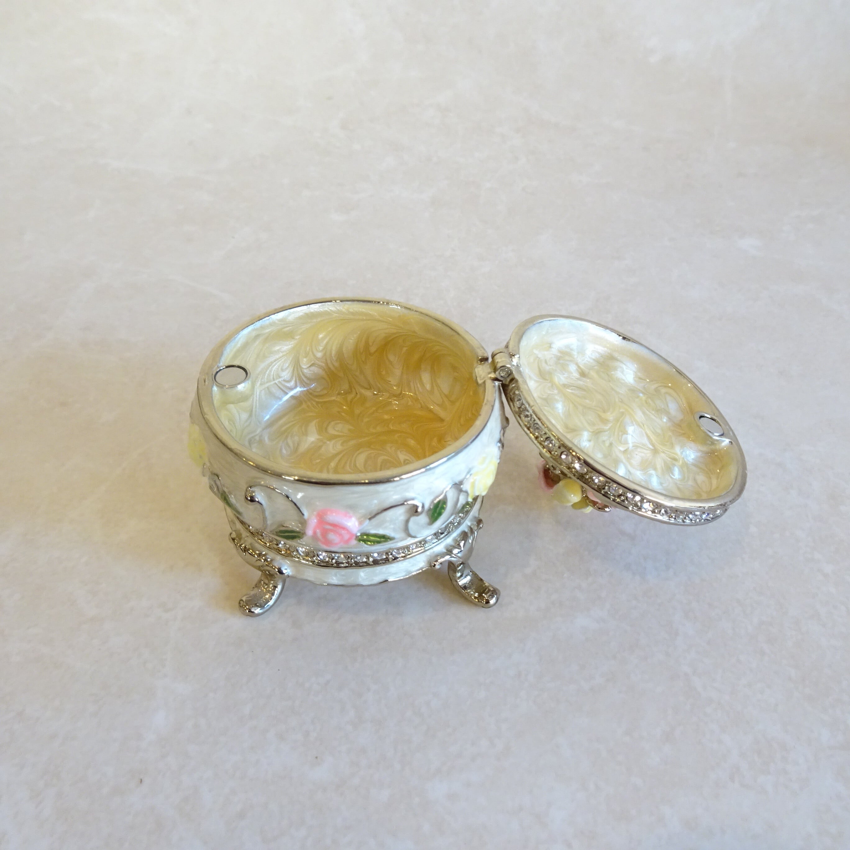 PIEARTHのジュエリーボックスはすべてハンドメイドで、埋め込まれているビジューはクリスタルガラスだそうです。