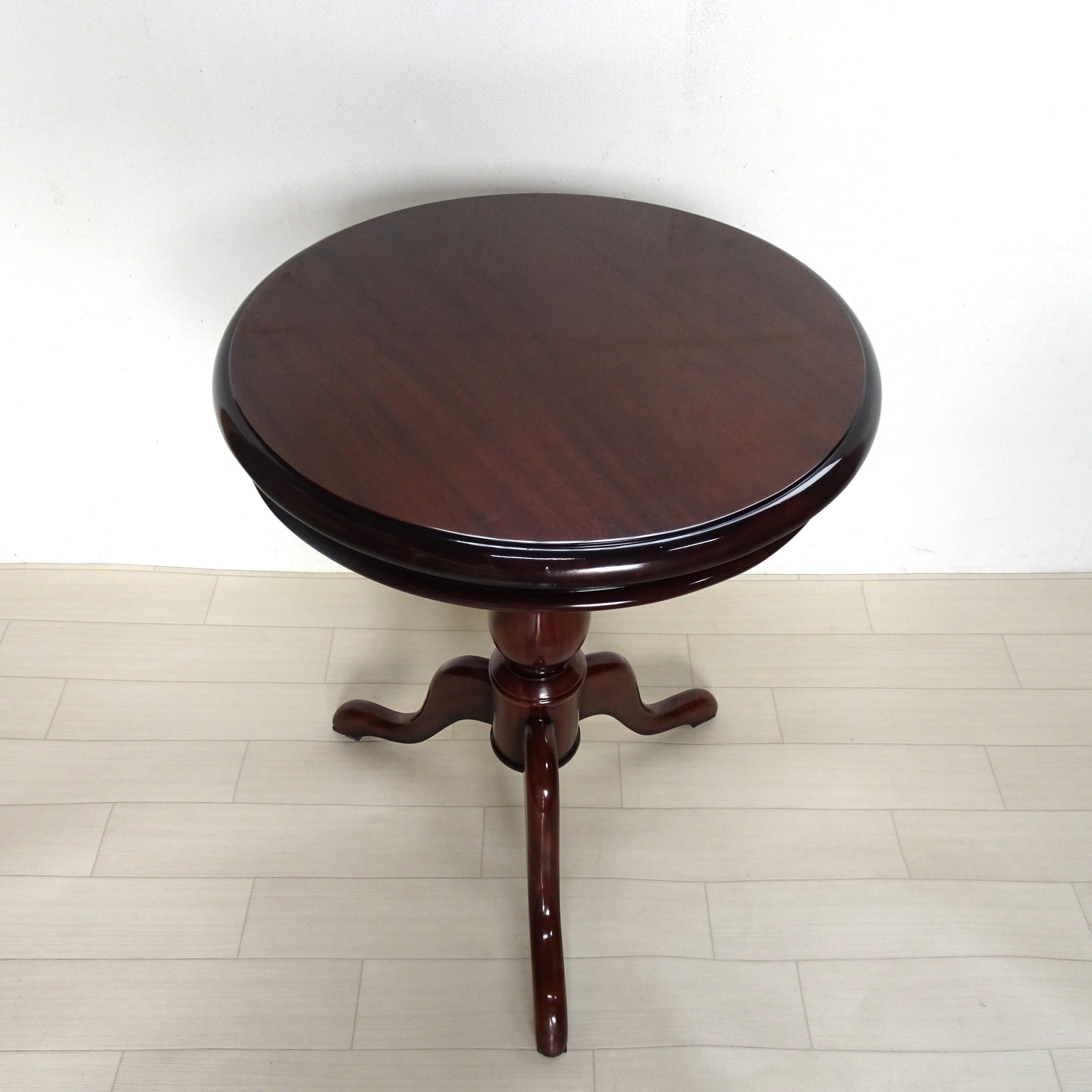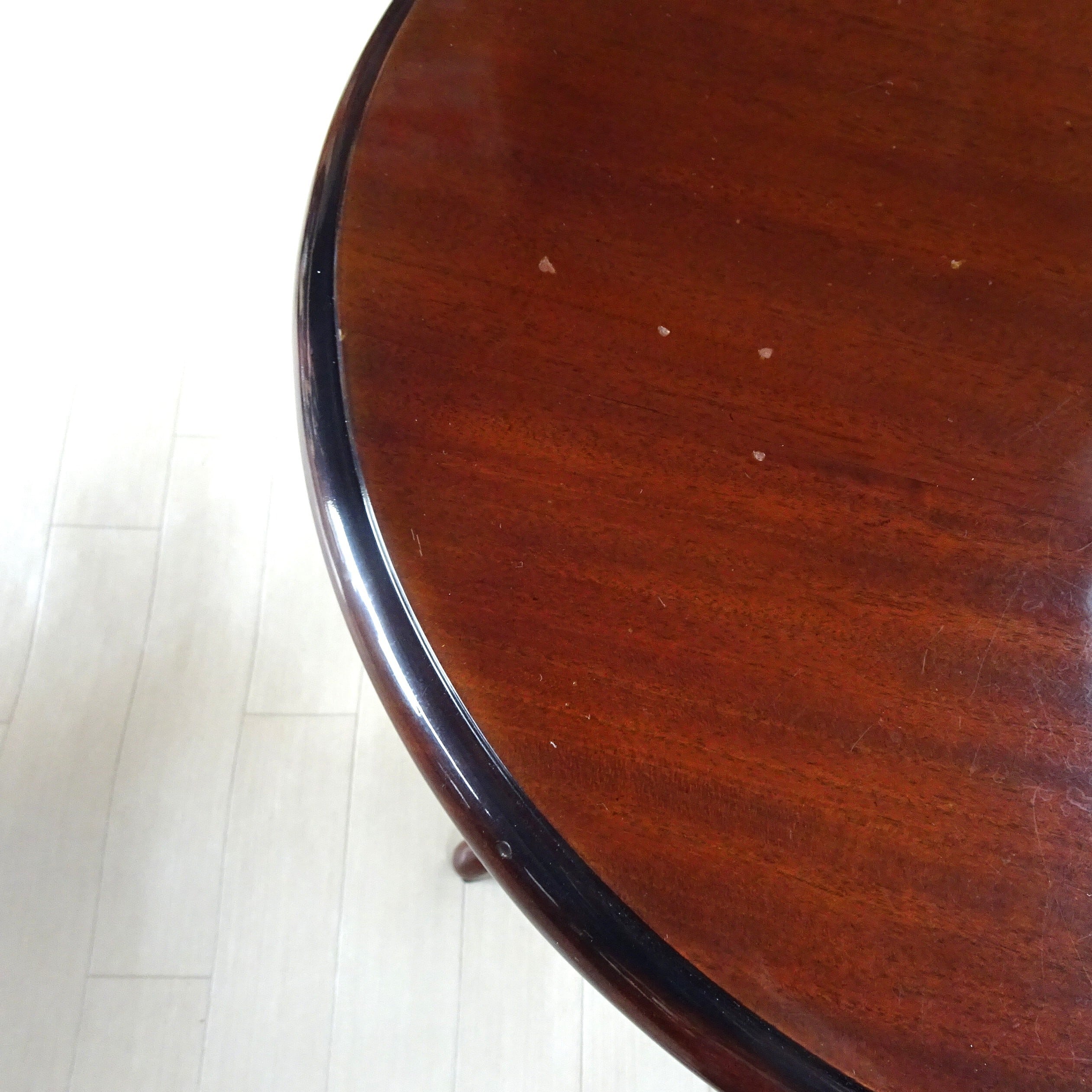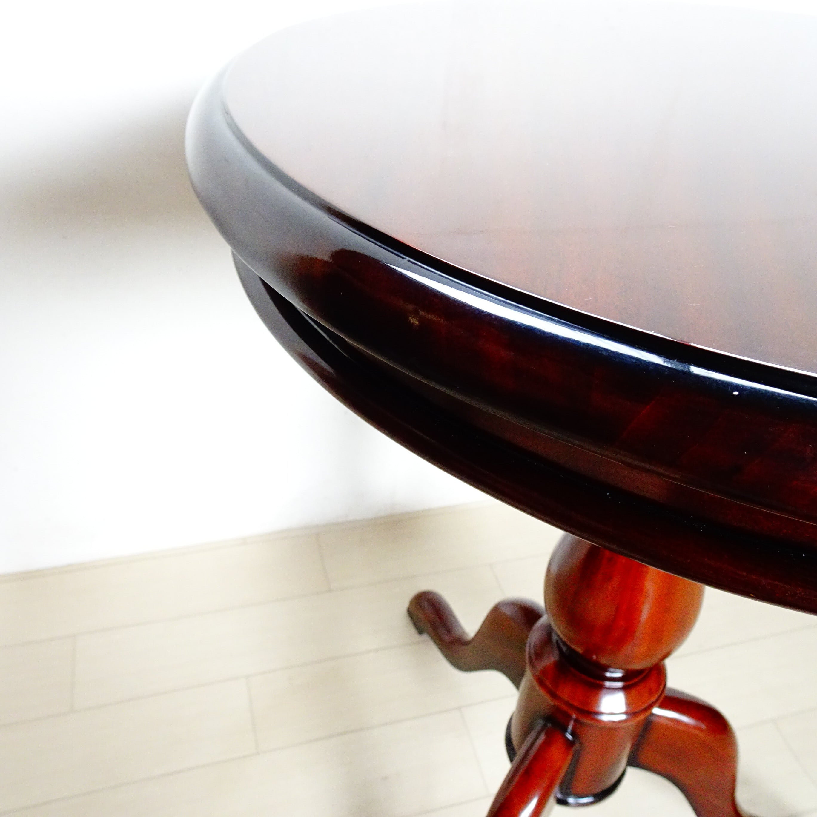 木目を生かした塗装の天板と、曲線で構成された美しい脚が特徴のテーブルです。