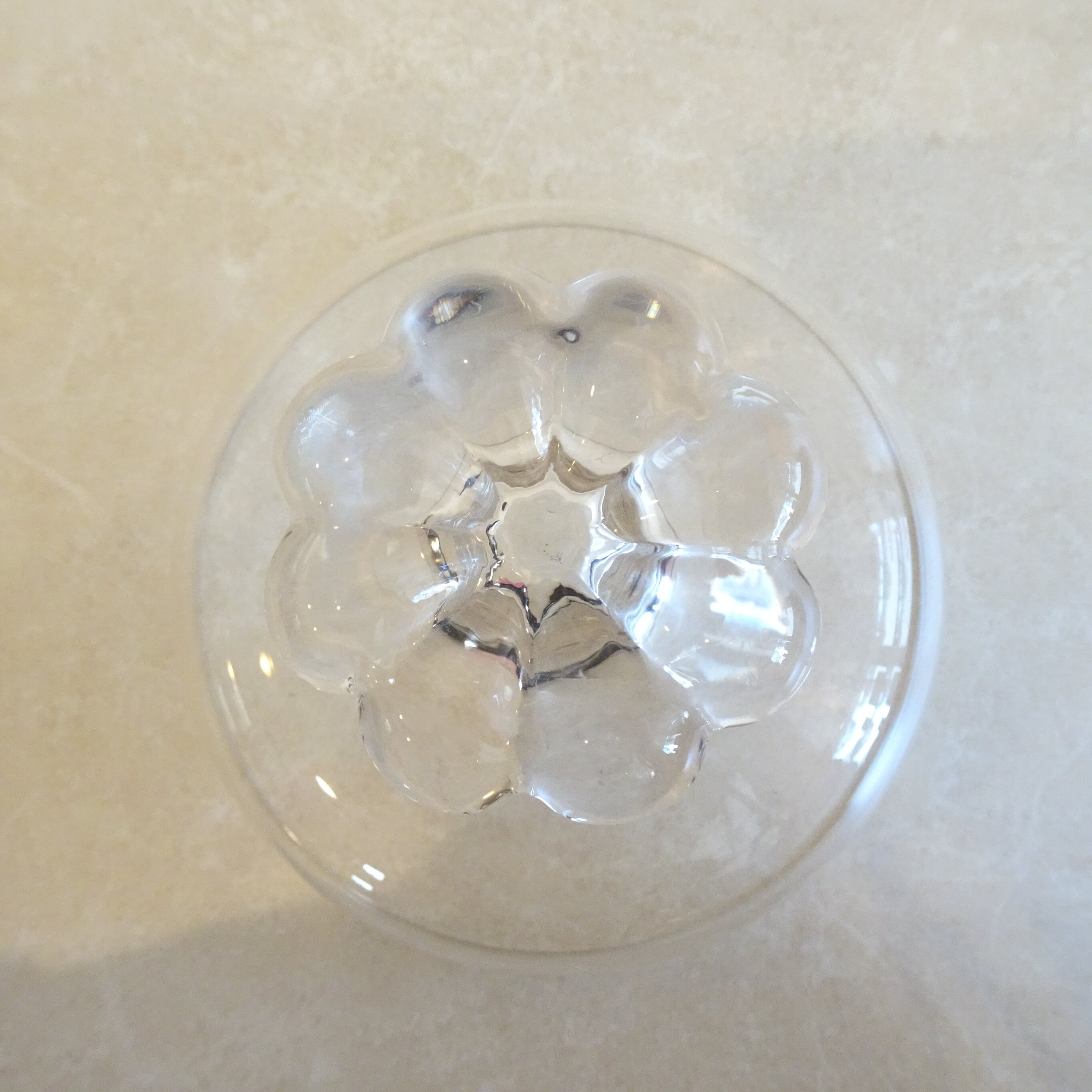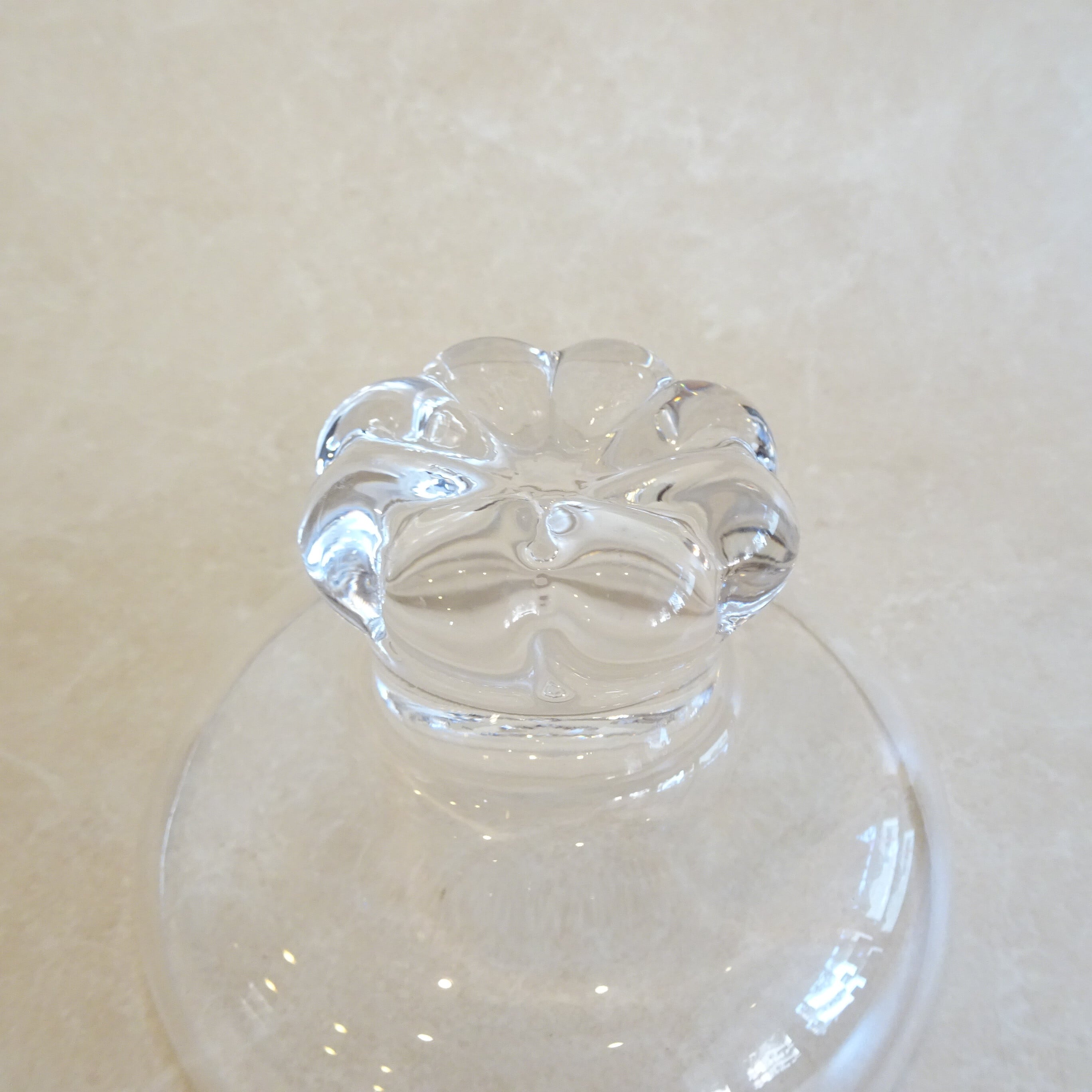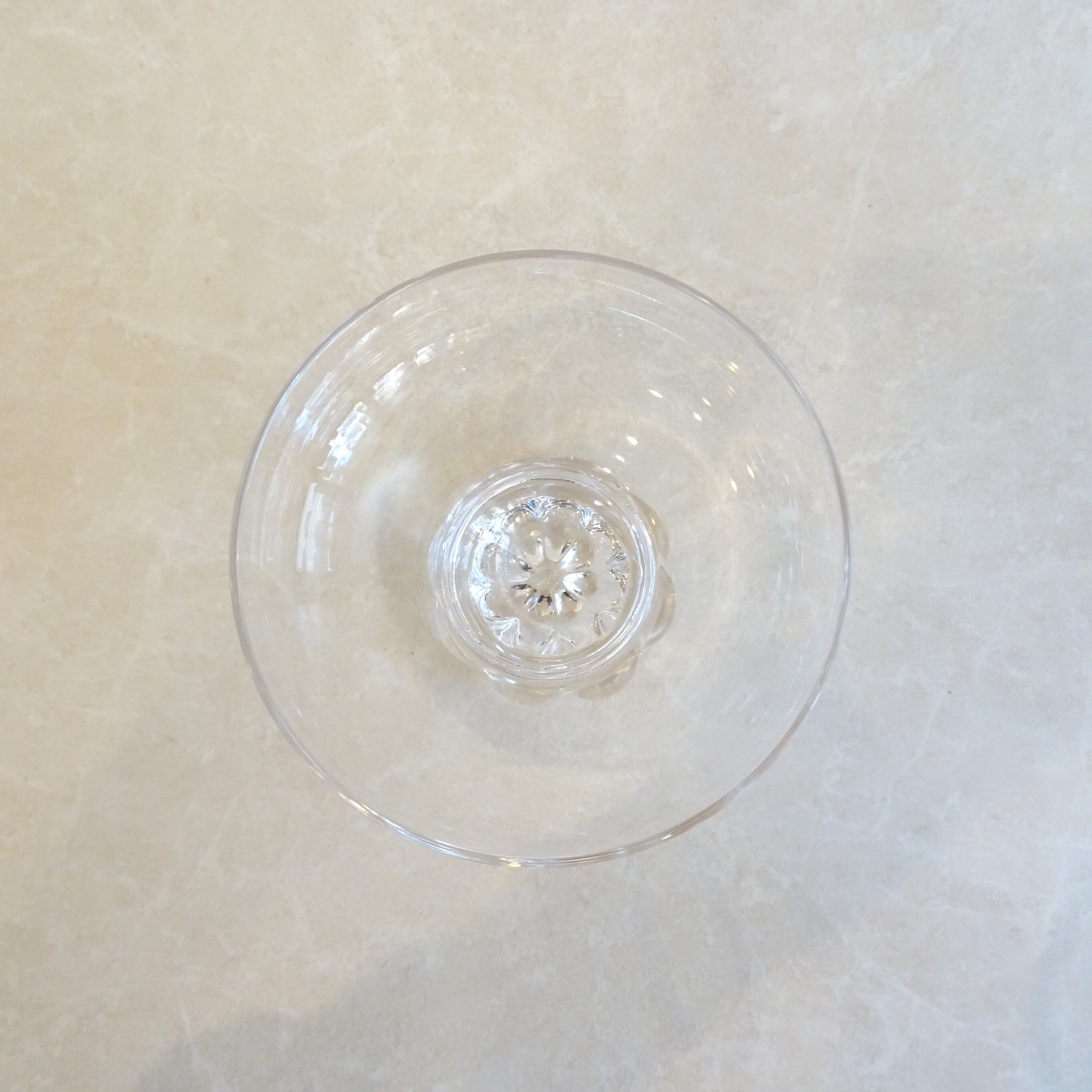 8枚の花びらをもつ花の形をした脚のあるデザートグラスです。