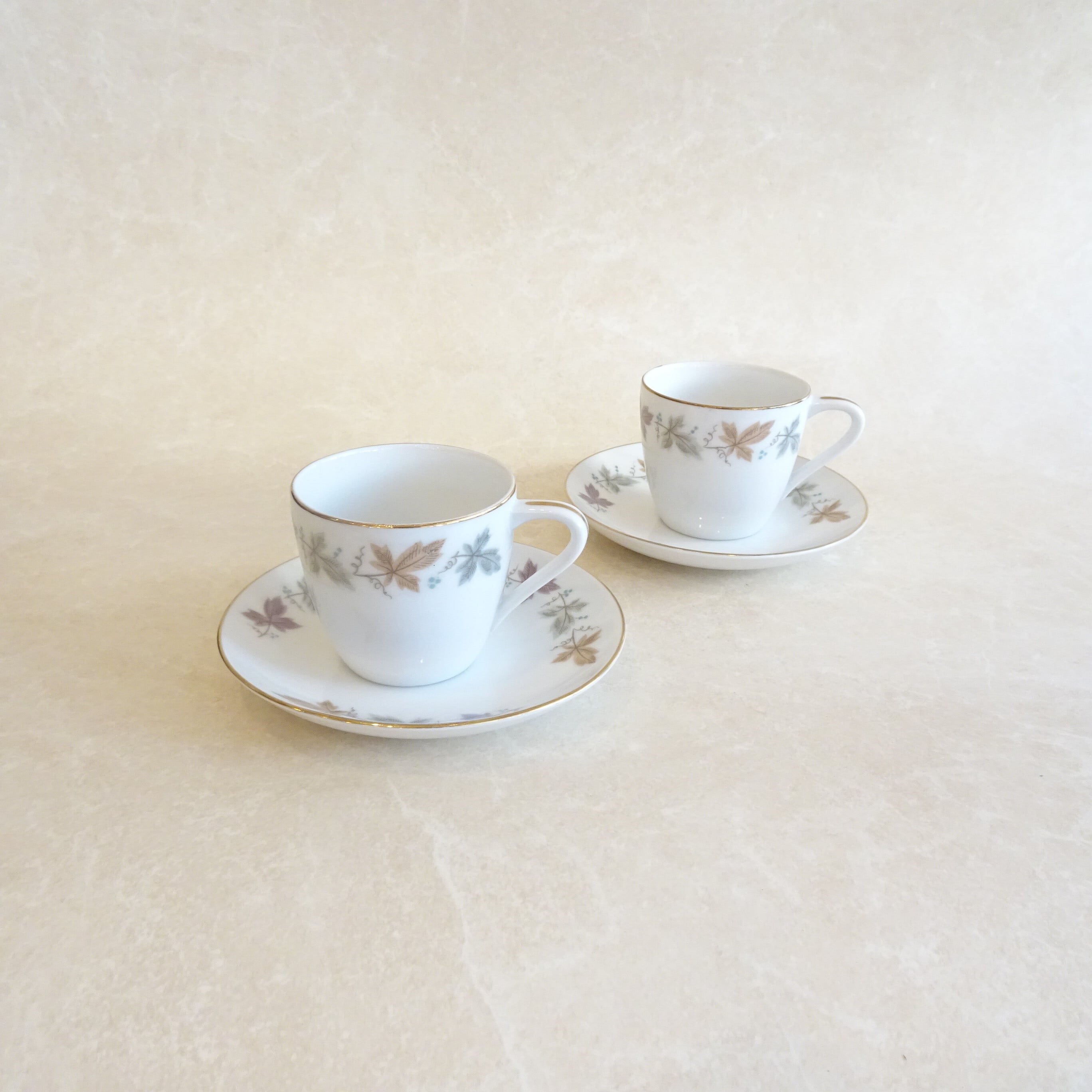 葡萄葉の古いデミタスカップ&ソーサー 2客セット