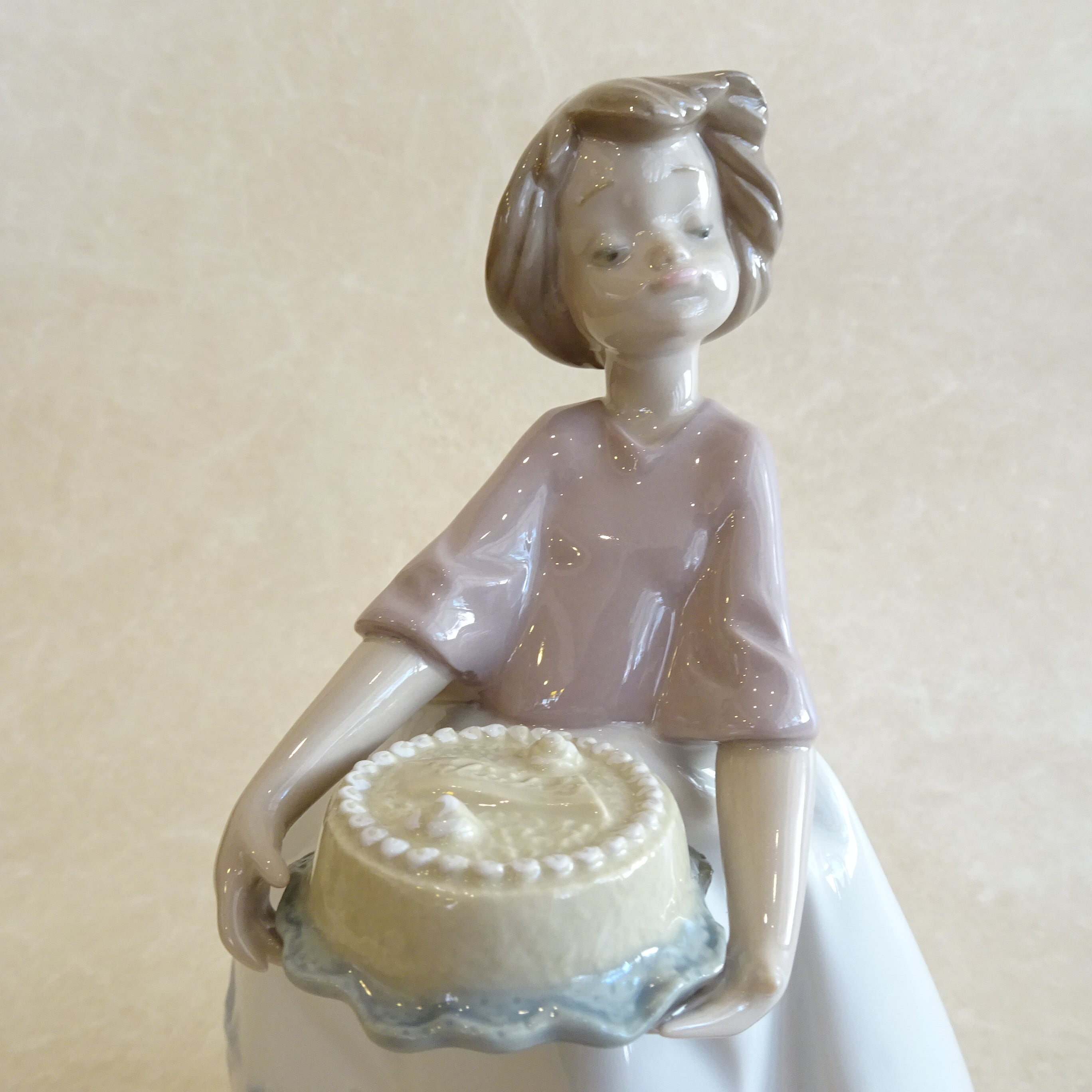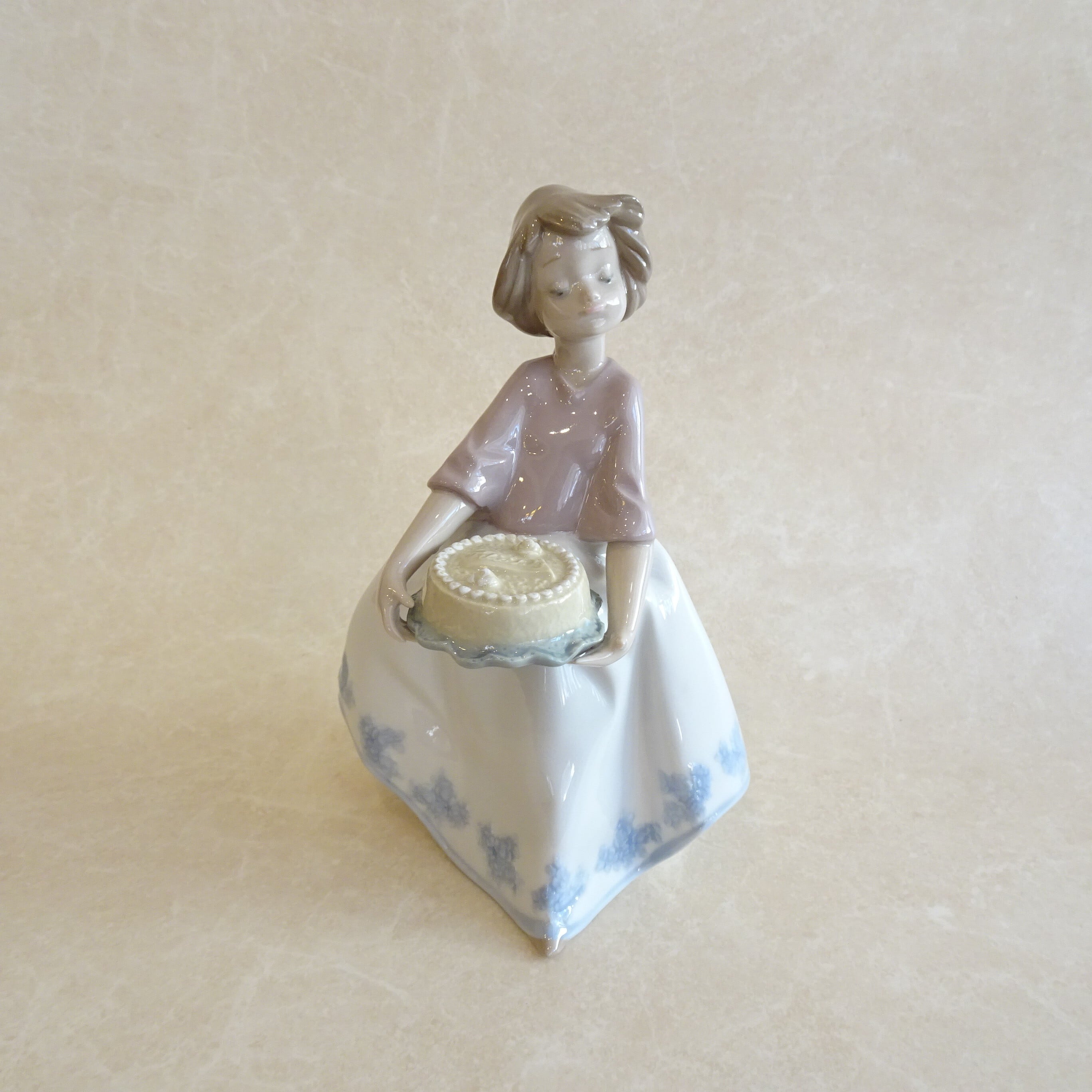 リヤドロ バースデーケーキを持つ女の子のフィギュリン