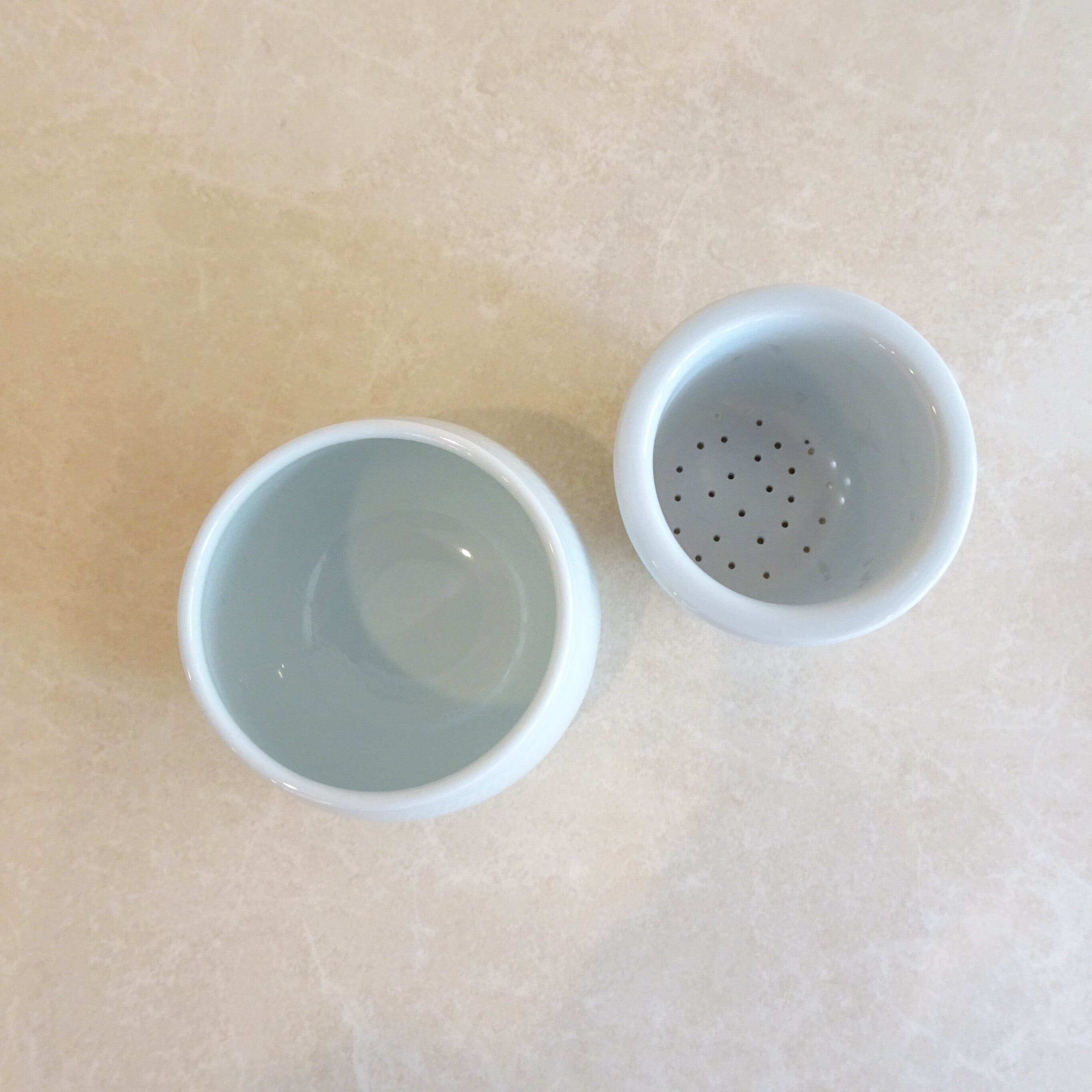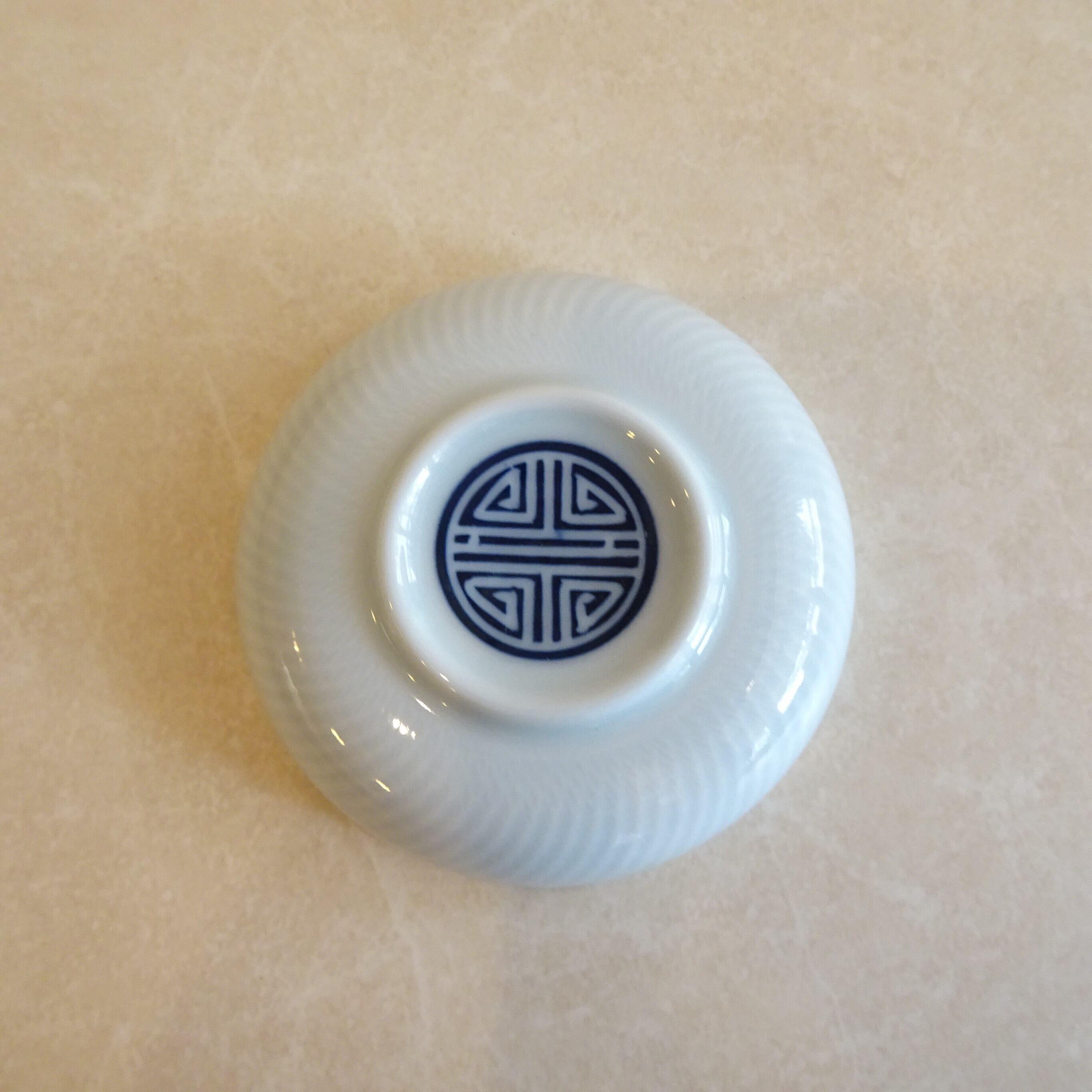 縁起のよい「寿」の文様(円寿文)がかかれた蓋つきの湯のみです。