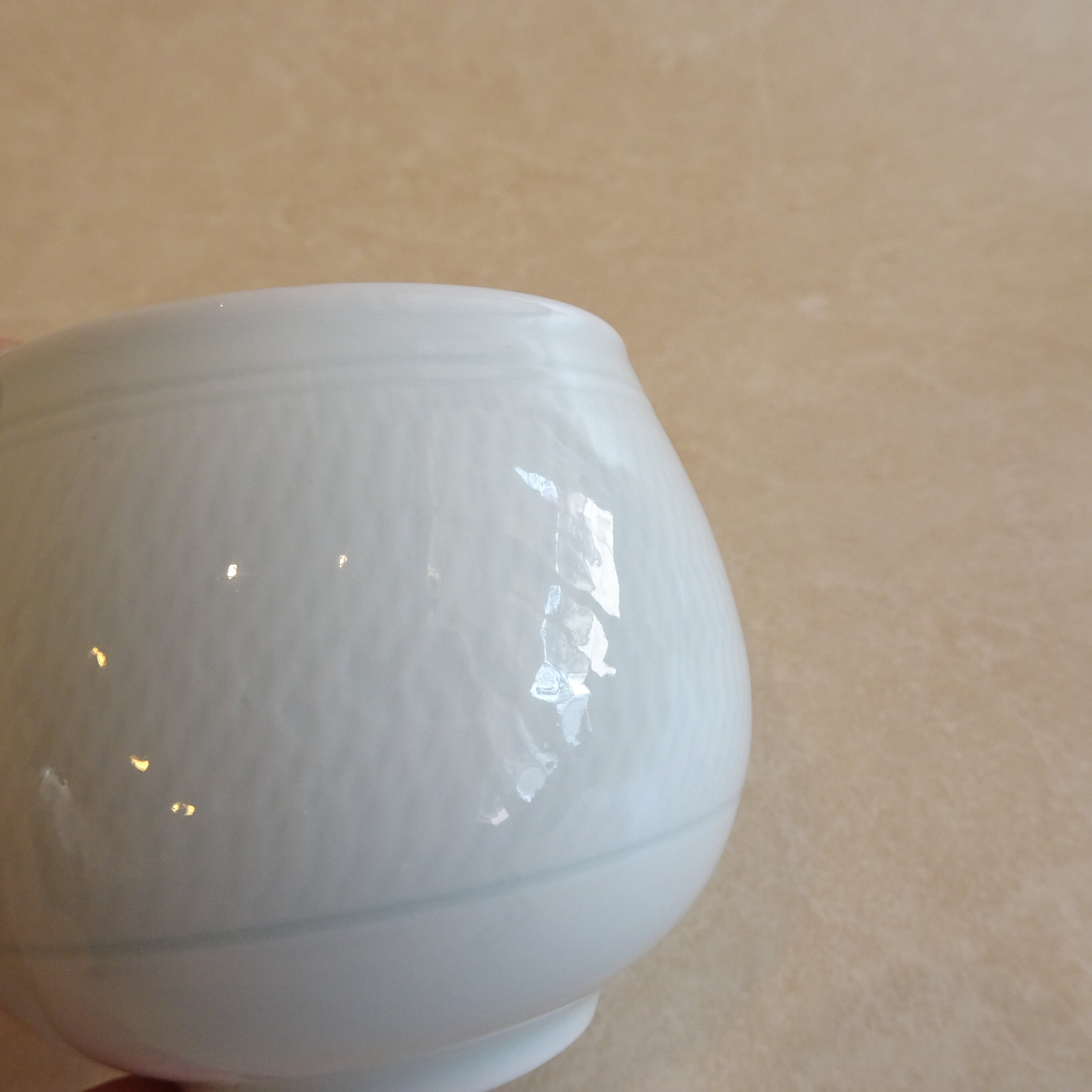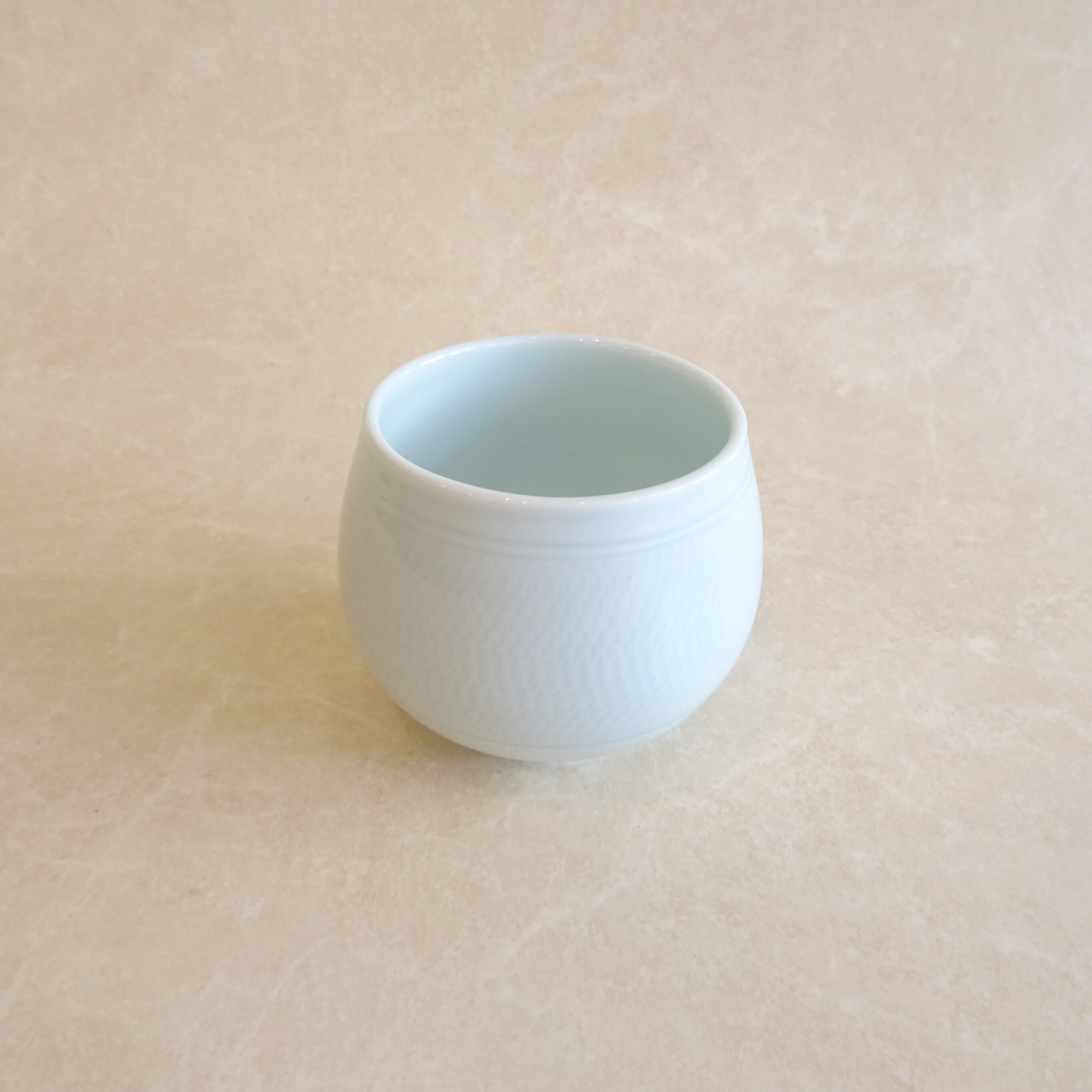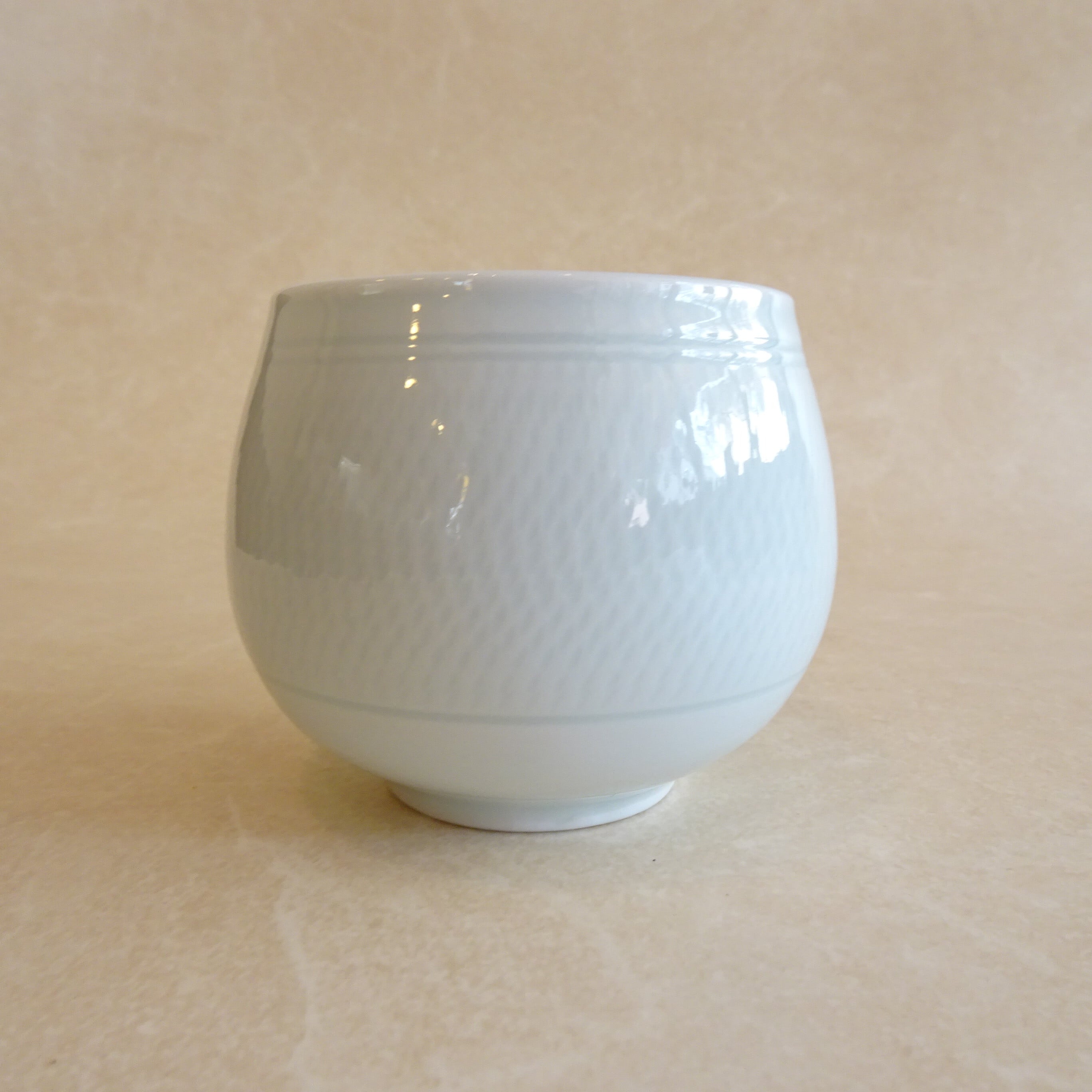 うっすら入った模様がとても美しい白磁の湯のみです。