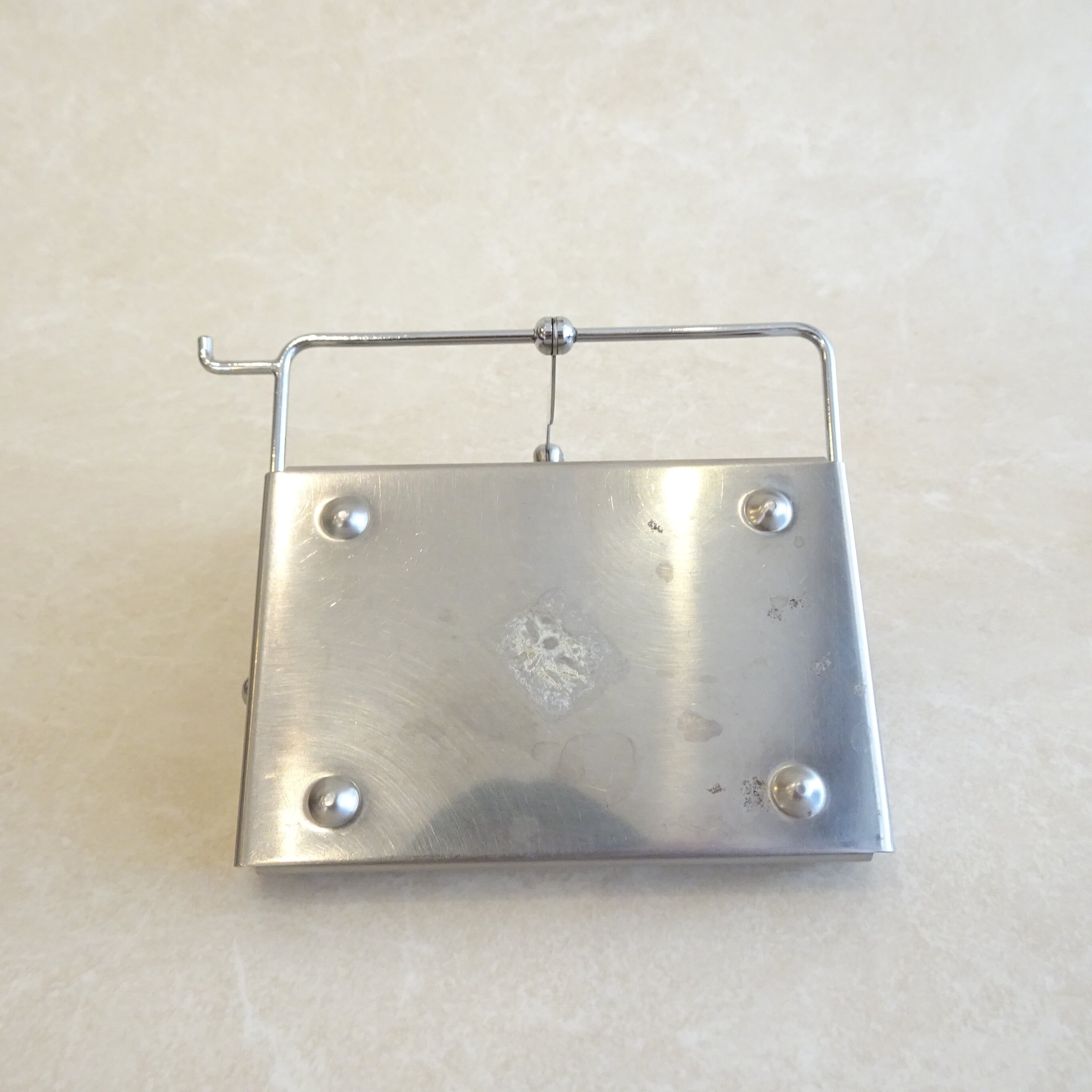 金属製のフレームにガラスの器が2つあります。