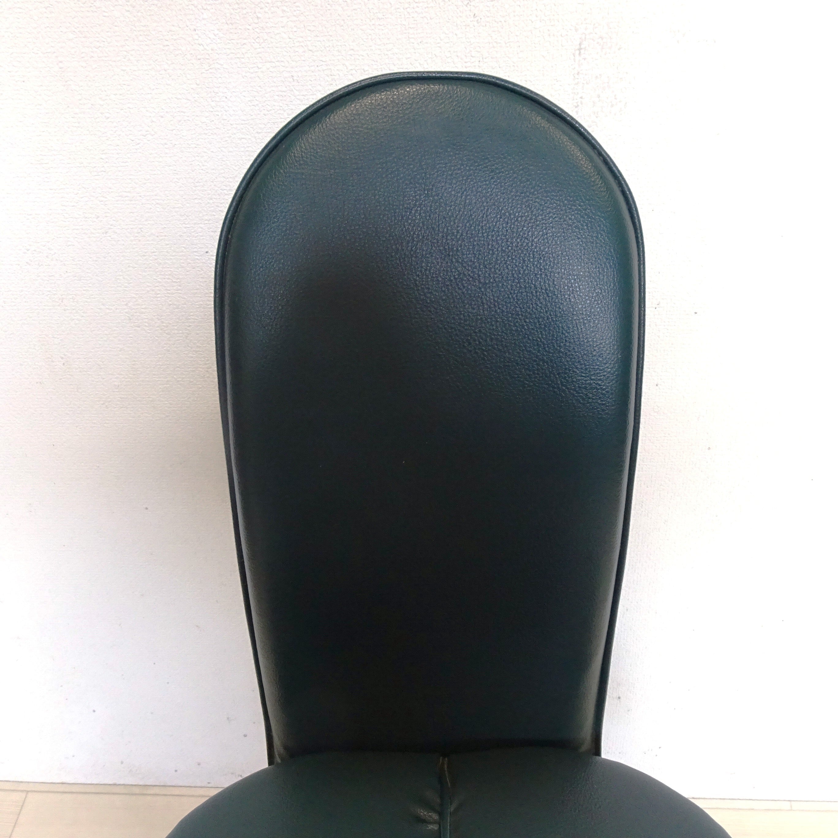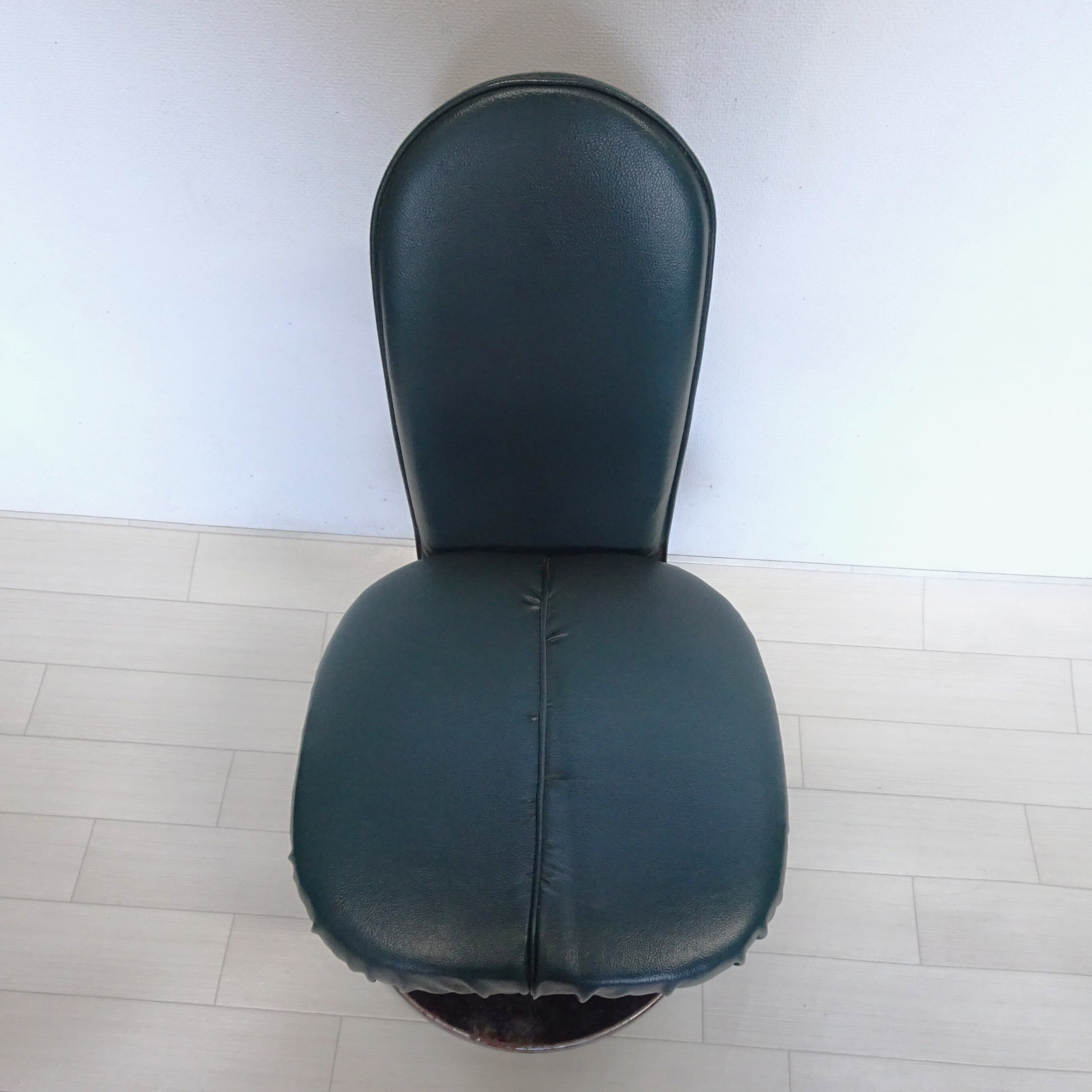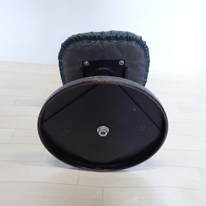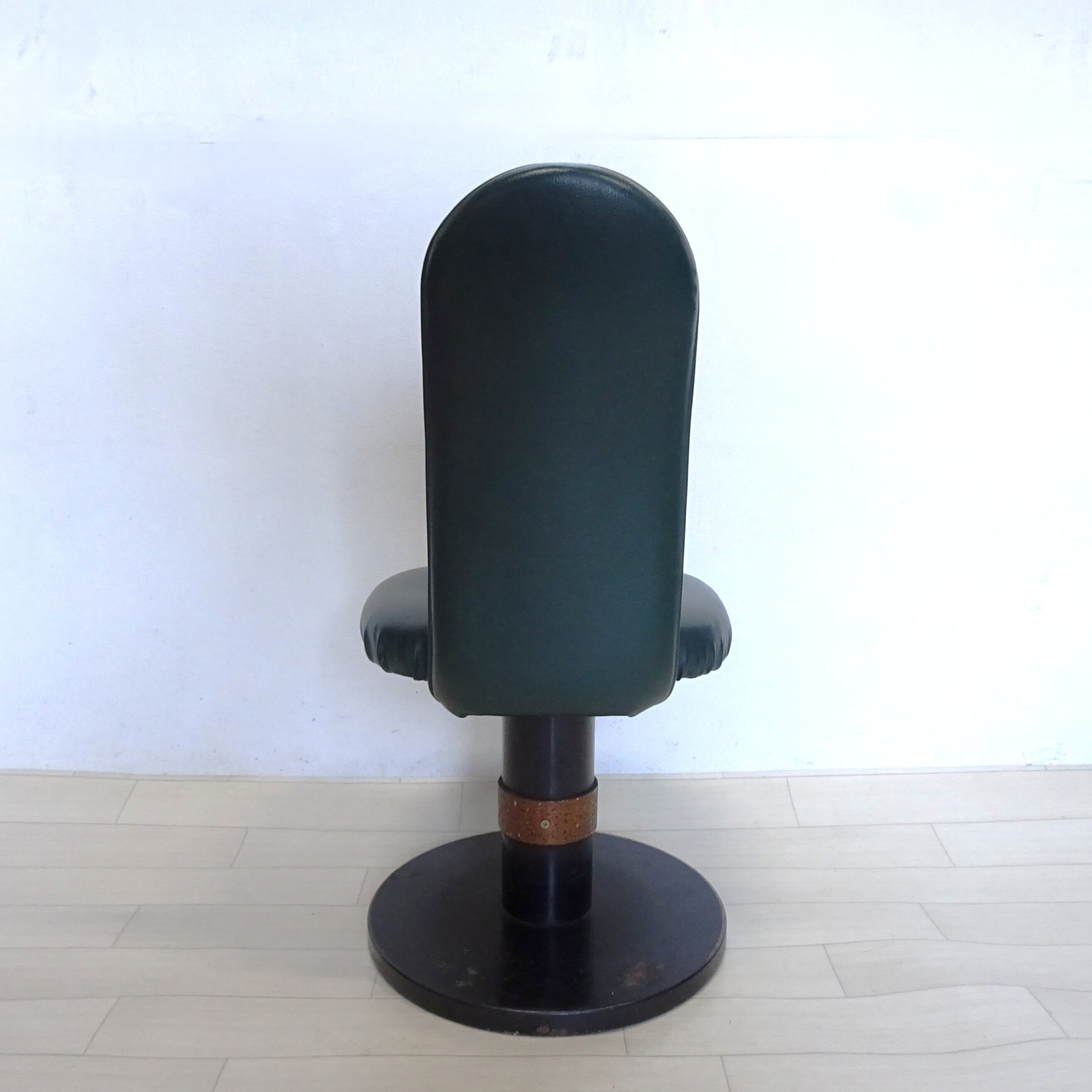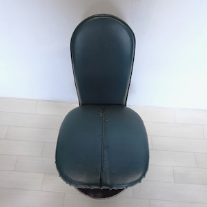 ずっしり重い鉄の一本脚に、深い緑のシートが特徴的です。