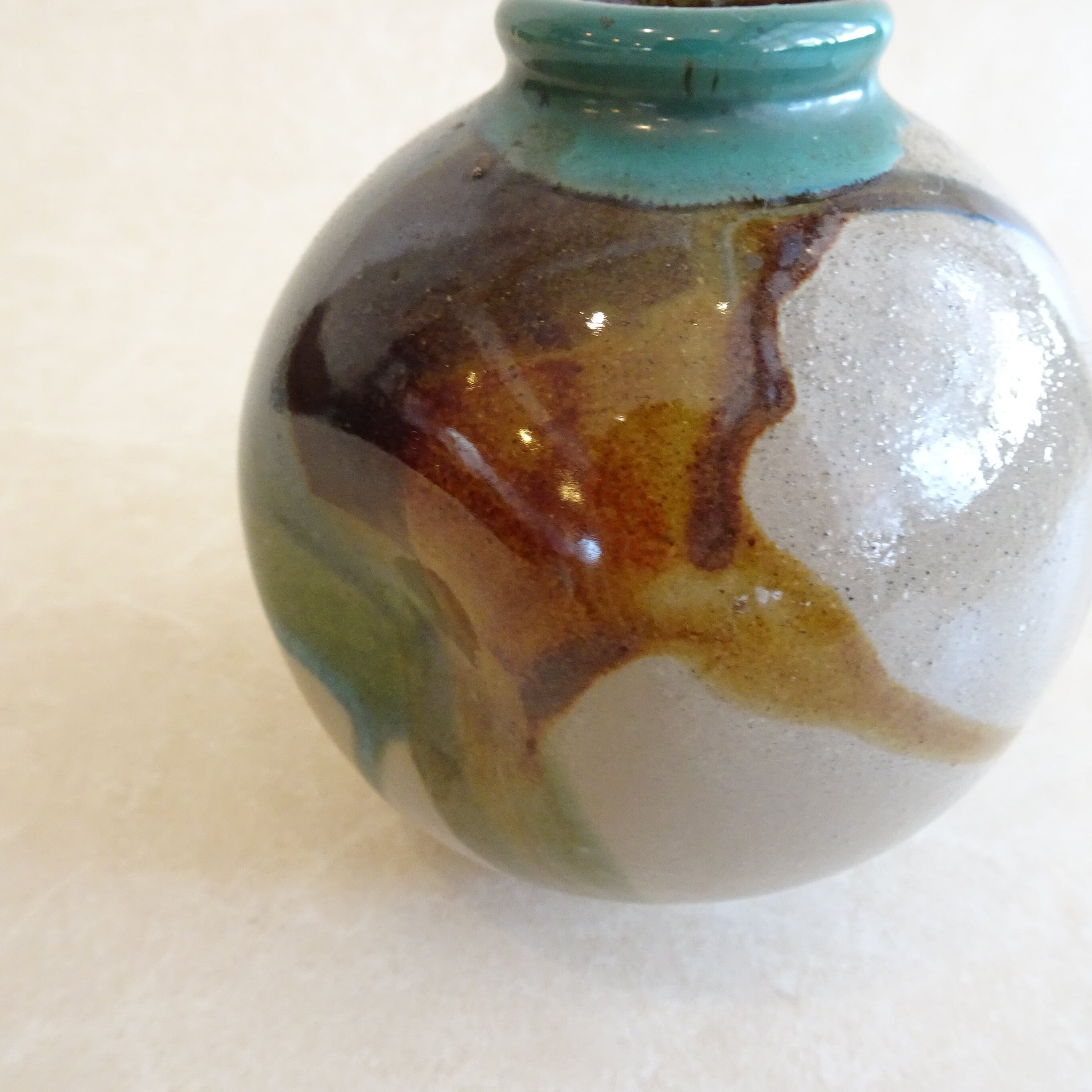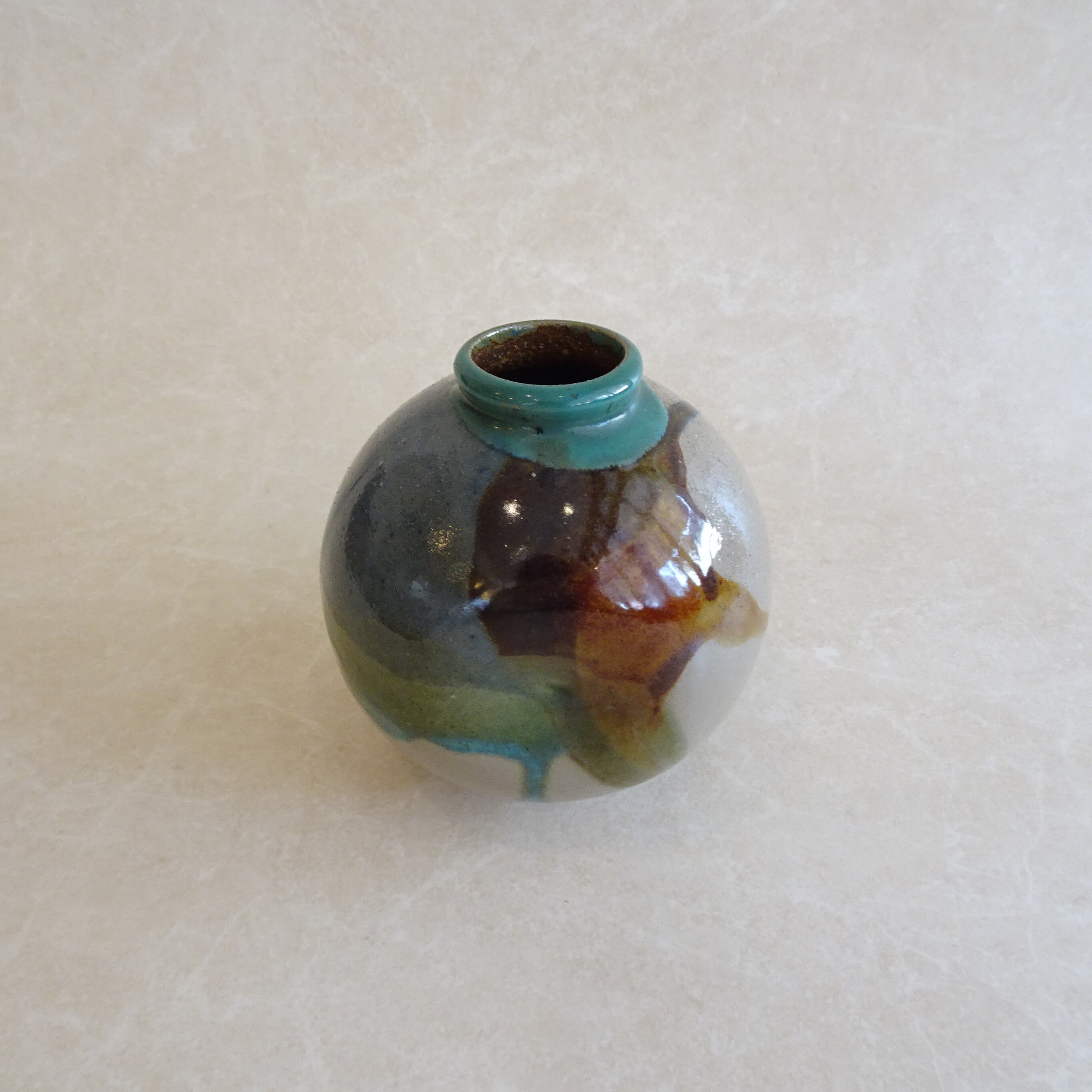 カラフルな焼き物の丸い一輪差し