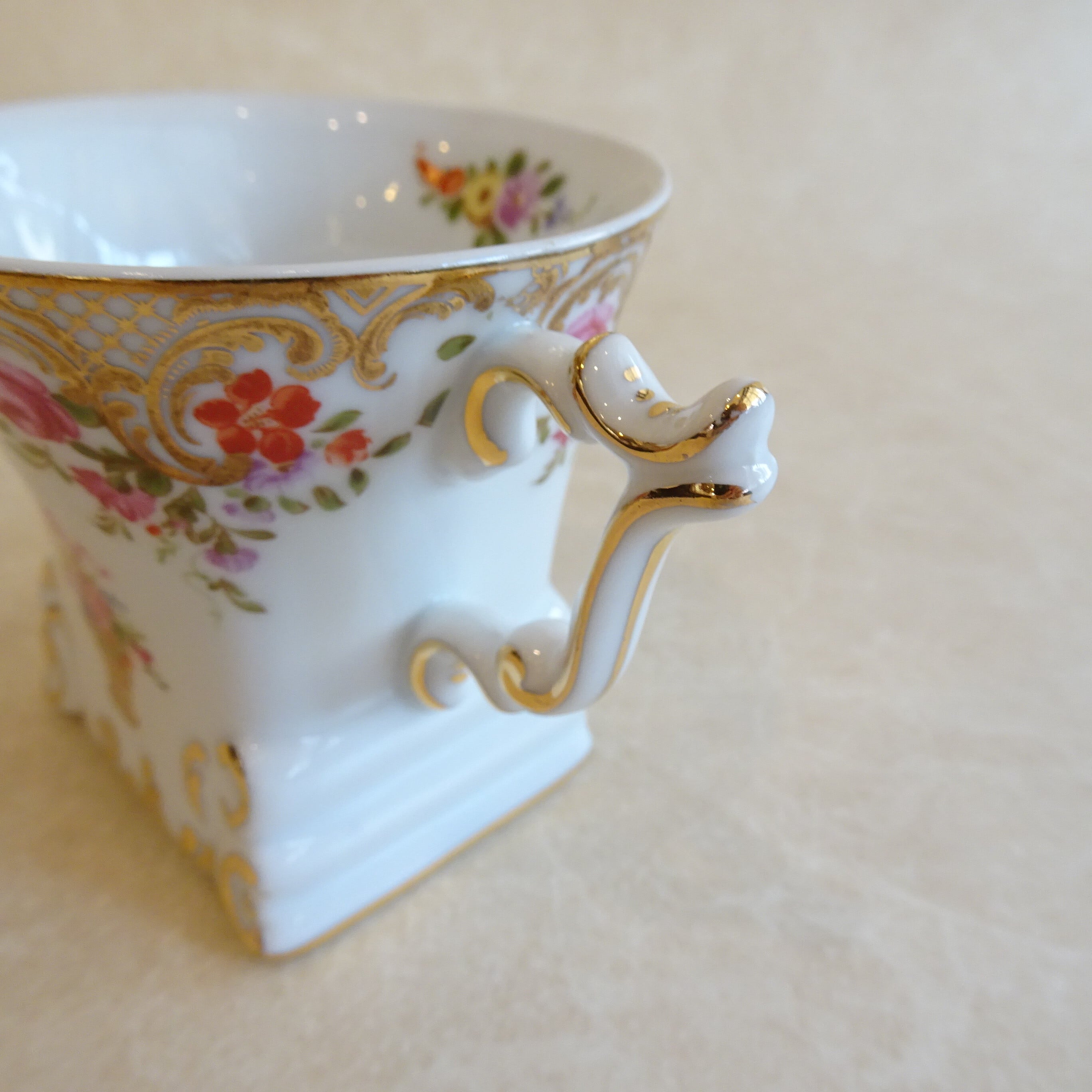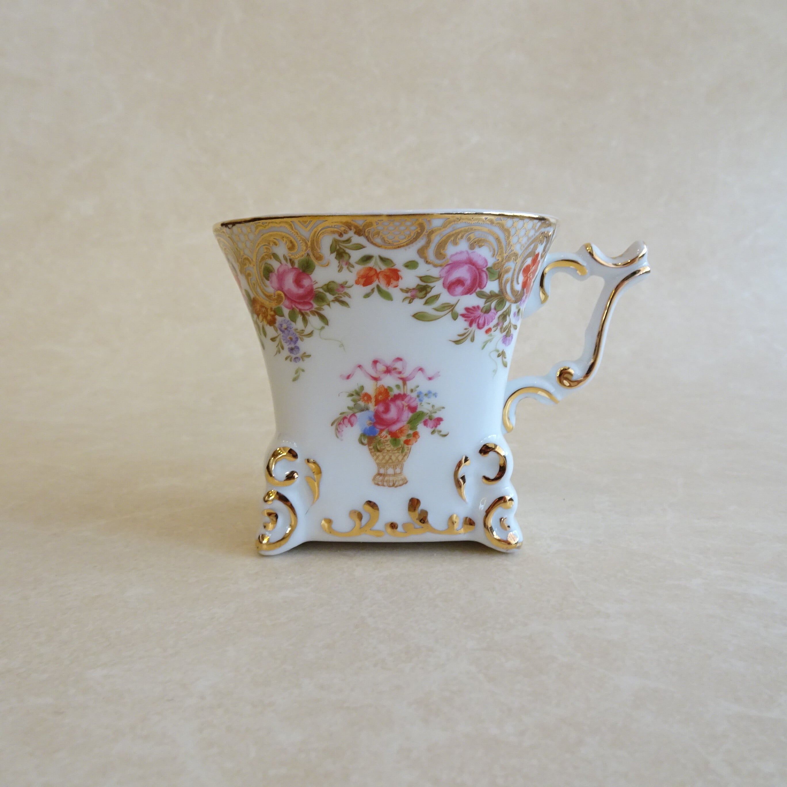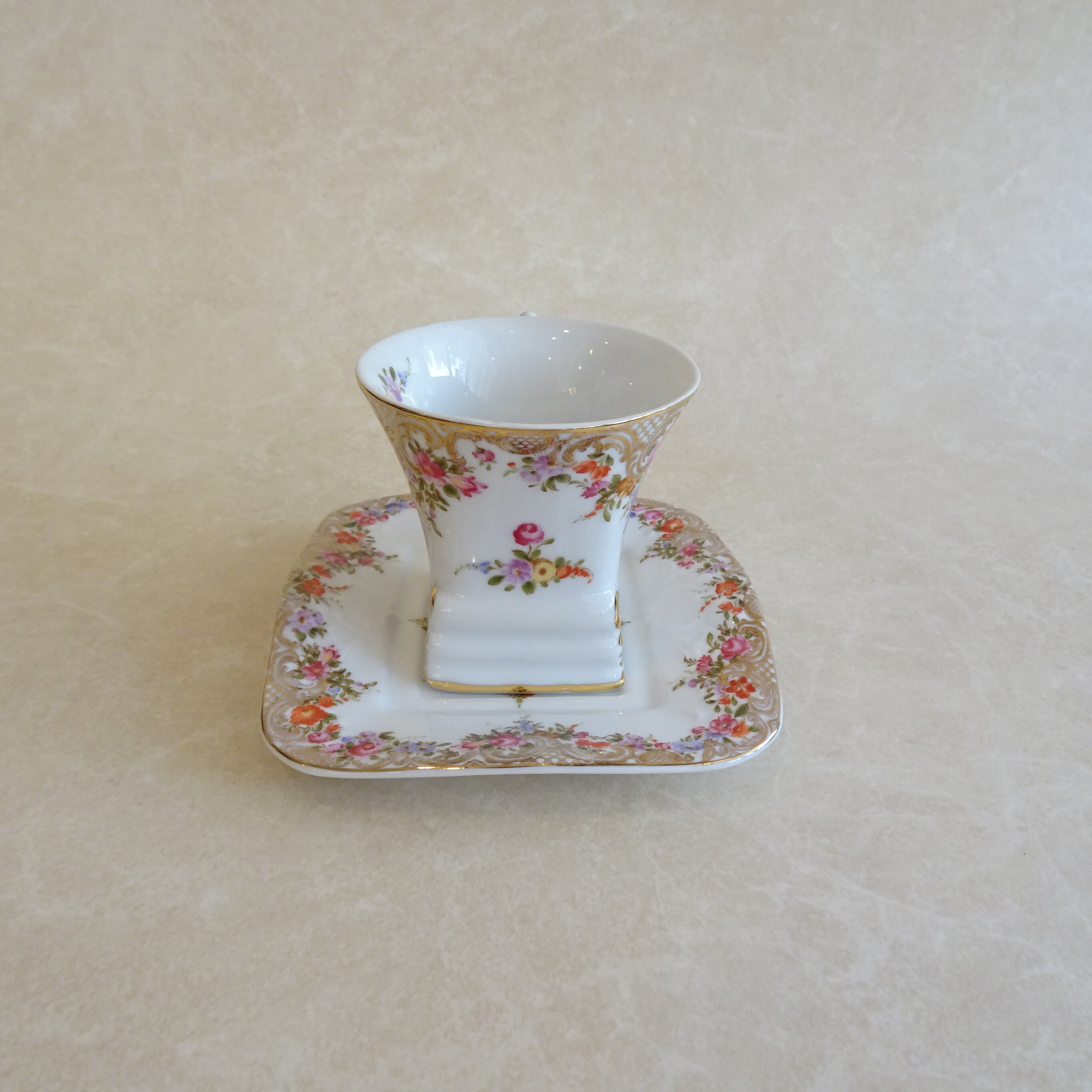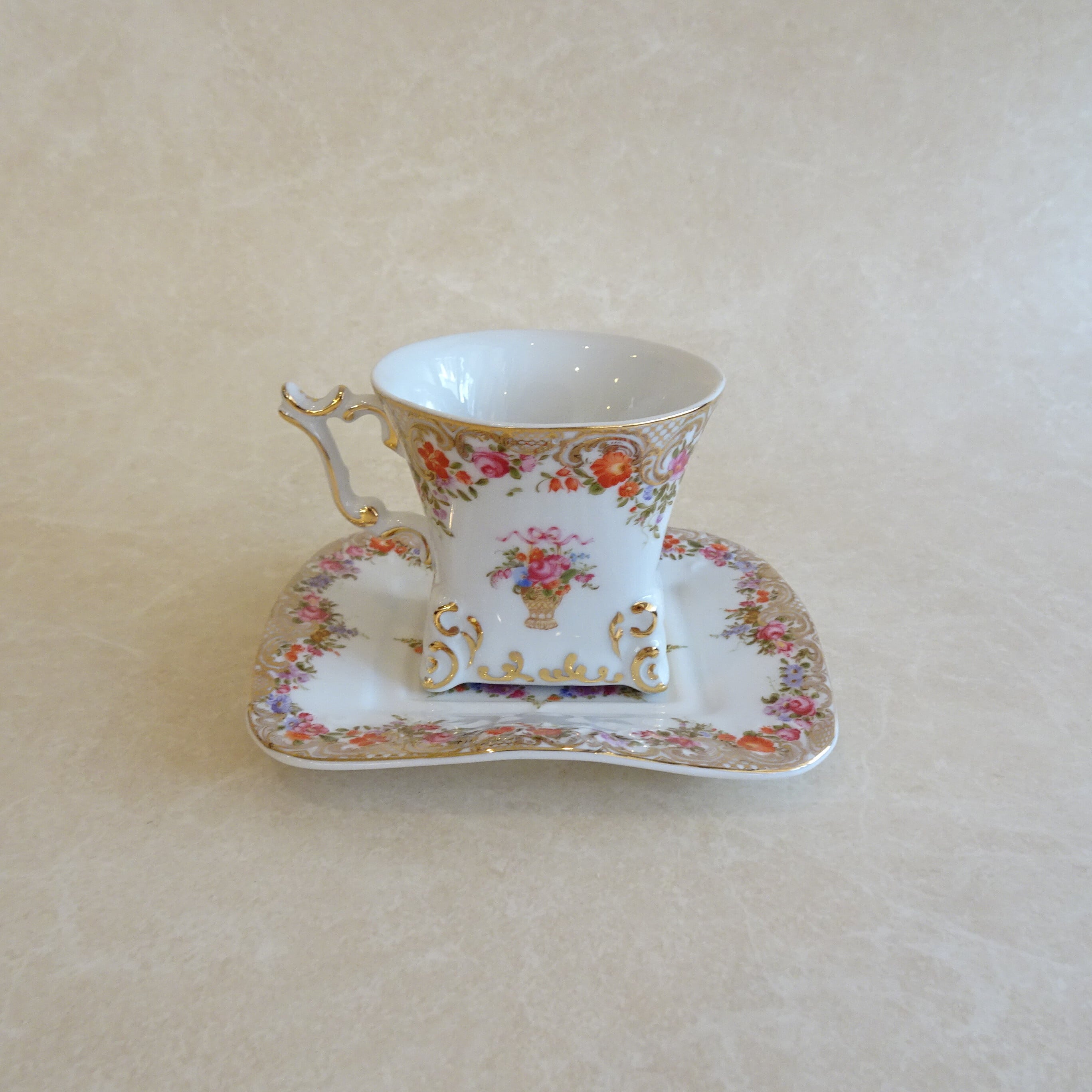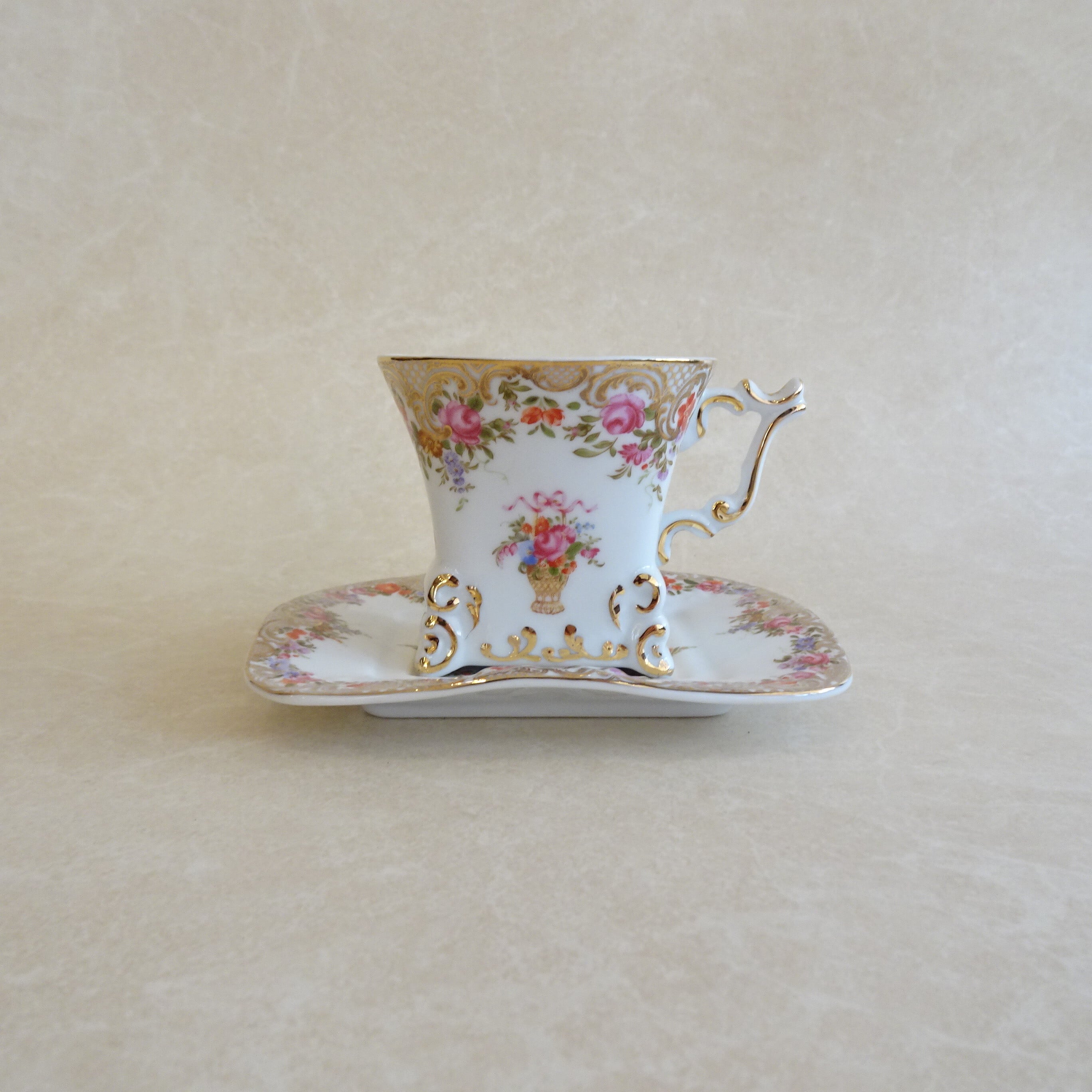 スクエアソーサーのフラワーバスケットカップ&ソーサー