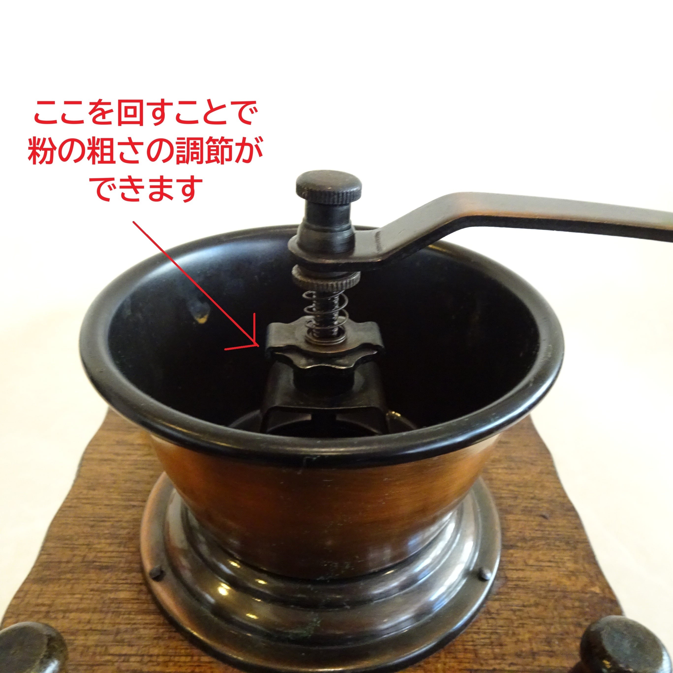 喫茶店の店内で長らくディスプレイとして展示されていたものですが、状態は比較的良く、機能も問題ないので、ミルとして普段使いするのにも適しています。