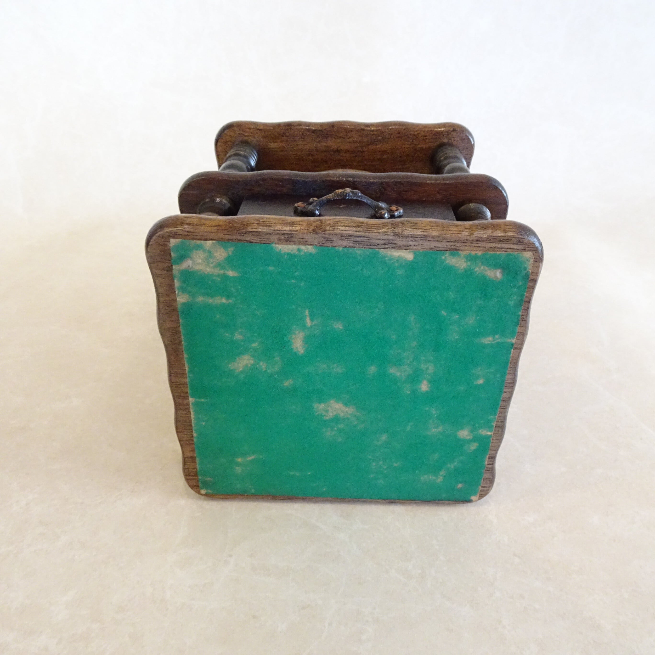 底面の緑の布は劣化しており、少々くずれて粉状のものが剥離することがあります。