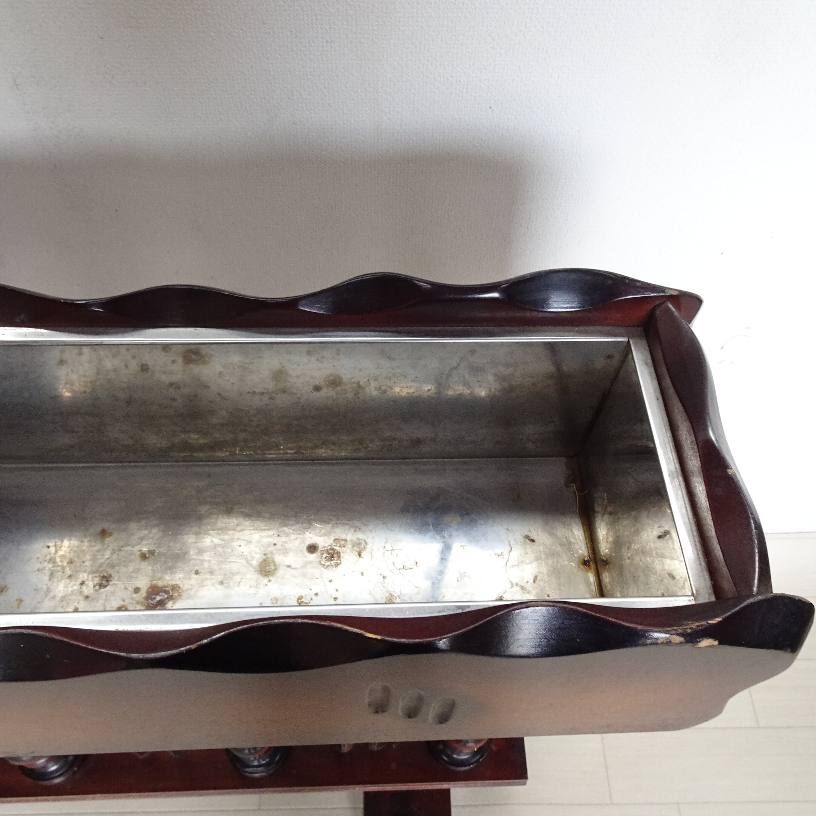 上部はステンレスの物入れになっており、プランターや観葉植物などを入れることができます。