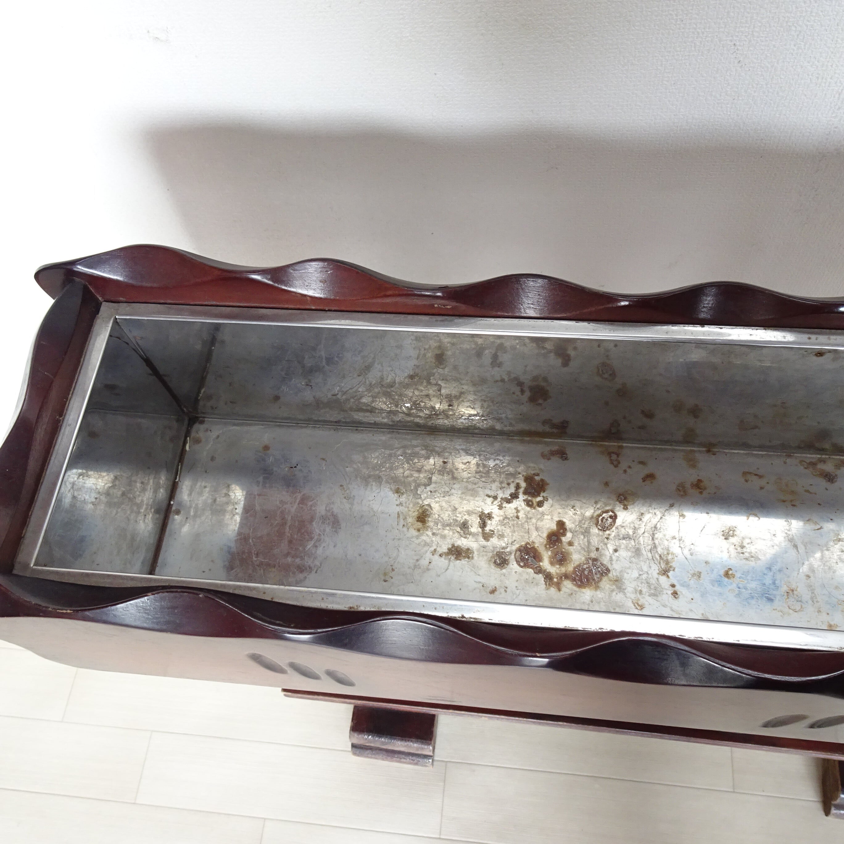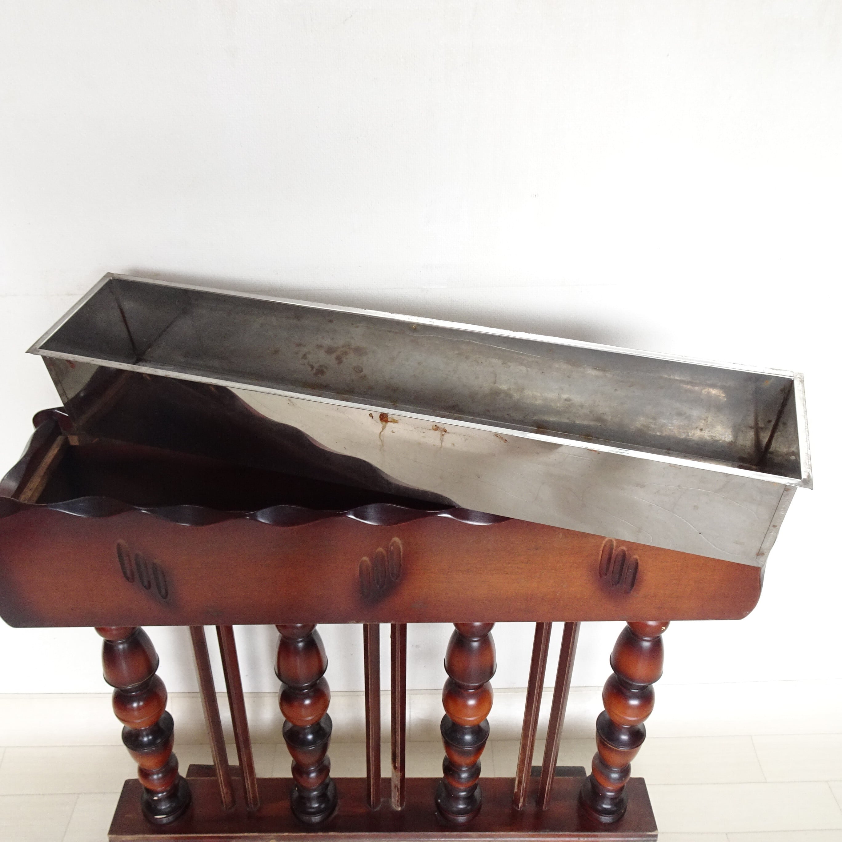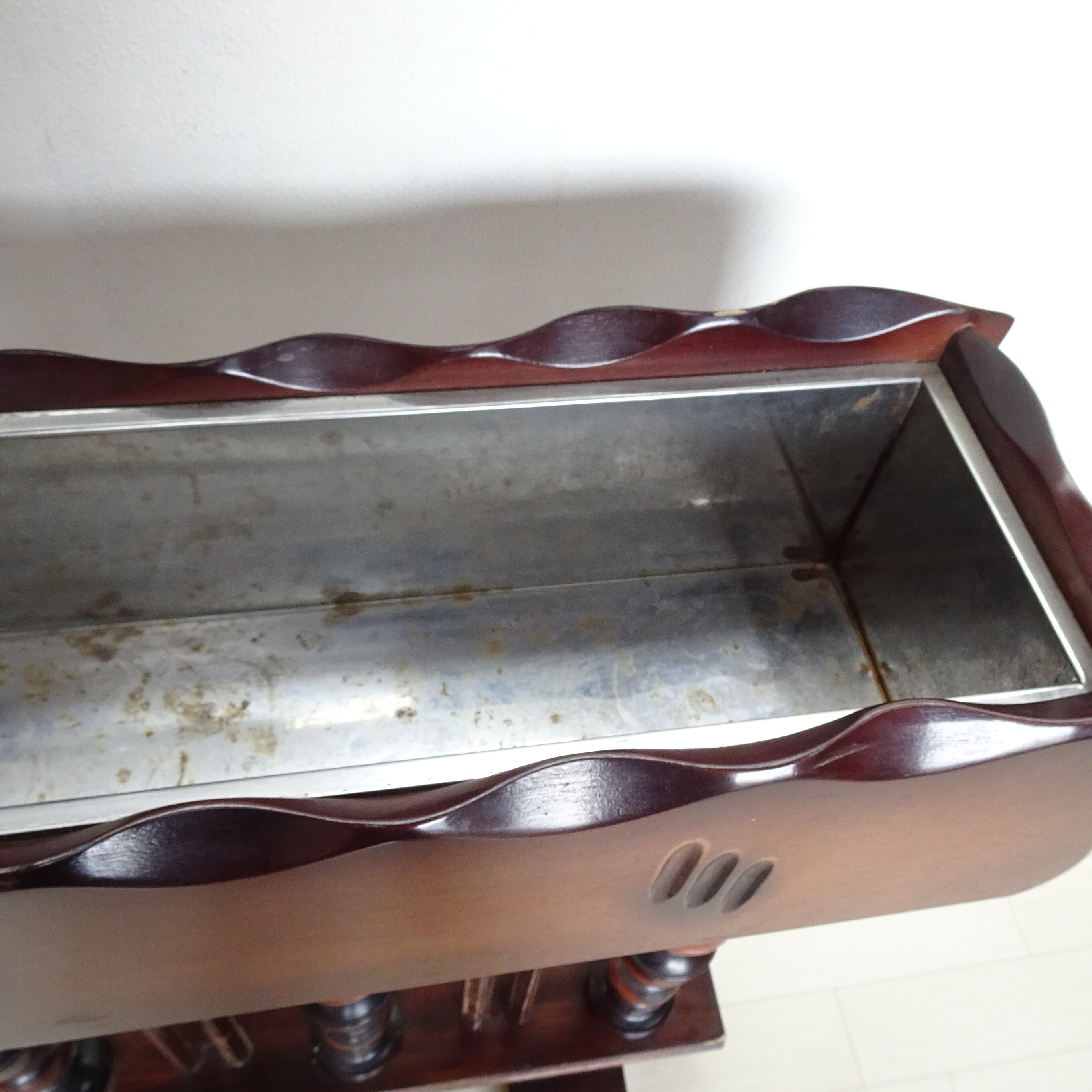 上部はステンレスの物入れになっており、プランターや観葉植物などを入れることができます。