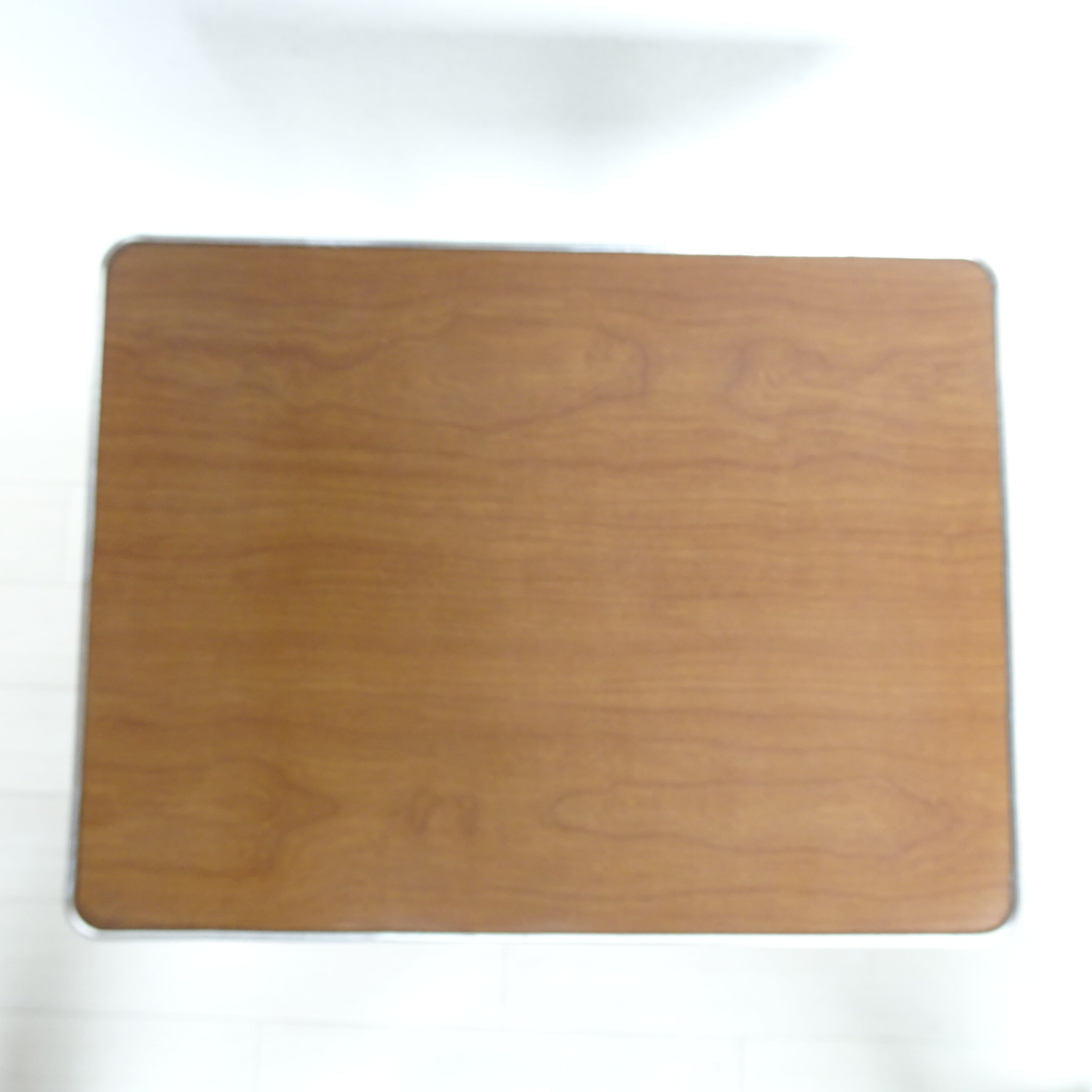 天板は木目調の化粧板です。天板周囲、脚部は金属製です。