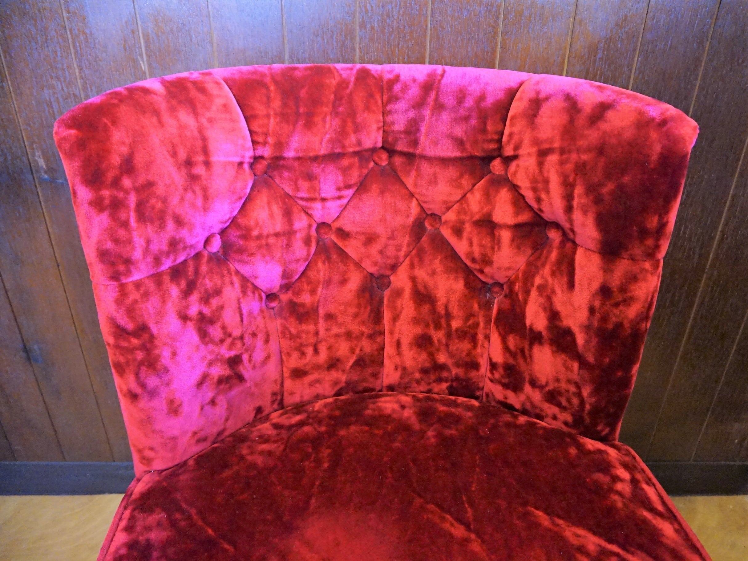 くスナックで使われていたと思しき、赤い化繊の生地のチェアです。