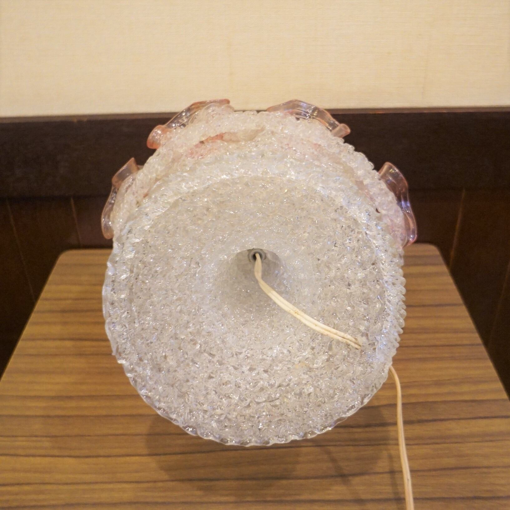 フリルのようなデザインのガラス製テーブルランプです。