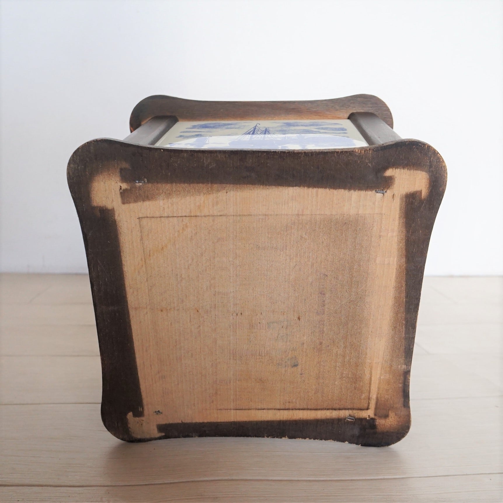 青い色で風車のある景色が描かれたコーヒーミルです。