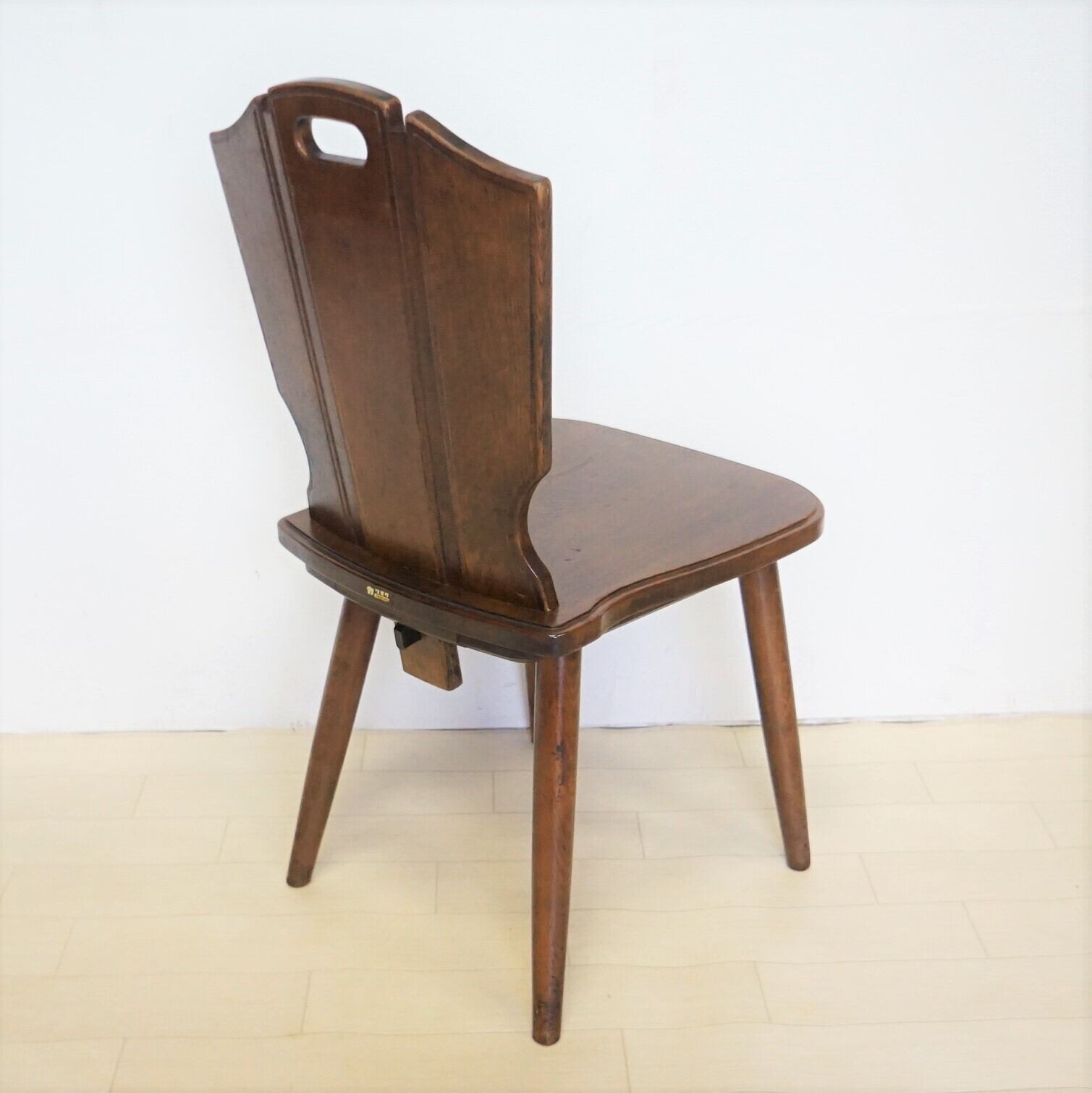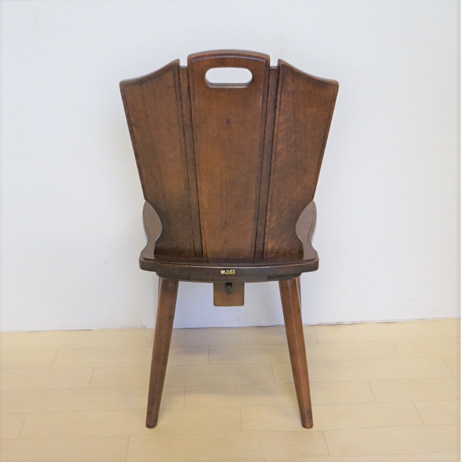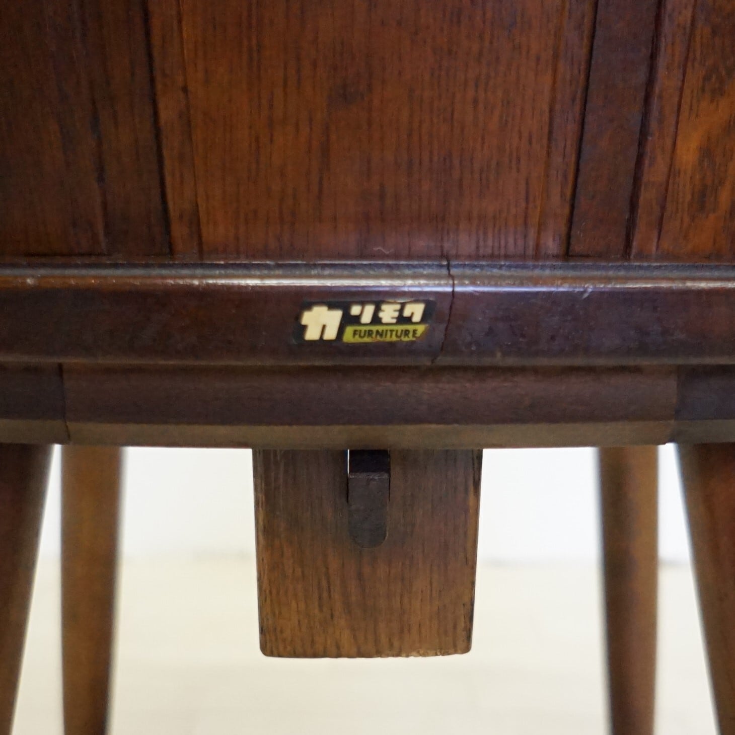 カリモク製、現在は廃番のシリーズです。背もたれ部分に持ち手の穴とエンブレムの刻印があるのが特徴です。