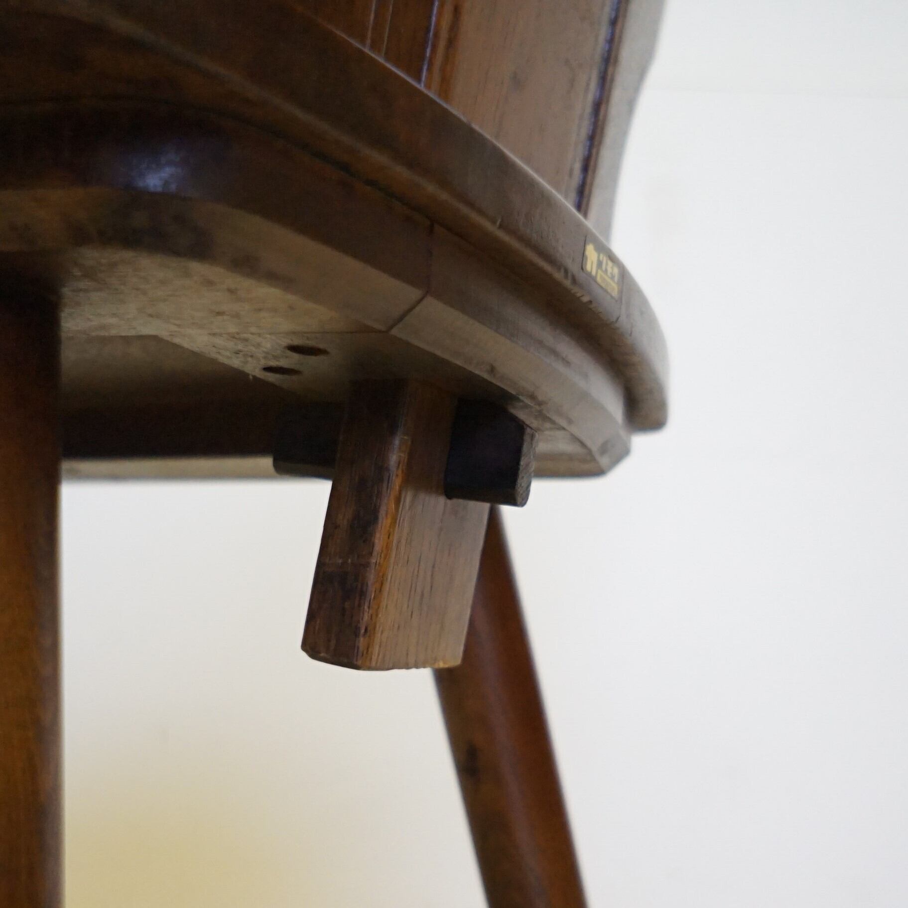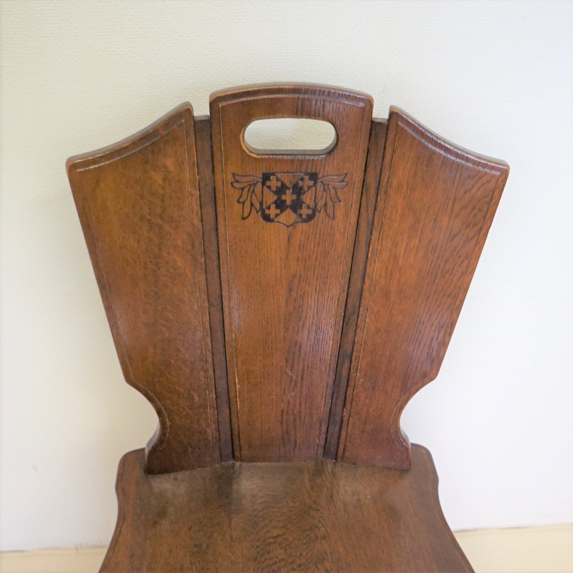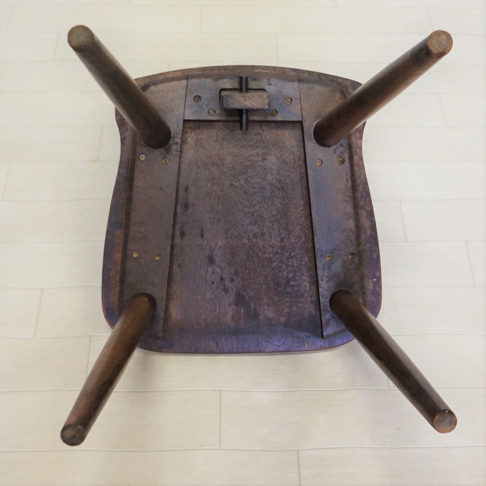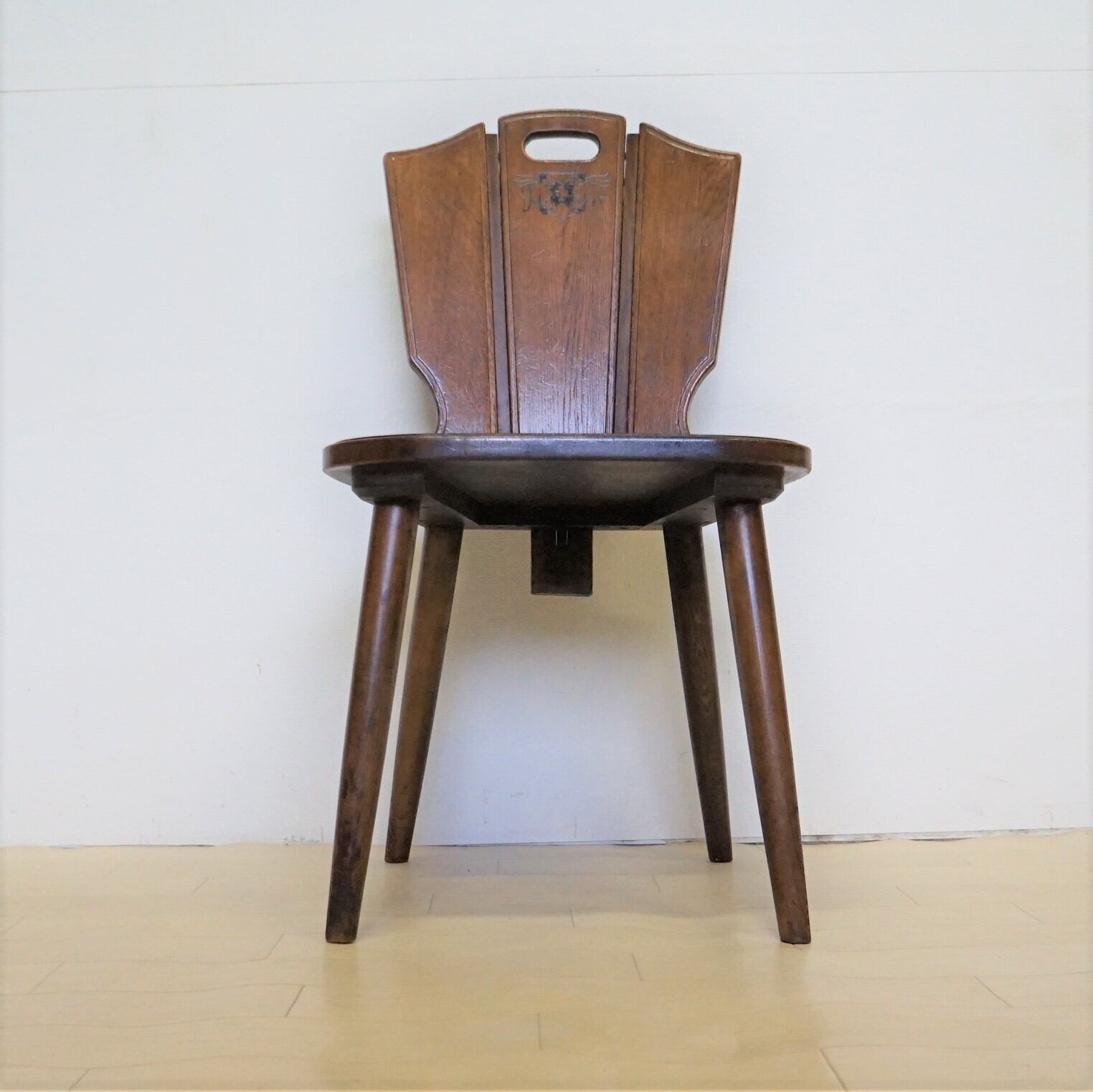 カリモク製、現在は廃番のシリーズです。背もたれ部分に持ち手の穴とエンブレムの刻印があるのが特徴です。