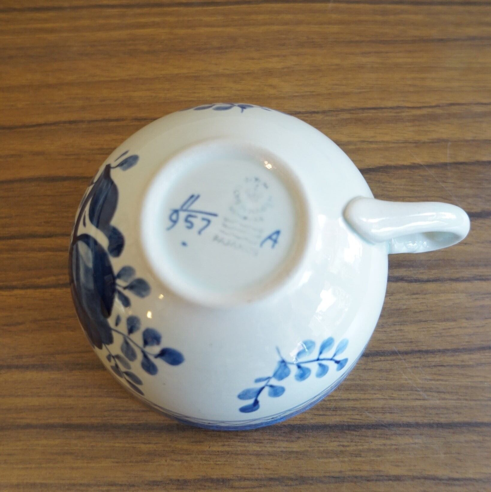 側面にはチューリップのような花が描かれ、手描きによる青色の色むらが良い風合いを出しています。