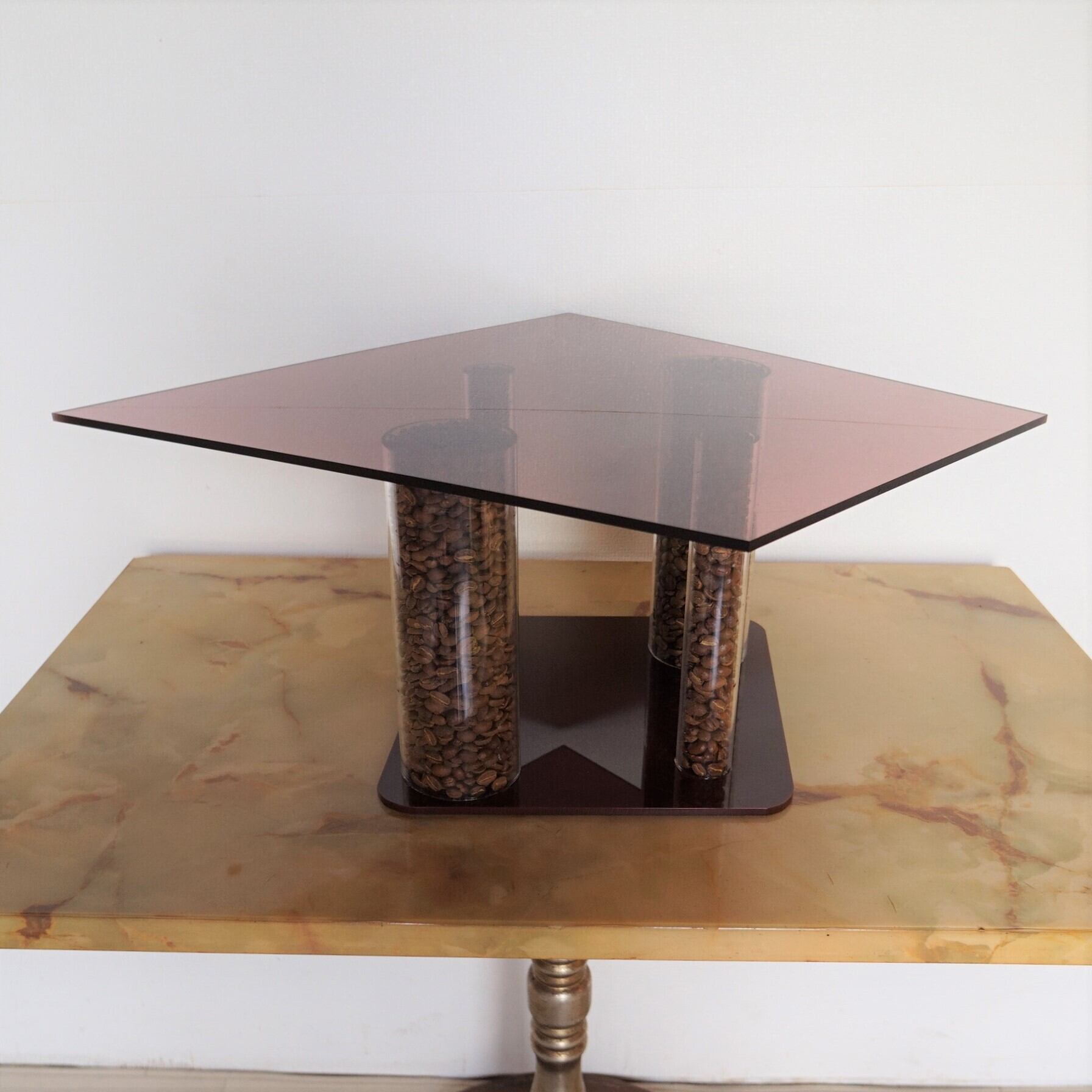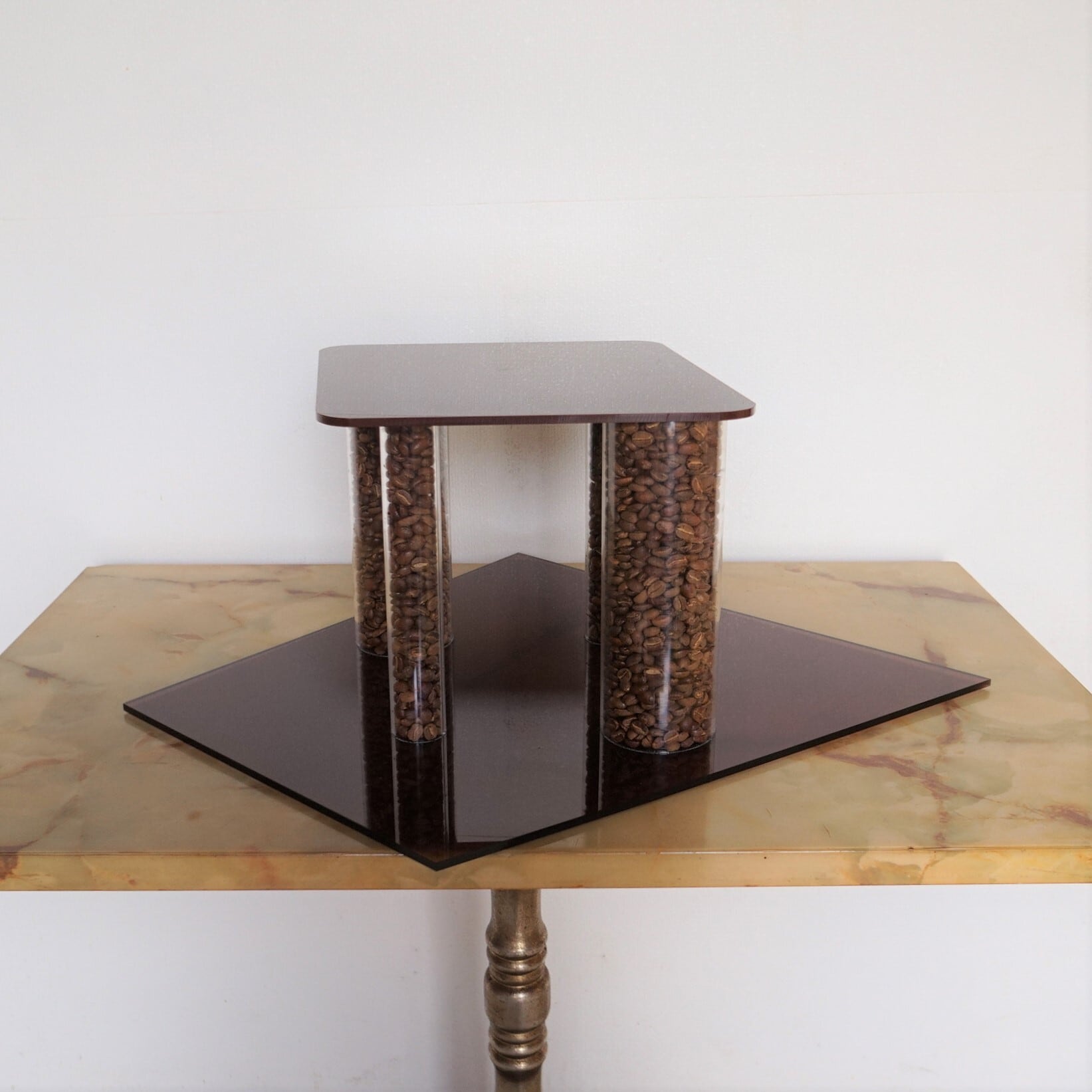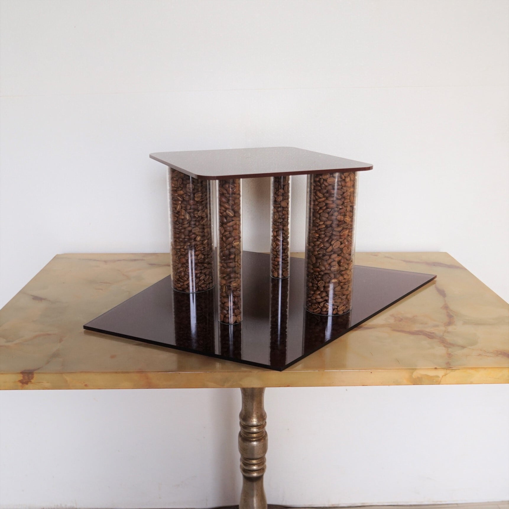 アクリルでできたコーヒー豆のミニテーブル(飾り台)