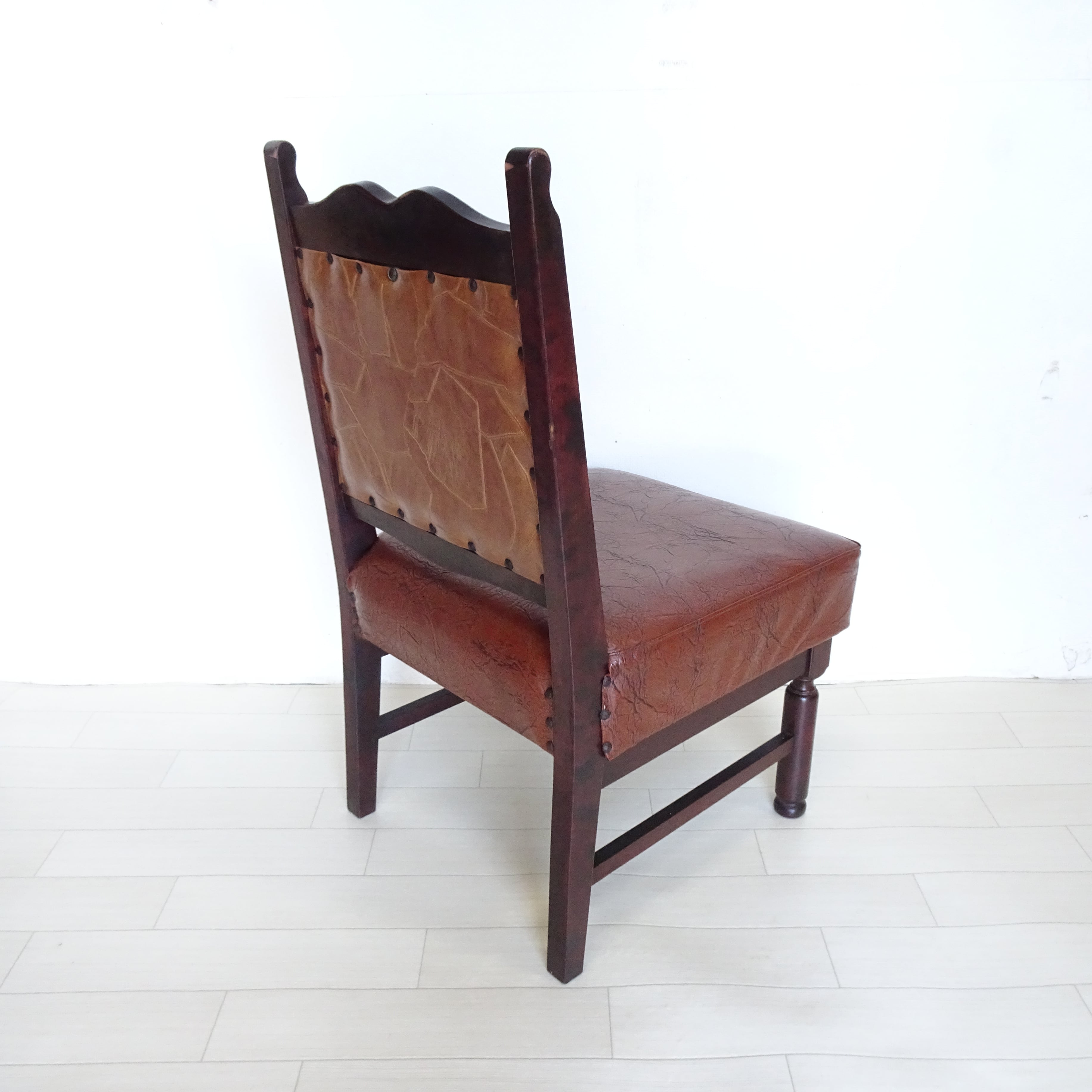 木製のフレーム、背もたれ、座面部分ビニールレザーです。