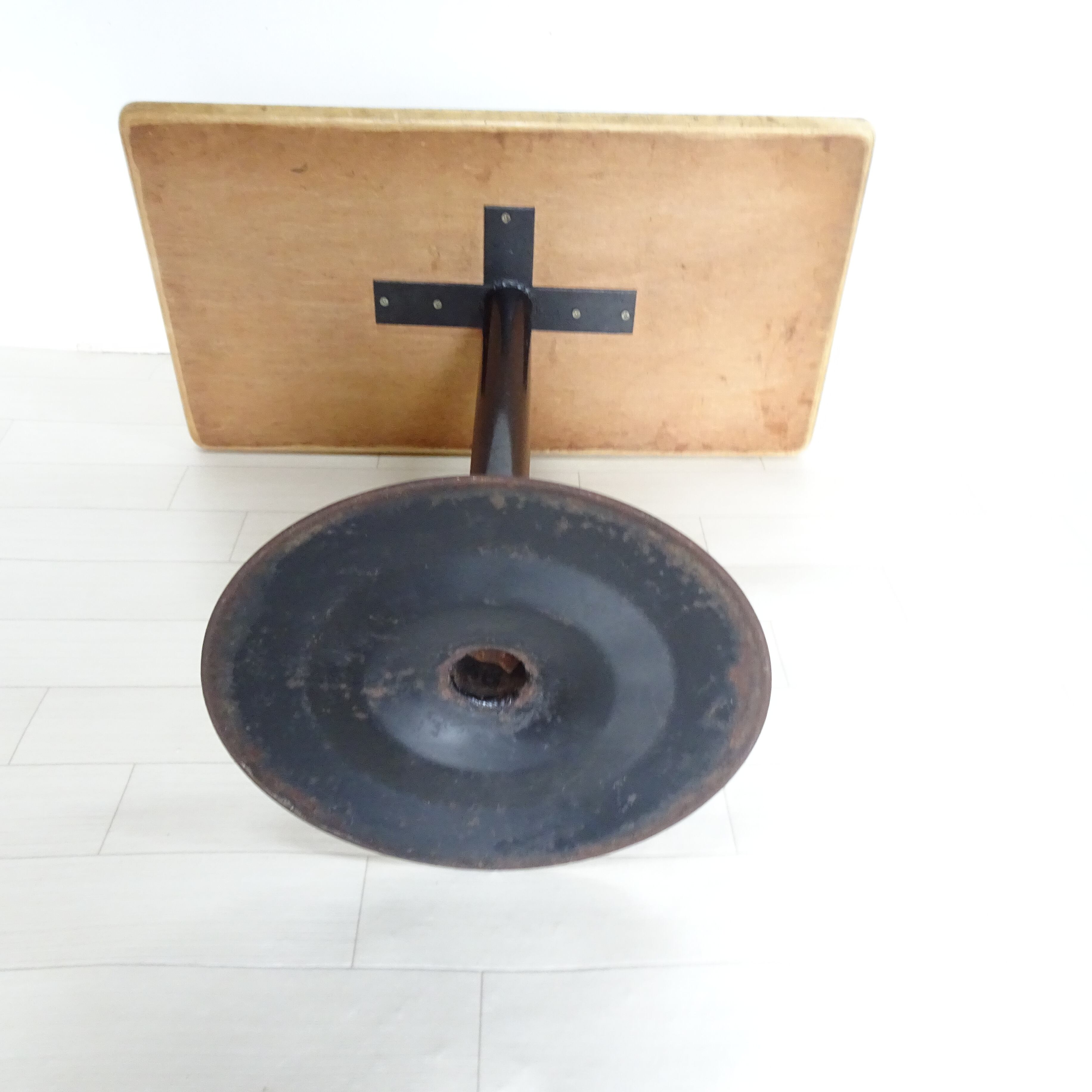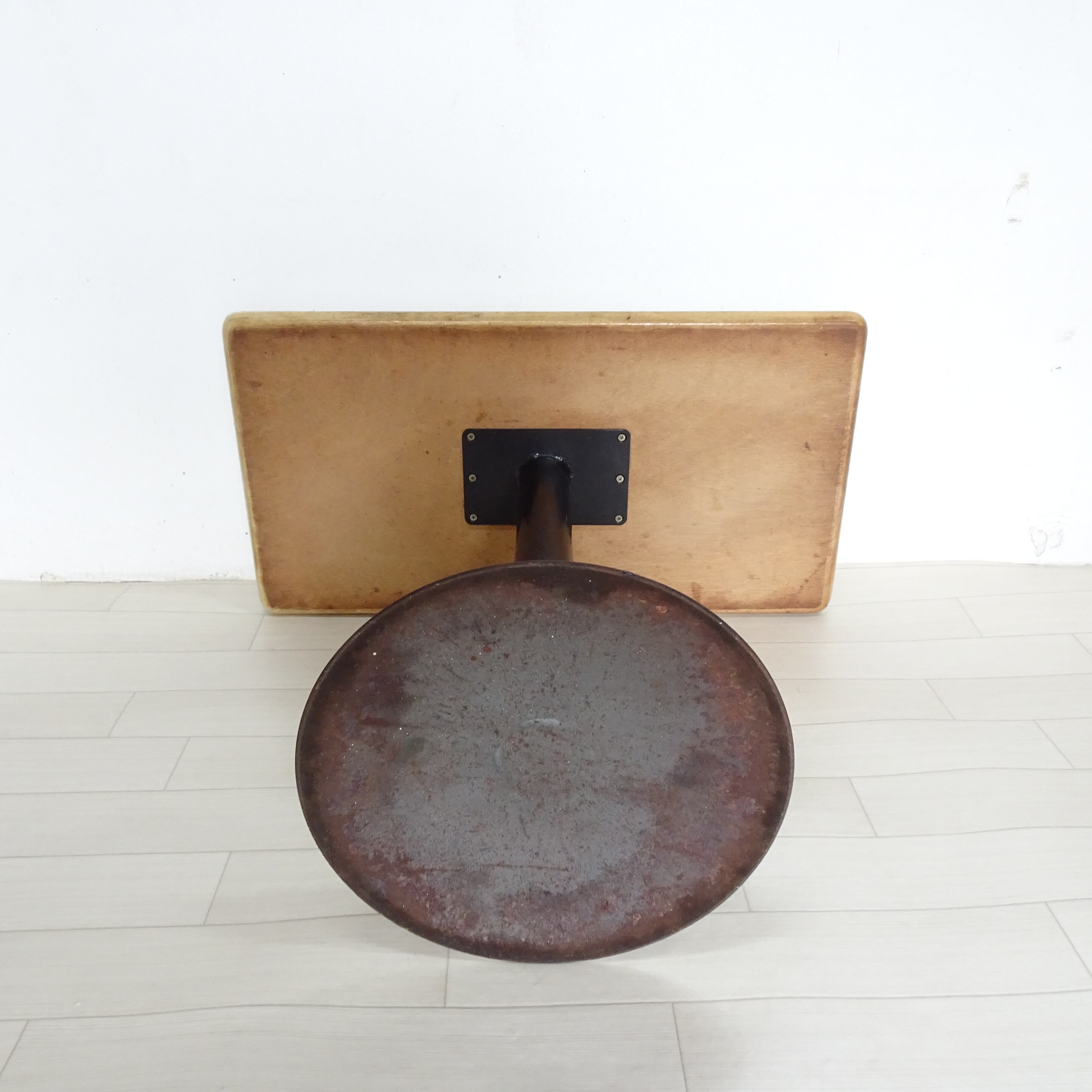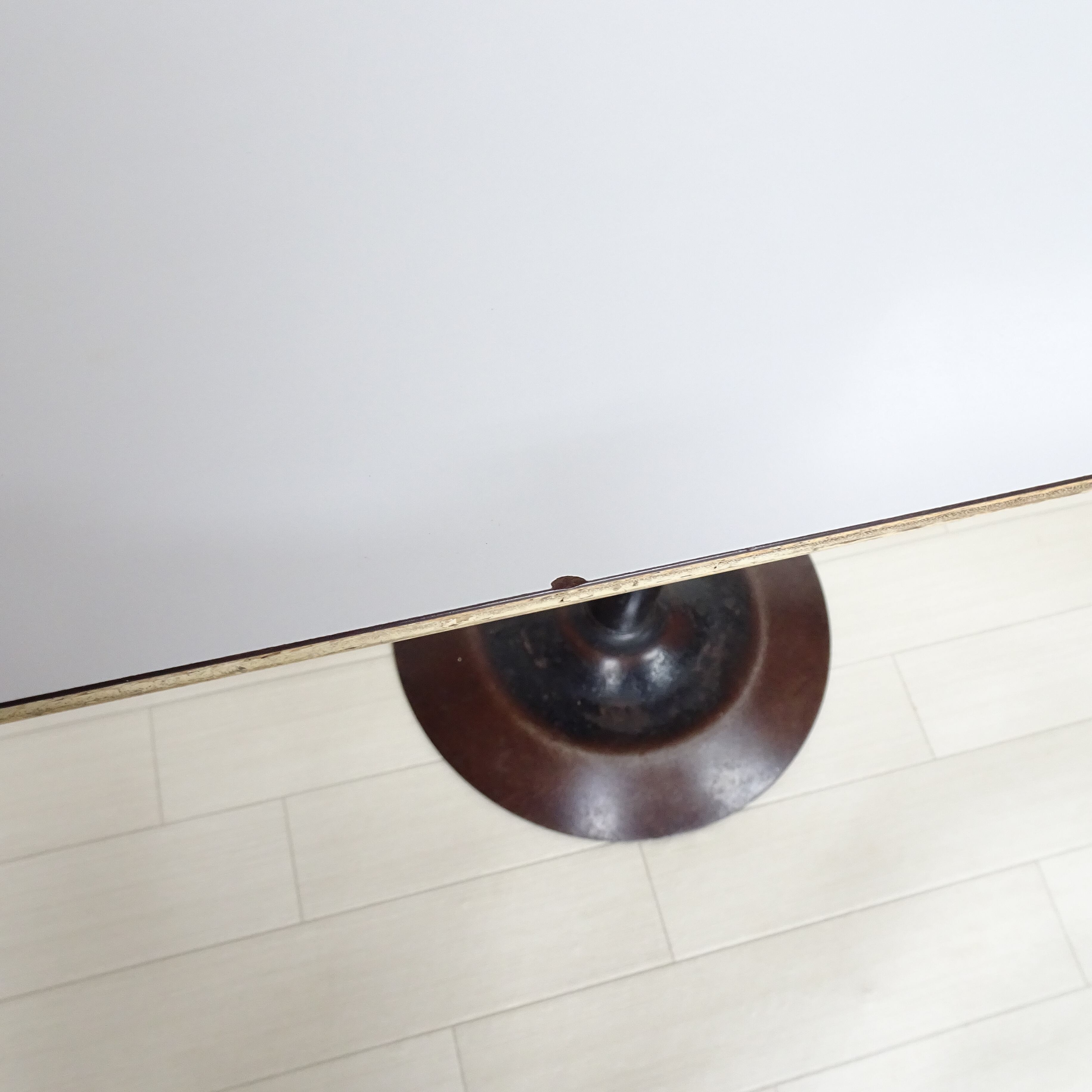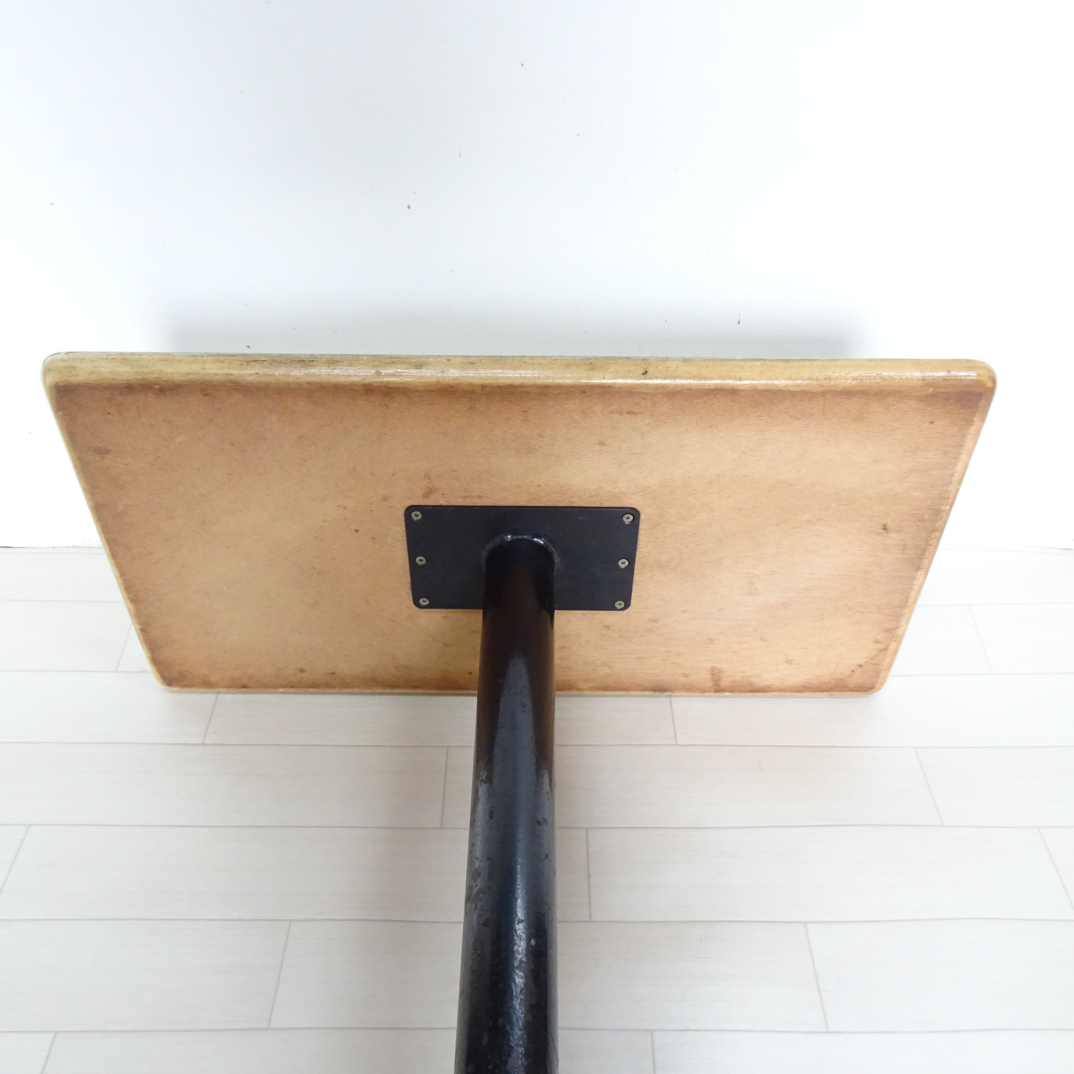 天板は木製、表面は樹脂製です。脚部分は鉄製です。