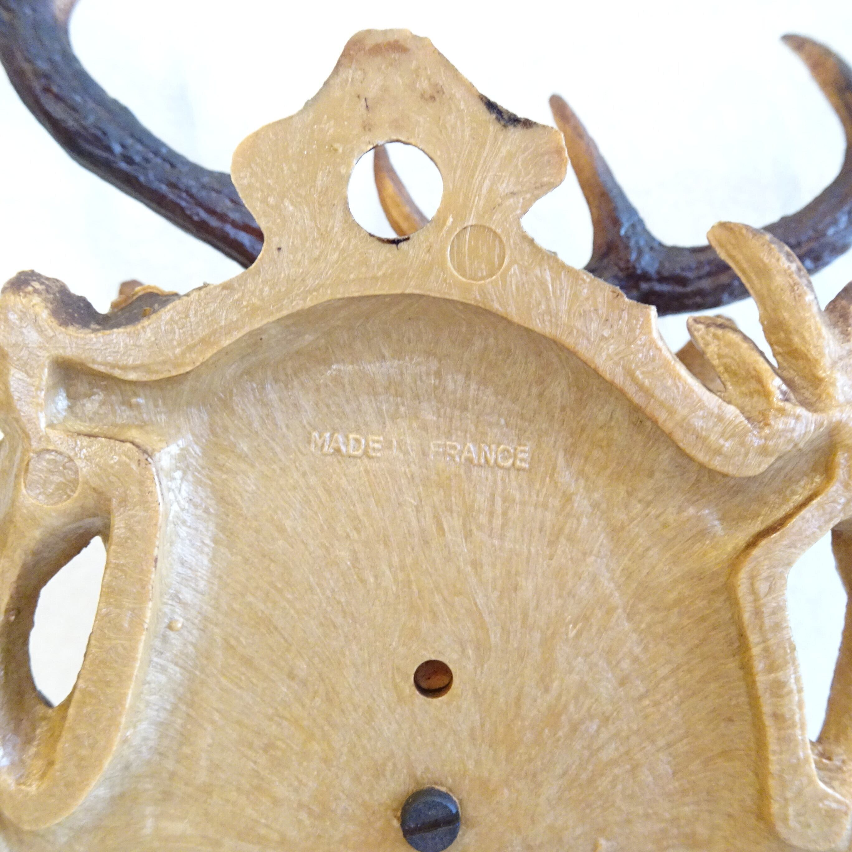 鹿の頭を模ったもので、土台を含め樹脂製かと思われます。鹿の頭には毛皮を模したやや起毛のような加工がされています。