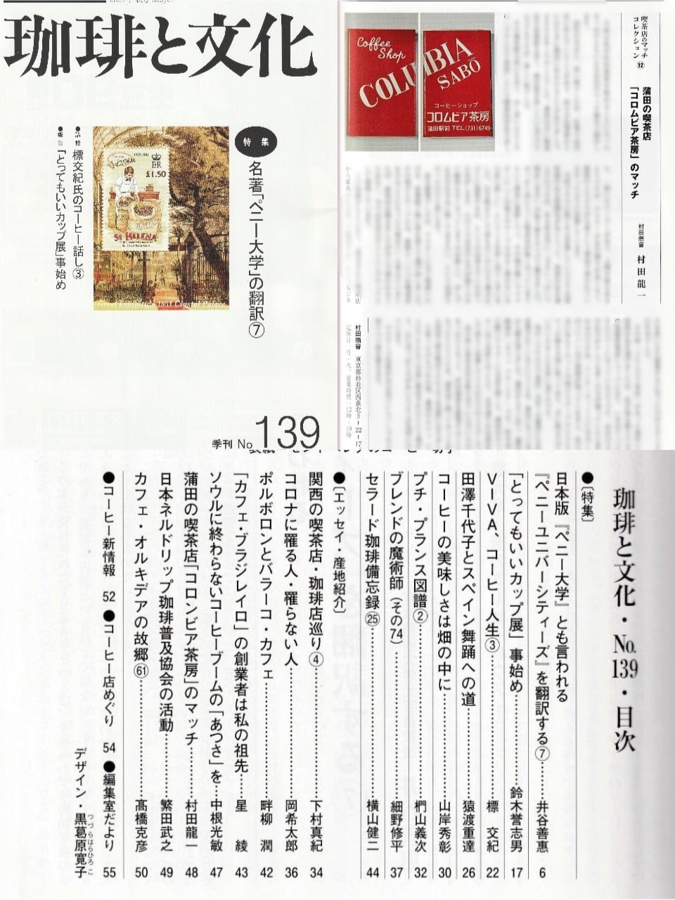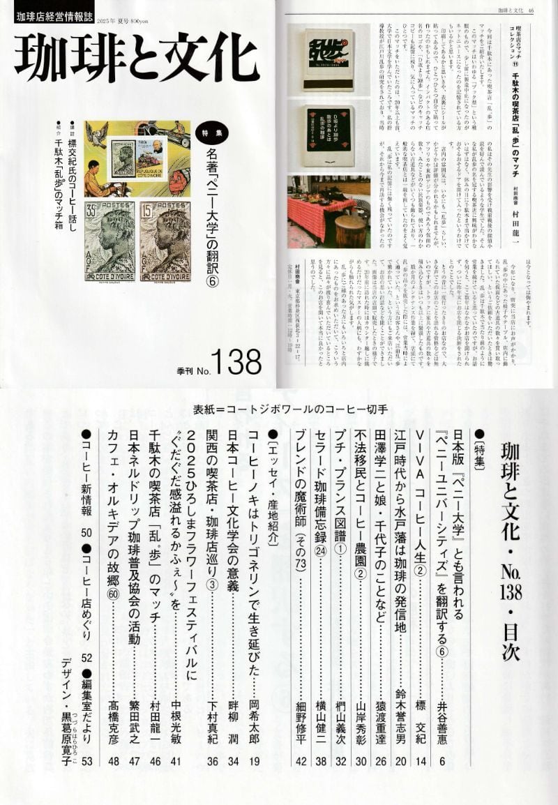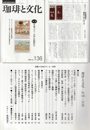 『珈琲と文化』ではコーヒーに関する様々なテーマの特集が毎号組まれ、ときには文学や歴史の観点からや、国内外のコーヒー事情を含めた興味深い文章が多々掲載されています。