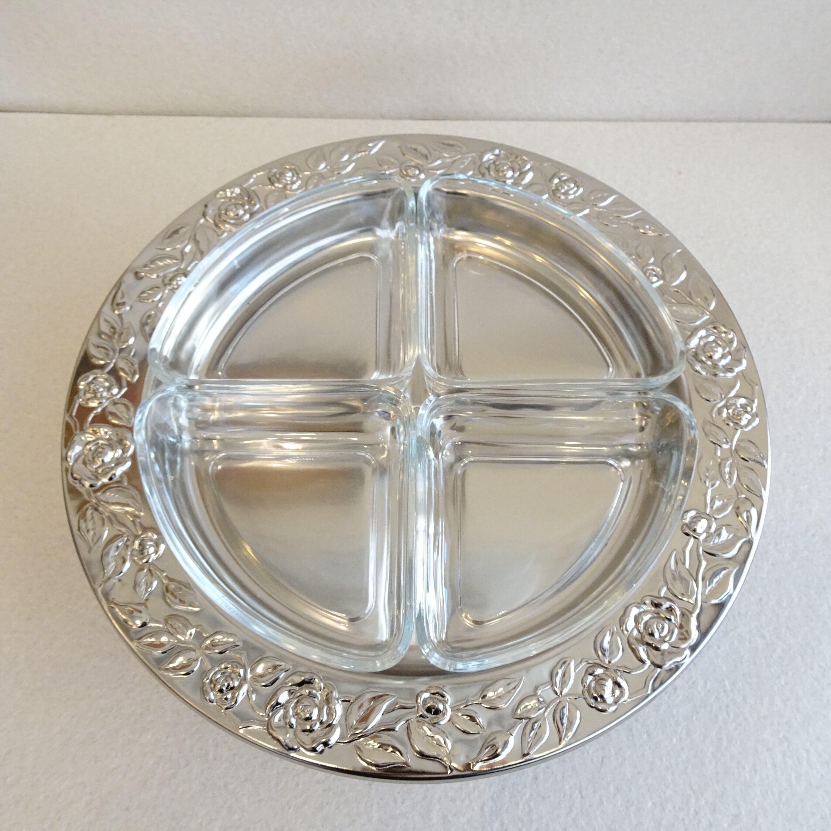 ステンレスのスタンドに取り外し可能なガラスの器が4点付属します。
