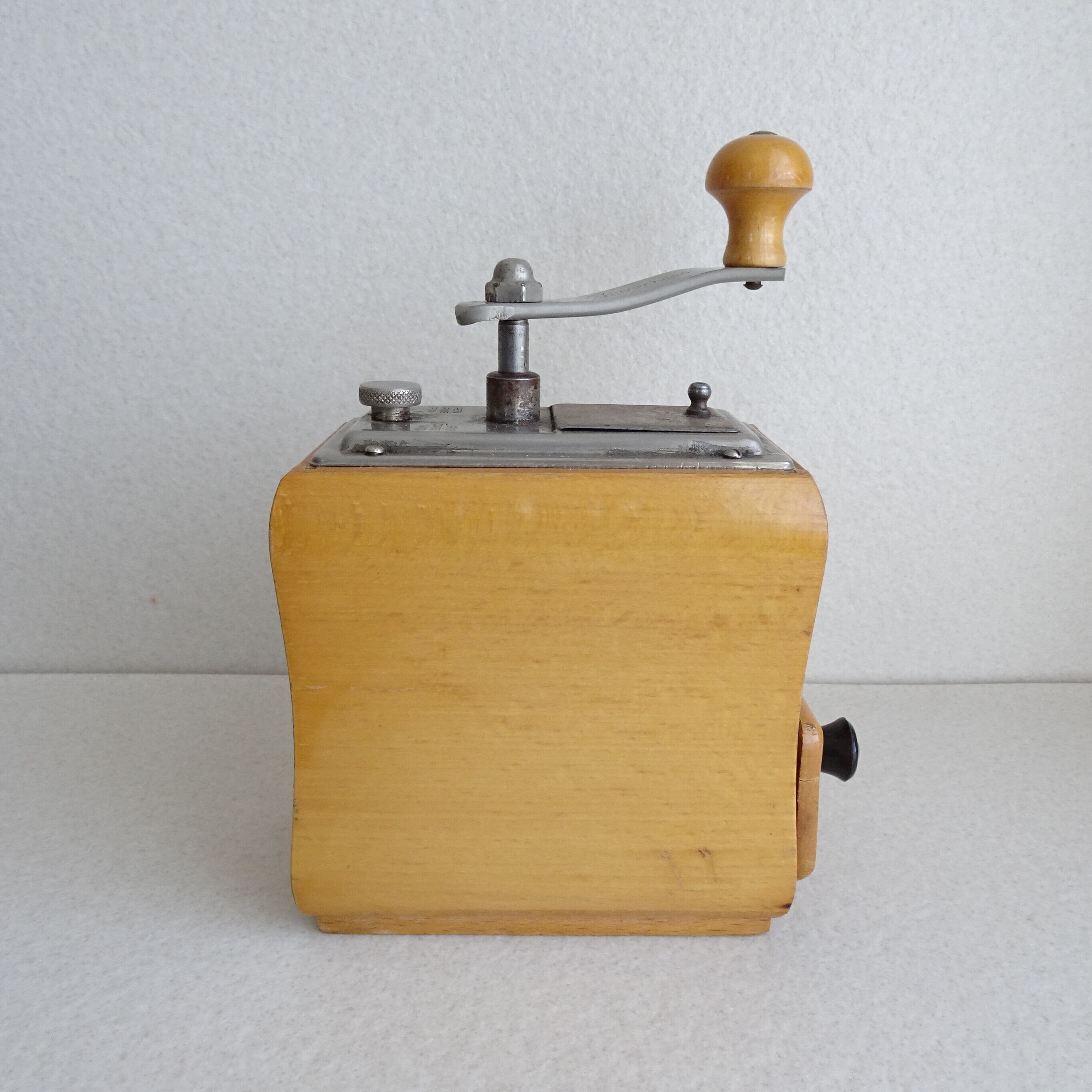 ハンドルや引き出しの形状は異なりますが、本コレクションのペーター・ディーネスのコーヒーミルの中では、【コレクション18】( No.528)とは、側面の湾曲した形状や、2色の違う木材を使用していることがほぼ共通しており、形状とデザインが近いことが見てとれると思います。