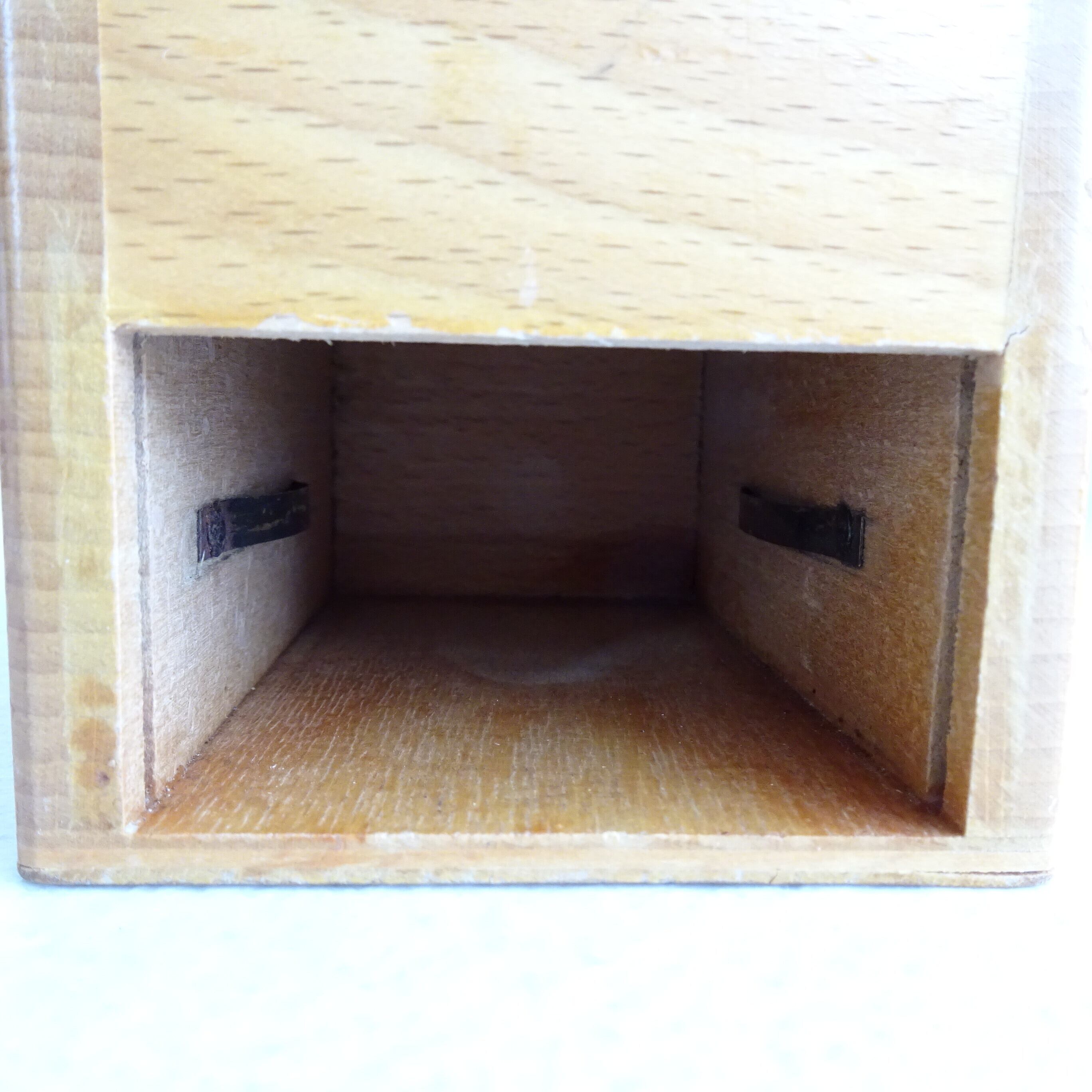 豆投入口やハンドルの形などはわずかに異なりますが、本コレクションのペーター・ディーネスのコーヒーミルの中では、【コレクション13】( No.1050)とは、コンパクトなサイズ感、2色の違う木材を使用していることがほぼ共通しており、サイズ、形状、デザインがかなり近いことが見てとれると思います。
