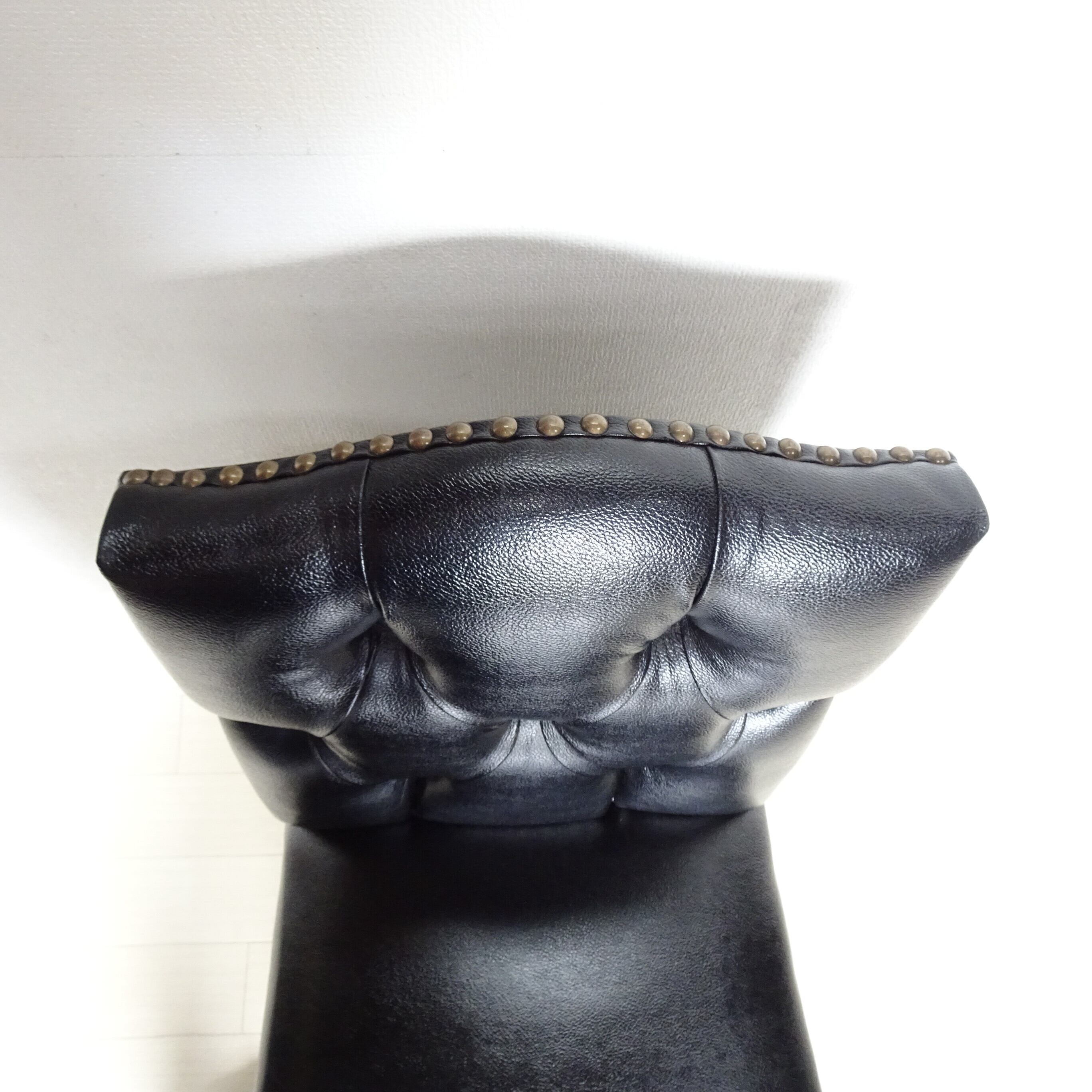 装飾的なアンティークデザインの脚は木製、座面・背もたれは硬質のビニールレザーです。